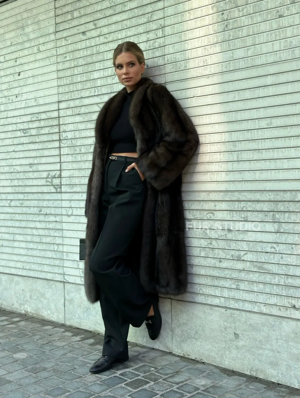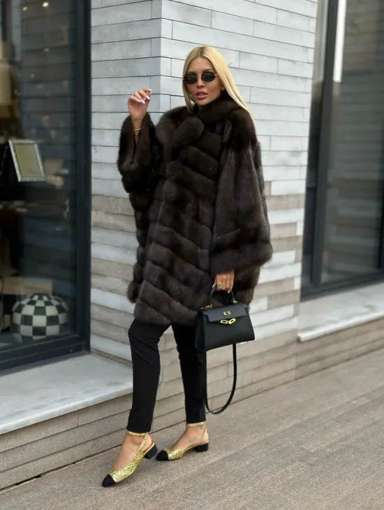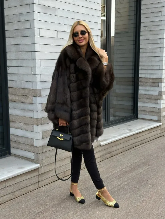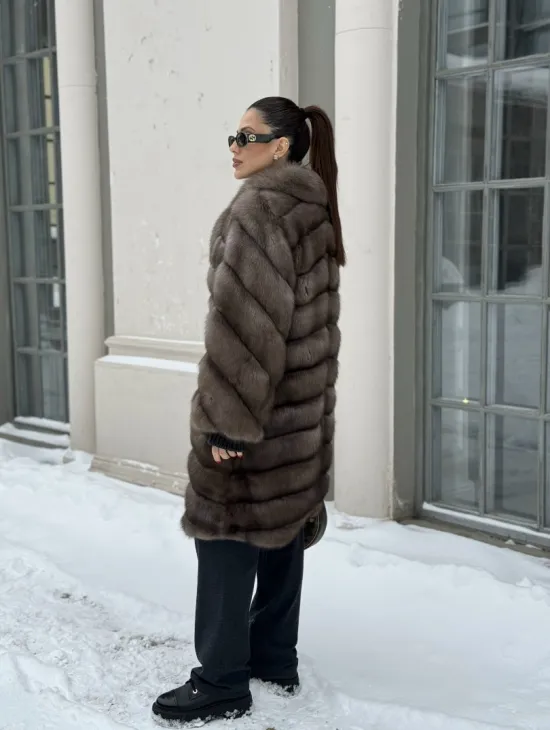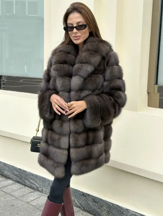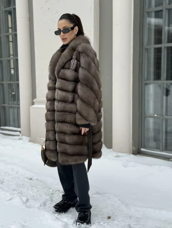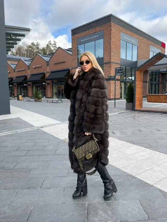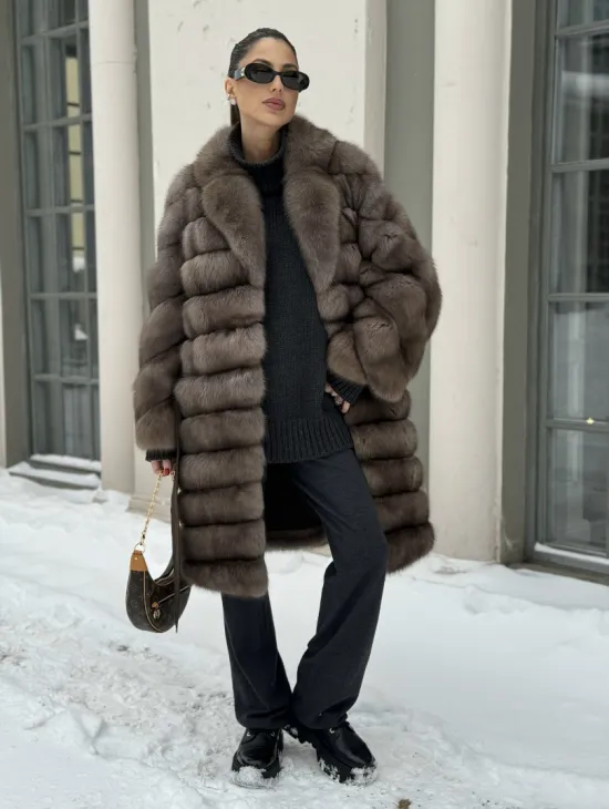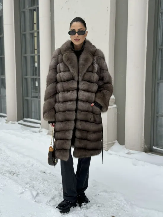 Классическое меховое пальто из меха соболя с сединой 1/2 — база для гардероба каждой женщины, независимо от возраста и рода занятий. Ведь эта вещь сочетается с костюмами и платьями в любом стиле и будет одинаково уместна для прогулки в парке, поездки на деловую встречу или романтическое свидание.