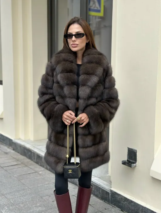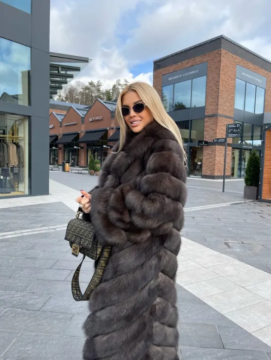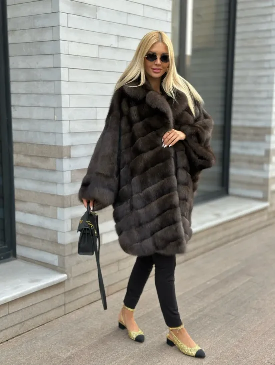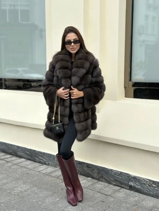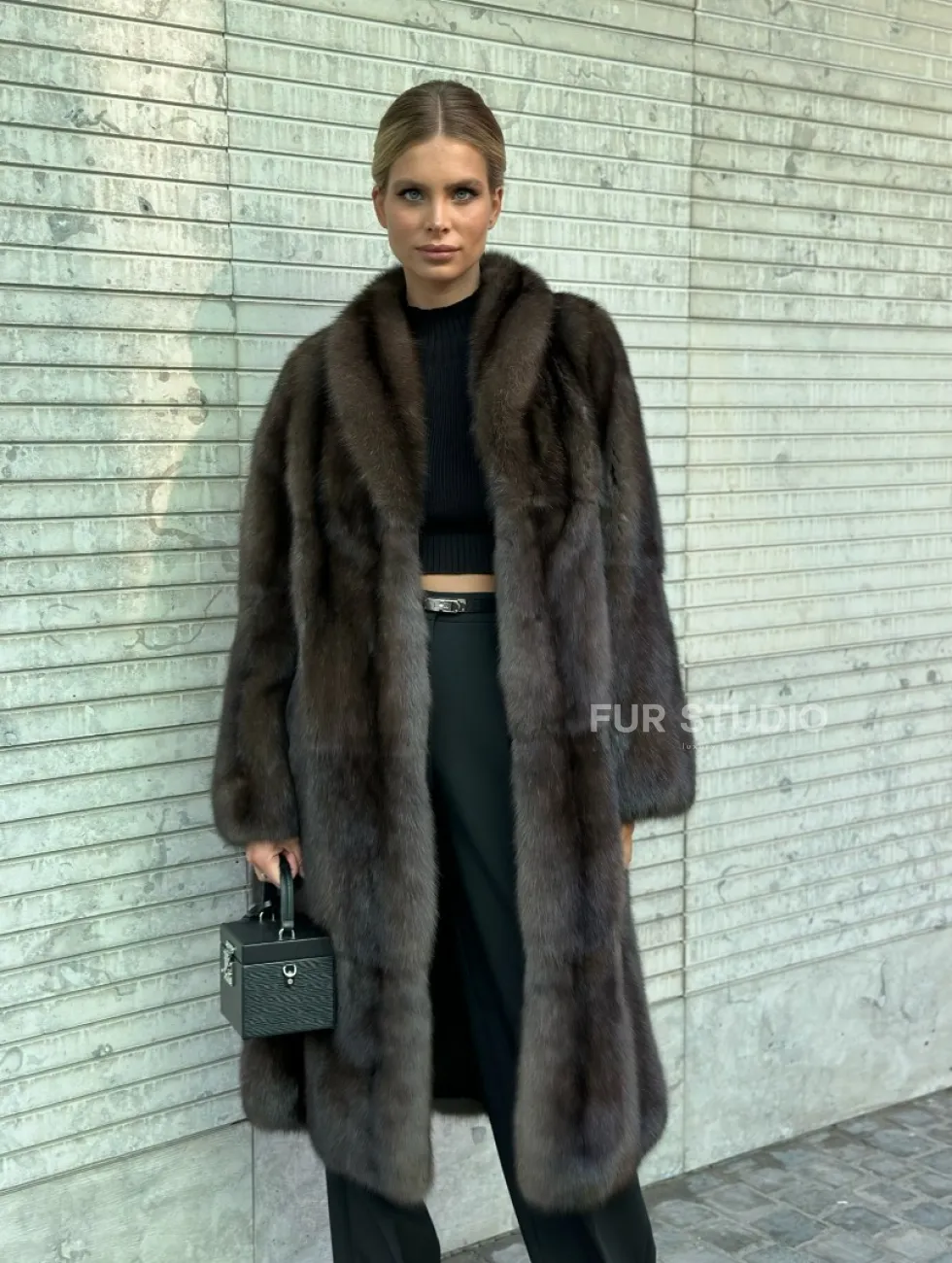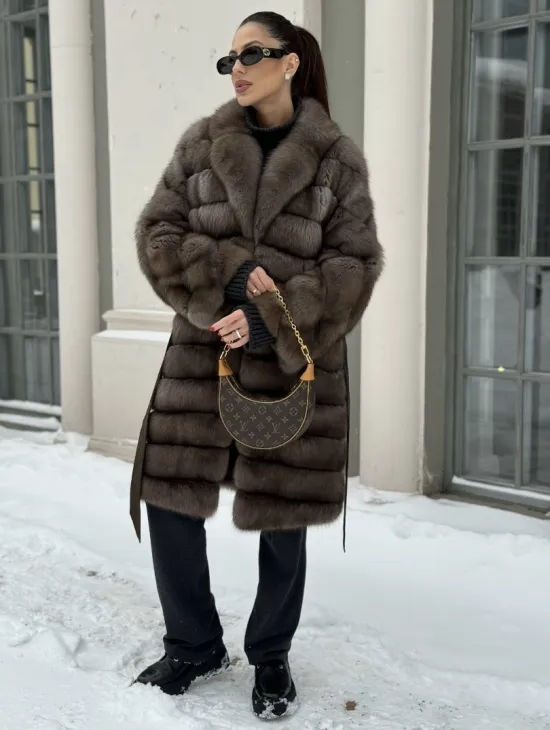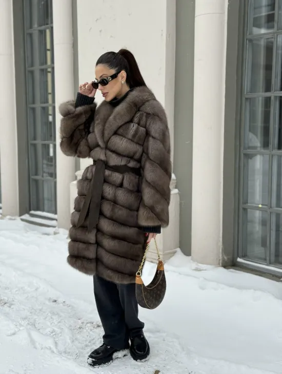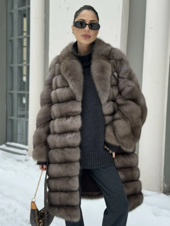 Классическое меховое пальто из меха соболя с сединой 1/2 — база для гардероба каждой женщины, независимо от возраста и рода занятий. Ведь эта вещь сочетается с костюмами и платьями в любом стиле и будет одинаково уместна для прогулки в парке, поездки на деловую встречу или романтическое свидание.