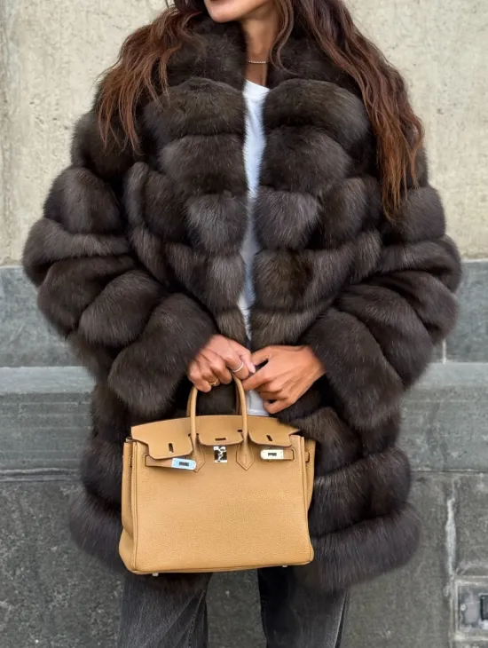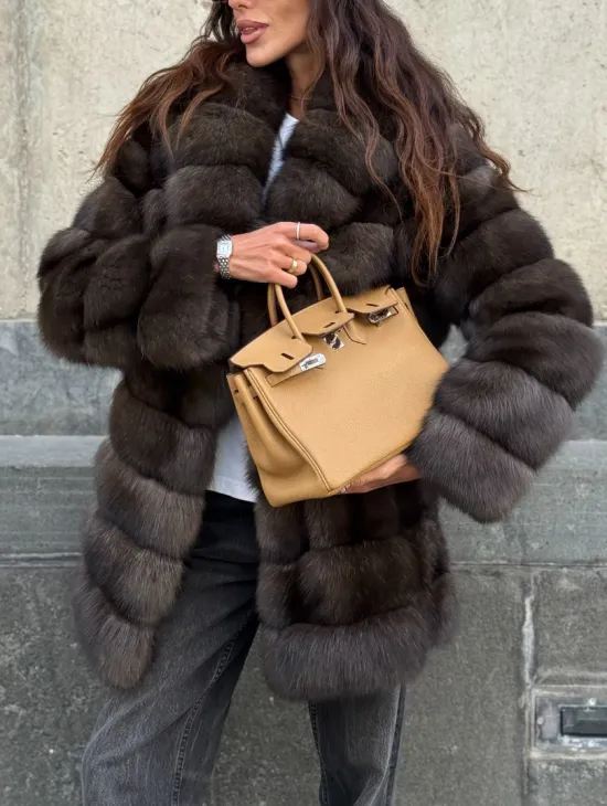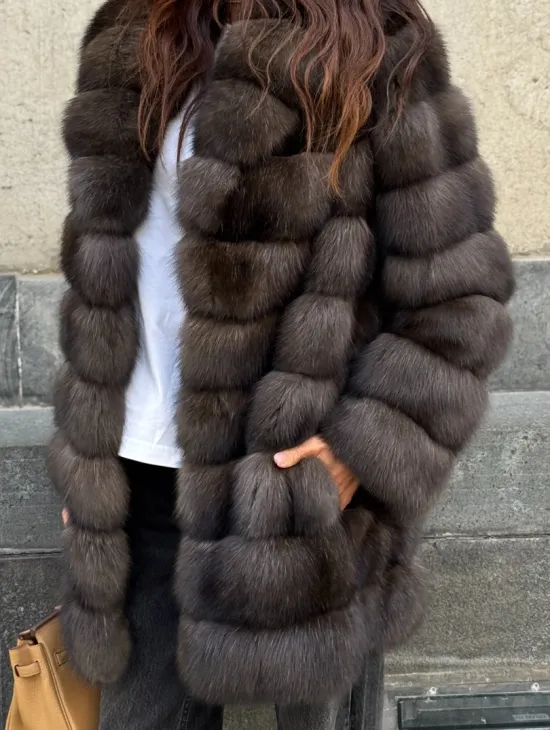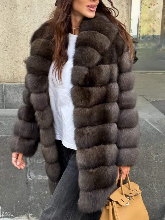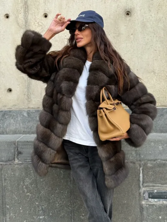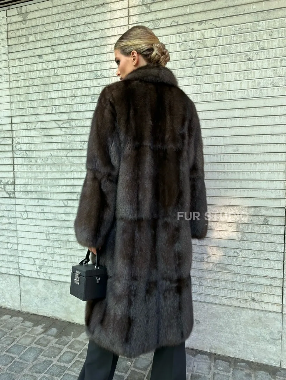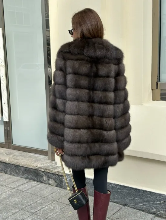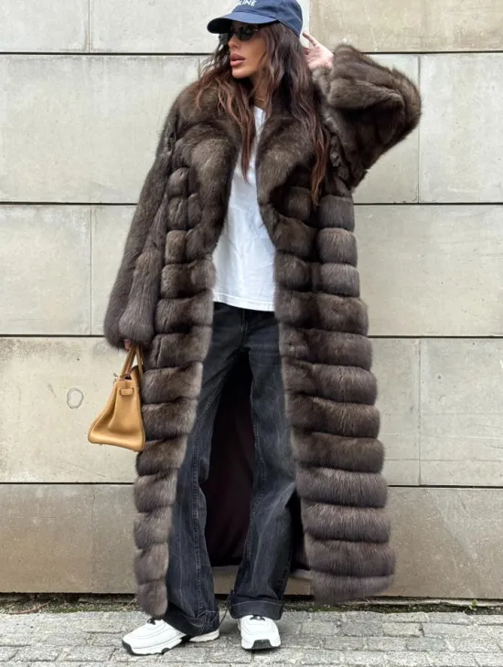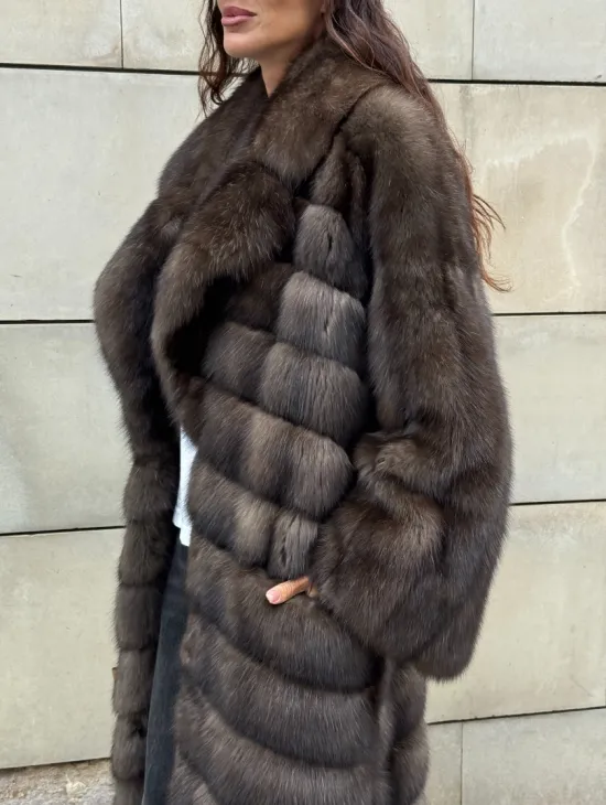Классическое меховое пальто из меха соболя с сединой 1/2 — база для гардероба каждой женщины, независимо от возраста и рода занятий. Ведь эта вещь сочетается с костюмами и платьями в любом стиле и будет одинаково уместна для прогулки в парке, поездки на деловую встречу или романтическое свидание.