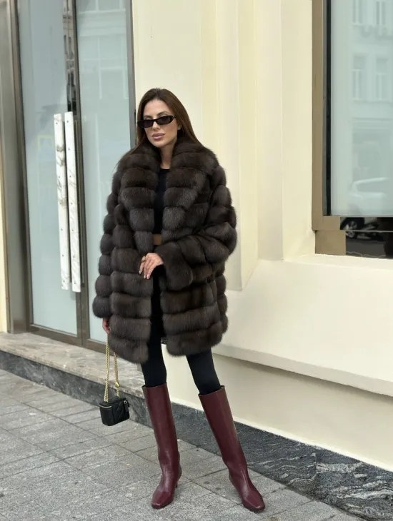 Посетите наш шоурум студии меха Fur Studio в Москве, чтобы примерять и купить классическое пальто из меха соболя с проседью 1/2. Также вы можете оформить заказ на пошив изделия в нужном размере на сайте.