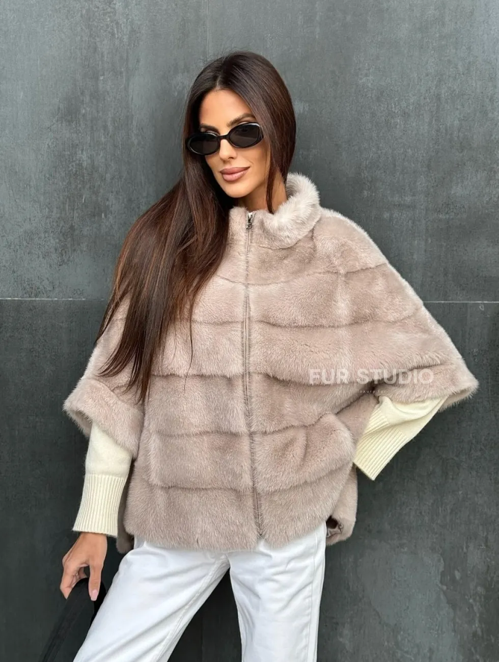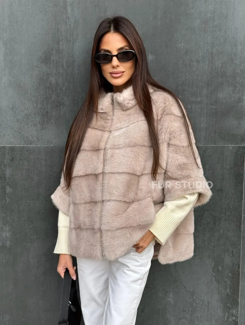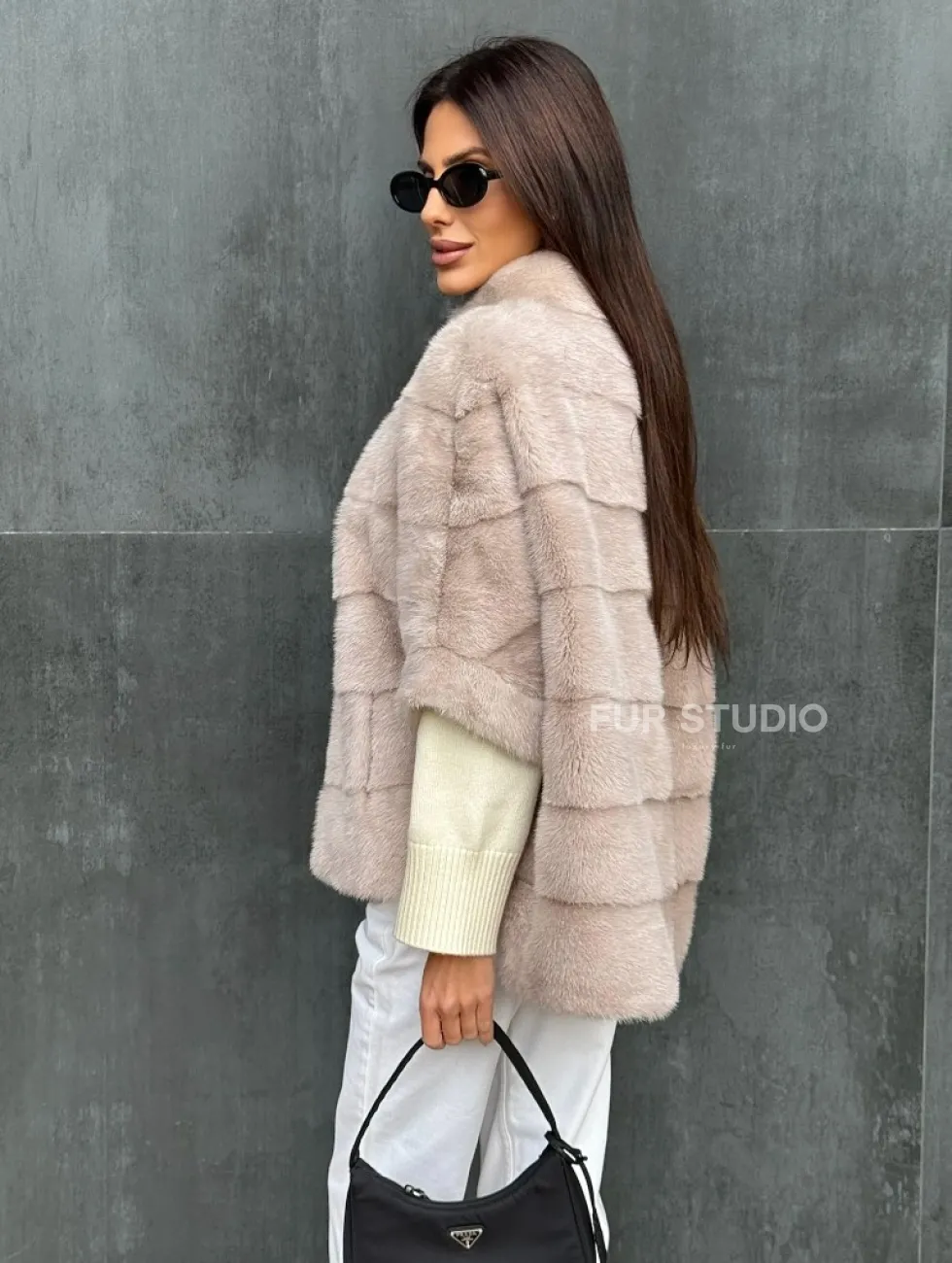 Мех данной шубы аукционная норка , цвет бежевый. Предлагается в размерах от 40 до 48 (oversize). Длина модели 60-65 см, что выгодно подчеркивает фигуру девушек. Эта модель идеально подойдет для девушек и женщин, предпочитающих роскошные натуральные меха.