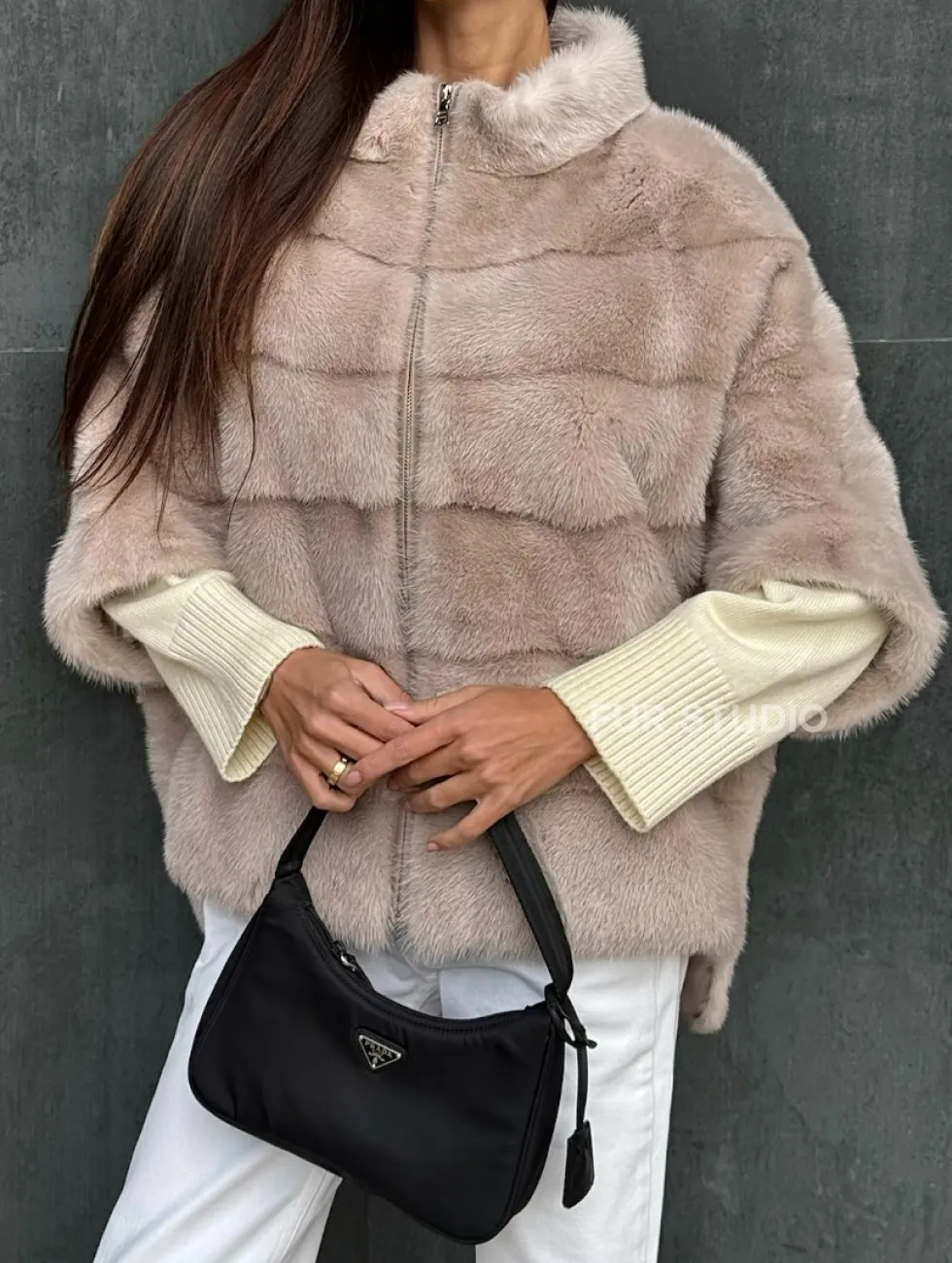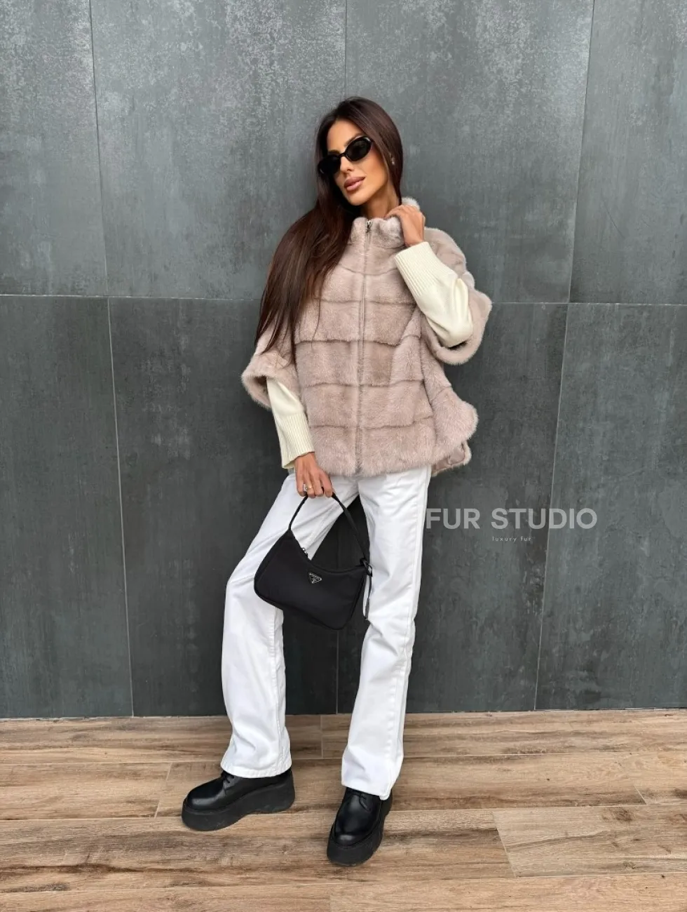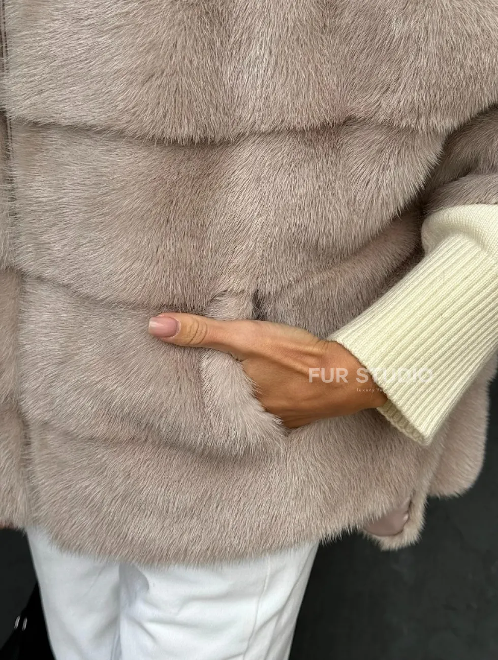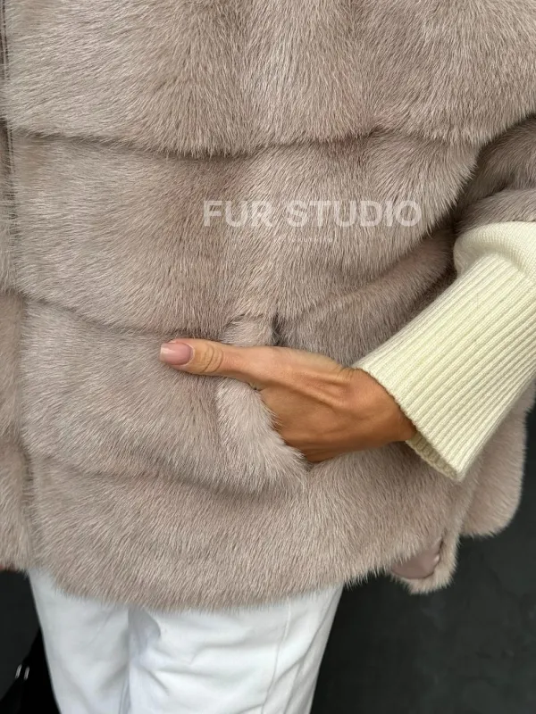Мех данной шубы аукционная норка , цвет бежевый. Предлагается в размерах от 40 до 48 (oversize). Длина модели 60-65 см, что выгодно подчеркивает фигуру девушек. Эта модель идеально подойдет для девушек и женщин, предпочитающих роскошные натуральные меха.