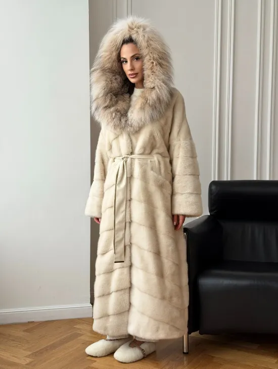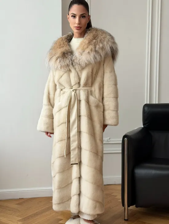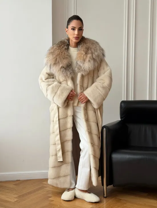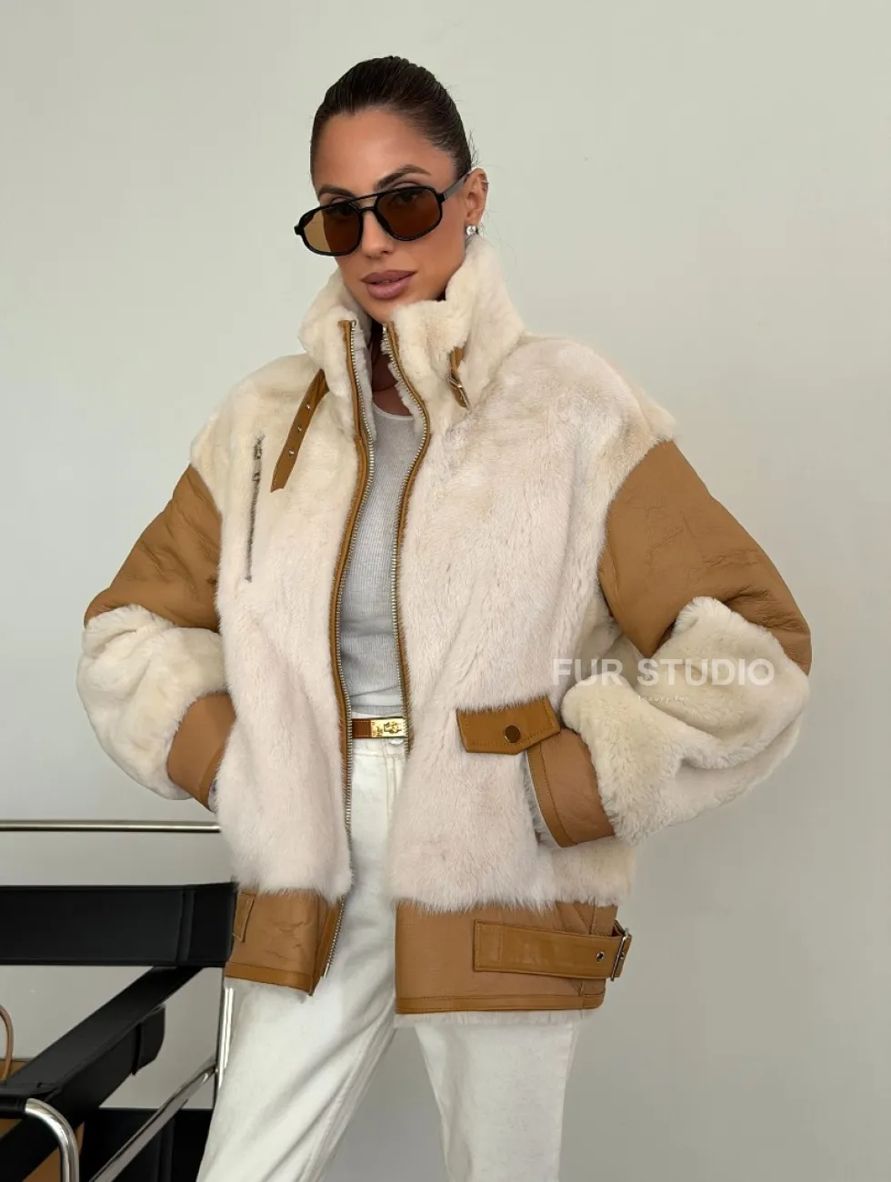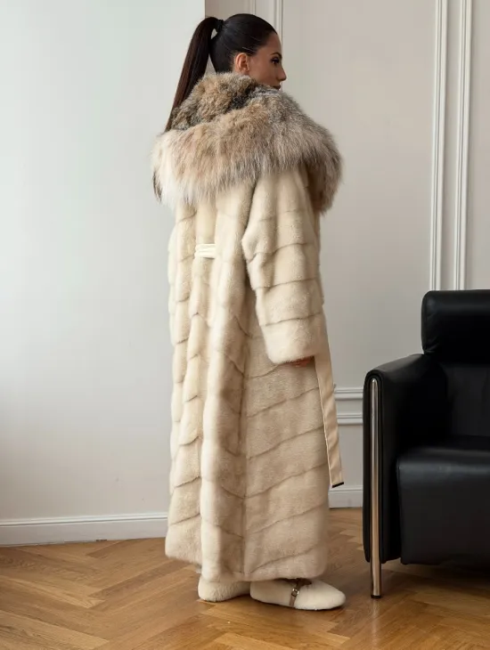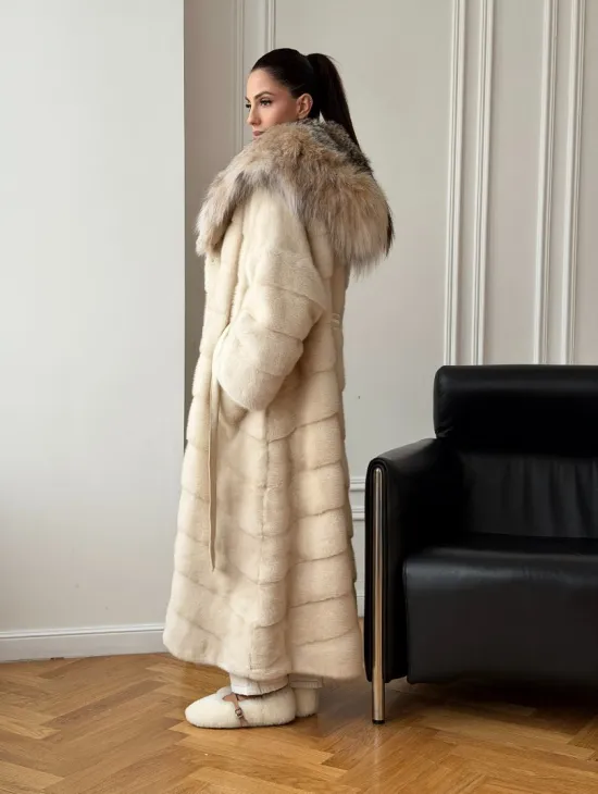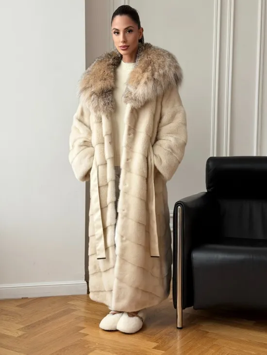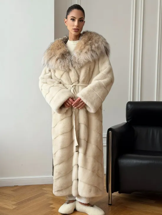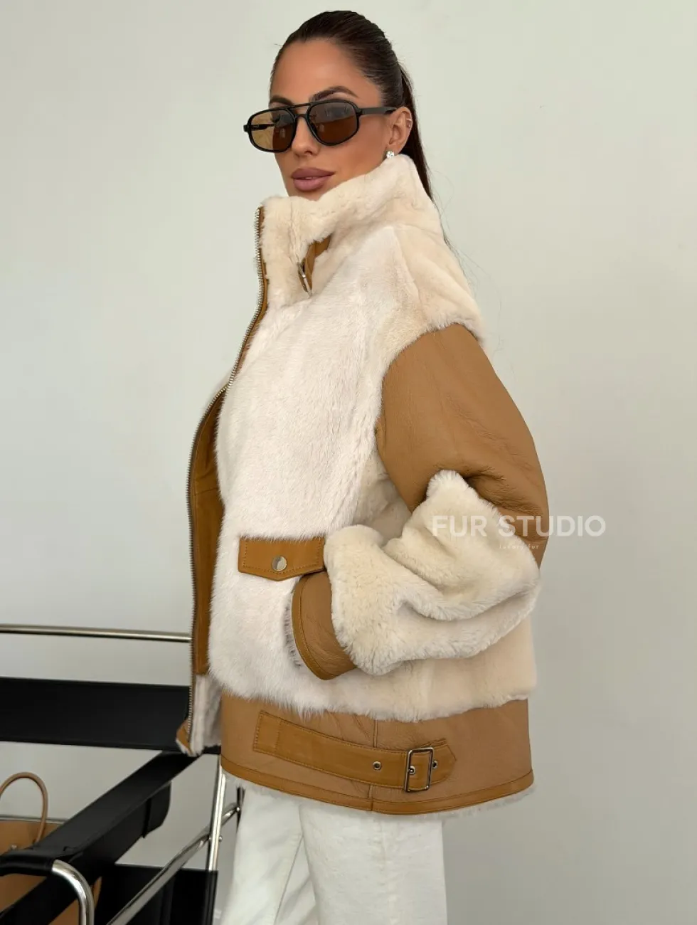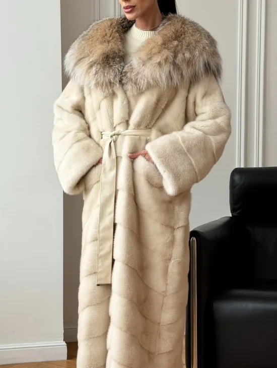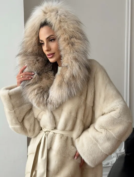 Комбинированная дубленка из норки и овчины. Модель предлагается в размерах от 42 до 48. Оптимальная длина моделей 55-60 см подчеркивает линии вашей фигуры. Эта дубленка станет неотъемлемой частью гардероба для тех, кто предпочитает роскошь и утонченность натуральной кожи.