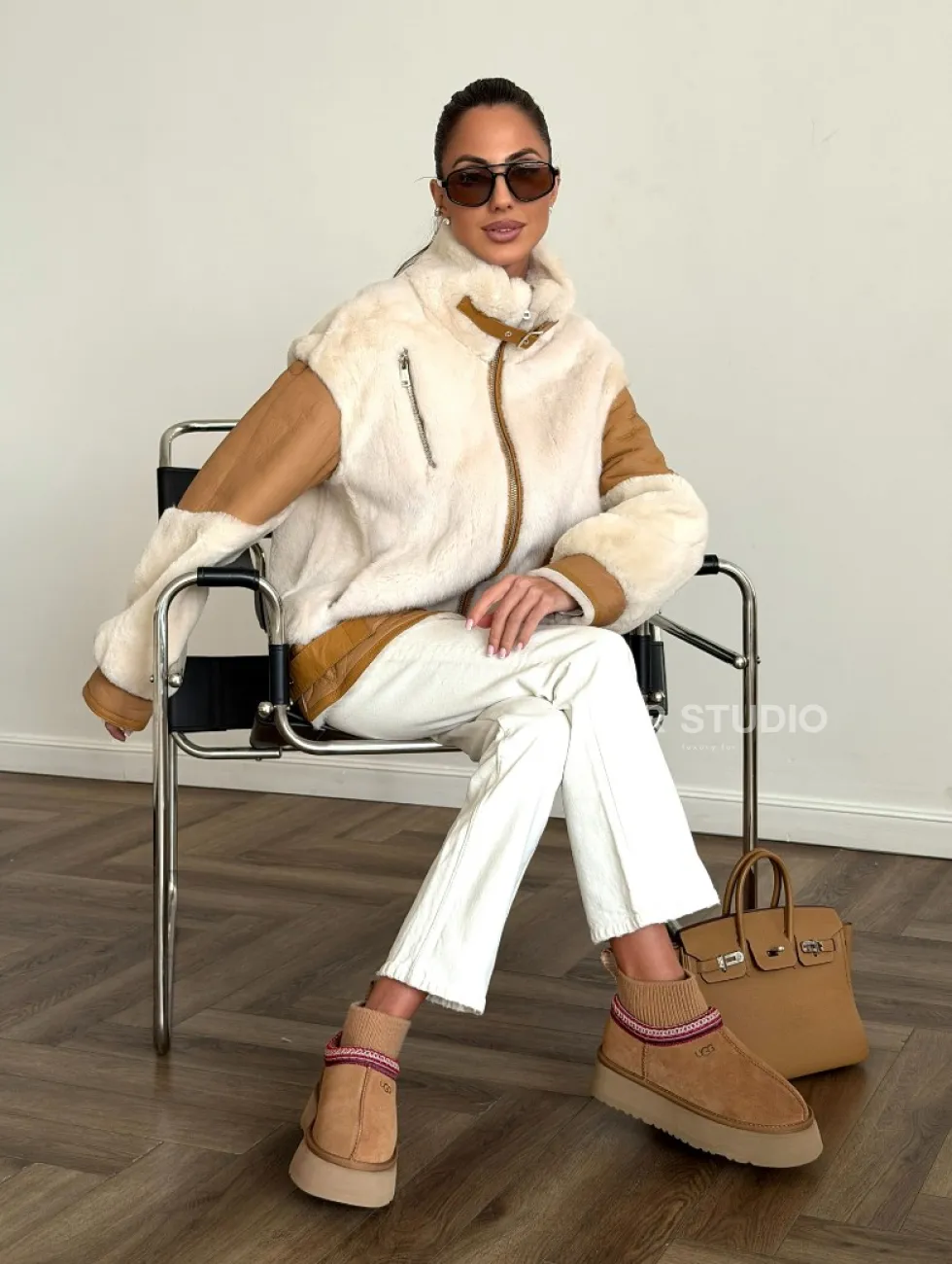 Комбинированная дубленка из норки и овчины доступна для покупки в нашем шоуруме Furs Studio в Чите, а также предлагается удобная доставка во все города России. Обогатите свой гардероб этой дубленкой, которая прослужит вам многие годы, добавив немного роскоши в ваш повседневный образ.