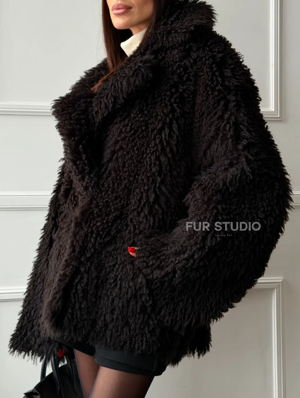 Коричневая дубленка из меха Тиградо. Модель предлагается в размерах от 42 до 46. Оптимальная длина моделей 65-70 см подчеркивает линии вашей фигуры. Эта дубленка станет неотъемлемой частью гардероба для тех, кто предпочитает роскошь и утонченность натуральной кожи.