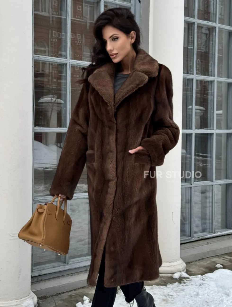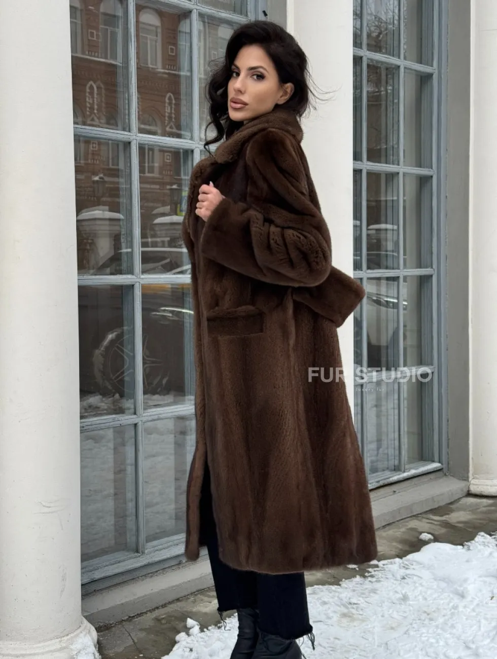 Коричневая шуба из меха норки с хлястиком на спине доступна для покупки в нашем шоуруме Furs Studio в Чите. У нас так же есть доставка во все города России. Добавьте немного роскоши в свой гардероб с этой шубой, которая будет служить вам многие годы.