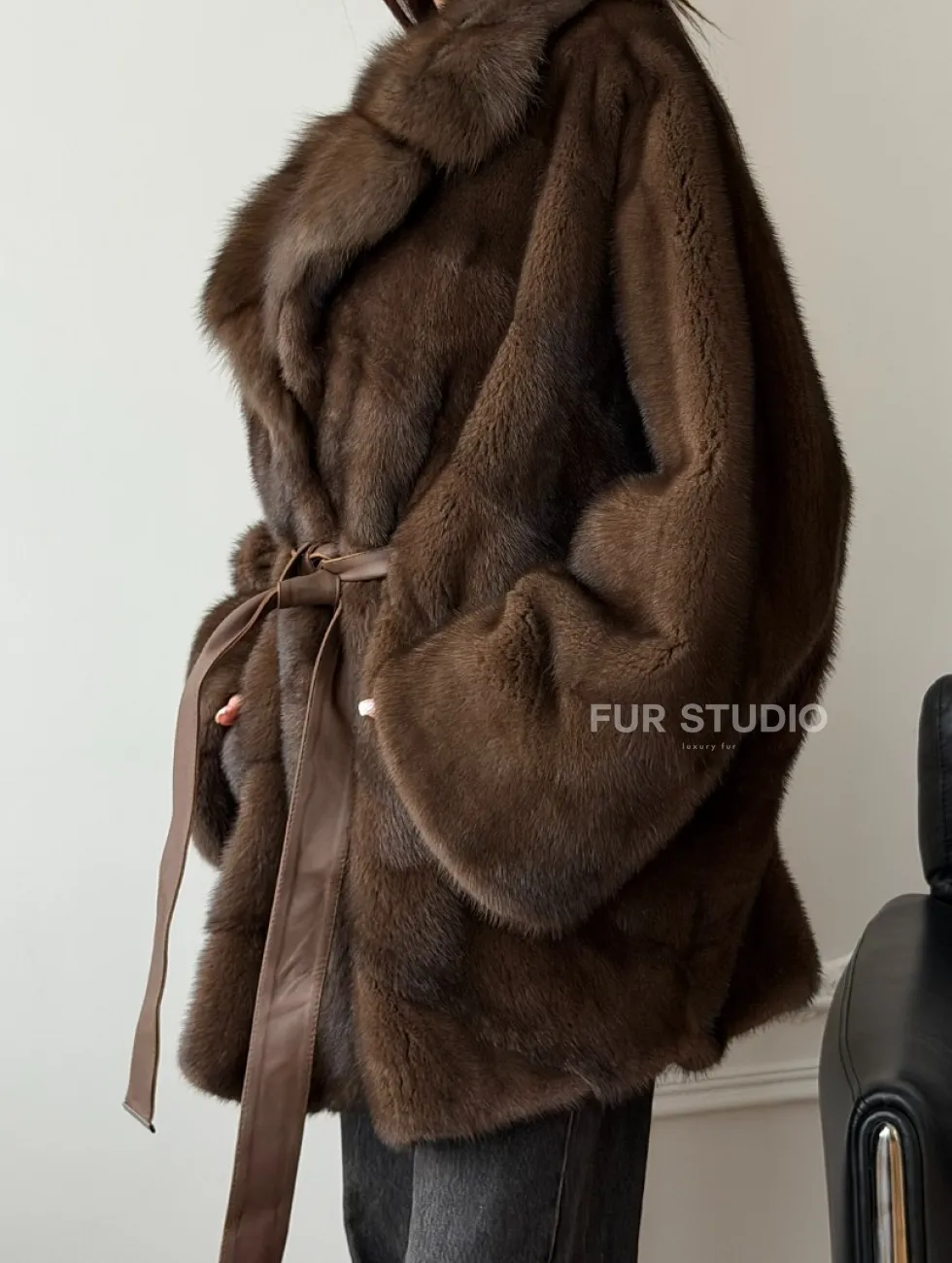 Мех данной шубы аукционная норка , цвет коричневый. Предлагается в размерах от 40 до 54. Длина модели 75-80 см, что выгодно подчеркивает фигуру девушек. Эта модель идеально подойдет для девушек и женщин, предпочитающих роскошные натуральные меха.