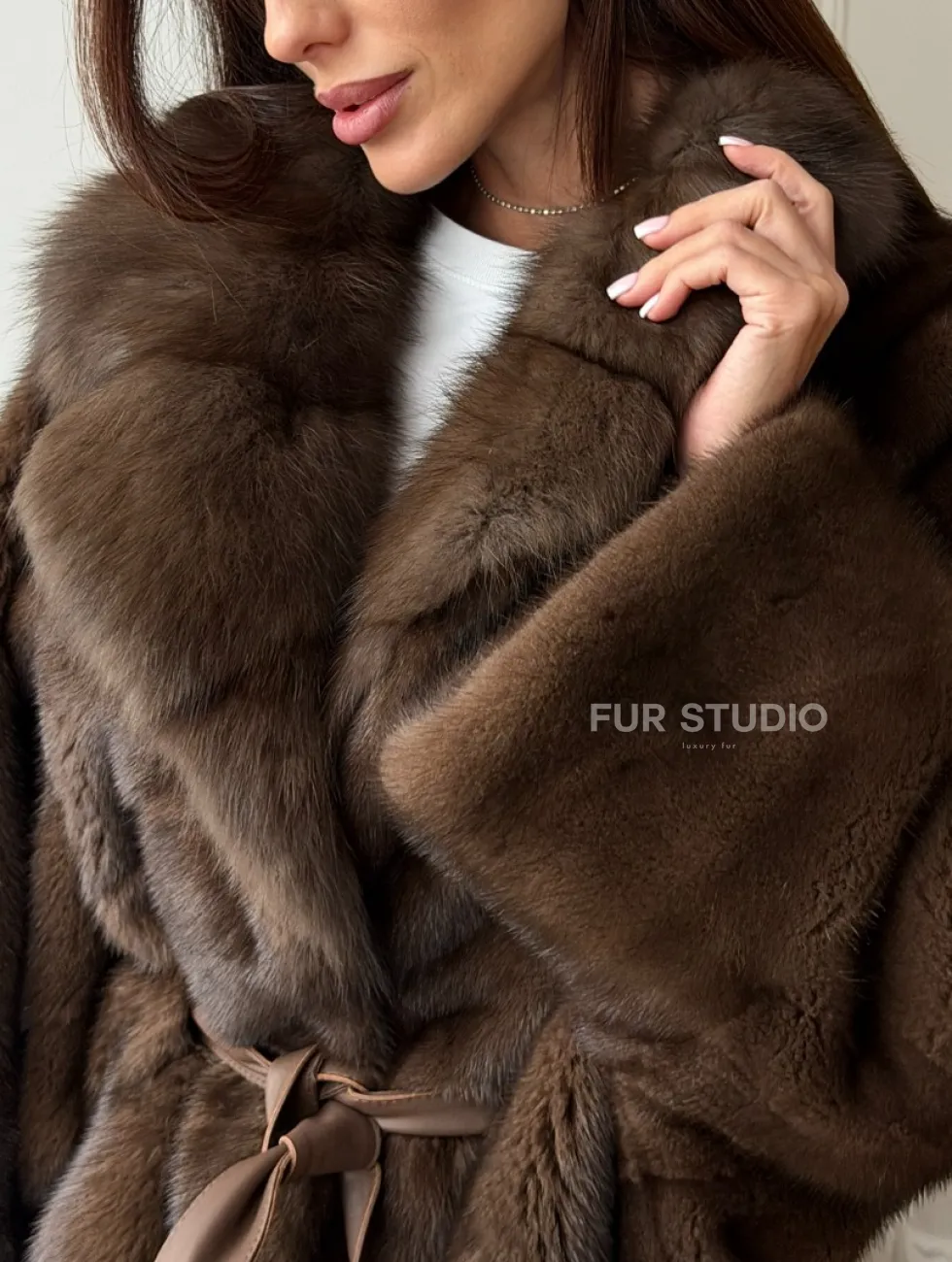 Коричневый полушубок с воротником куницы - летучая мышь доступна для покупки в нашем шоуруме Furs Studio в Чите. У нас так же есть доставка во все города России. Добавьте немного роскоши в свой гардероб с этой шубой, которая будет служить вам многие годы.