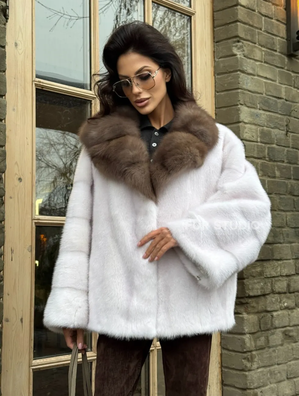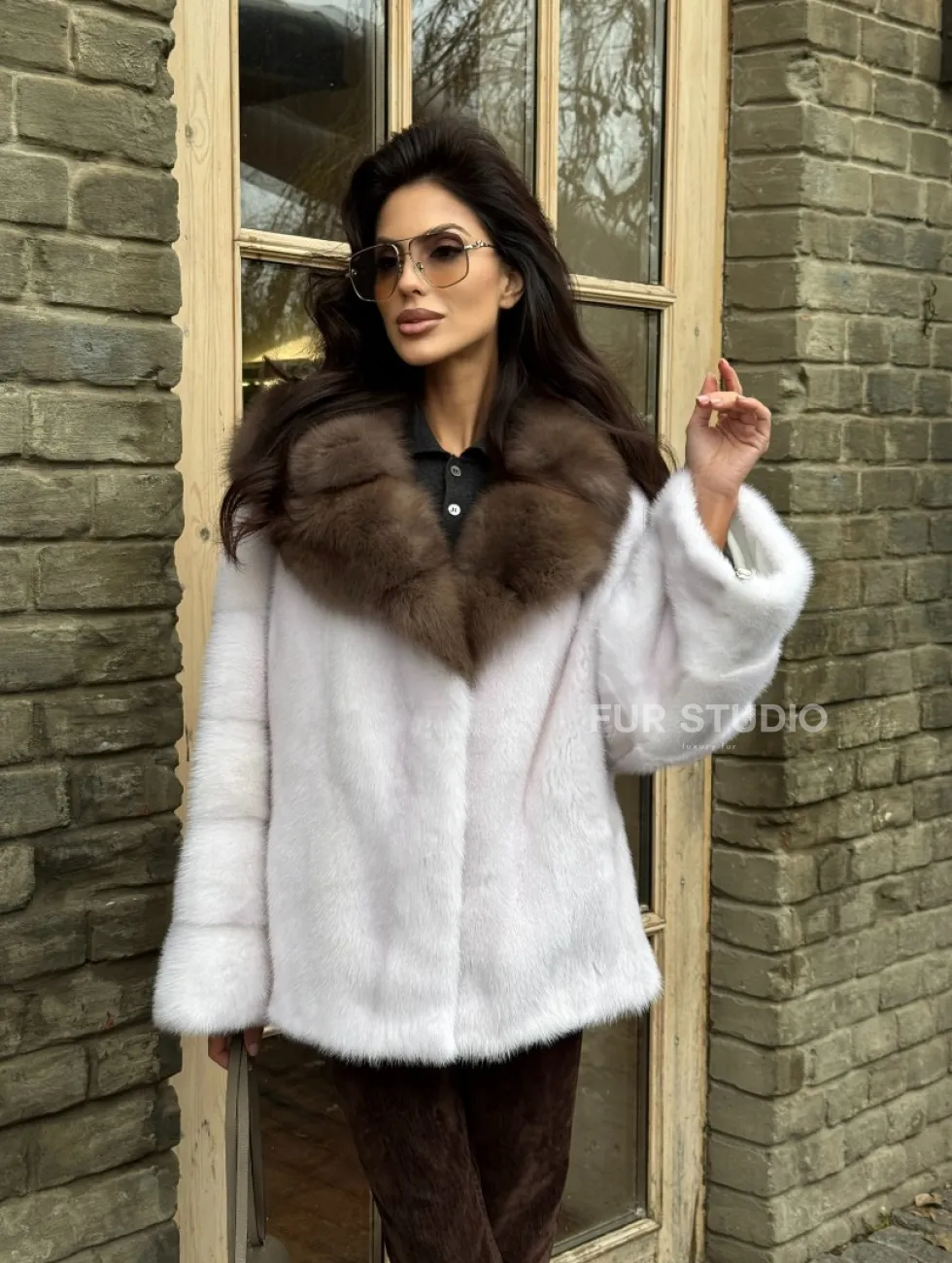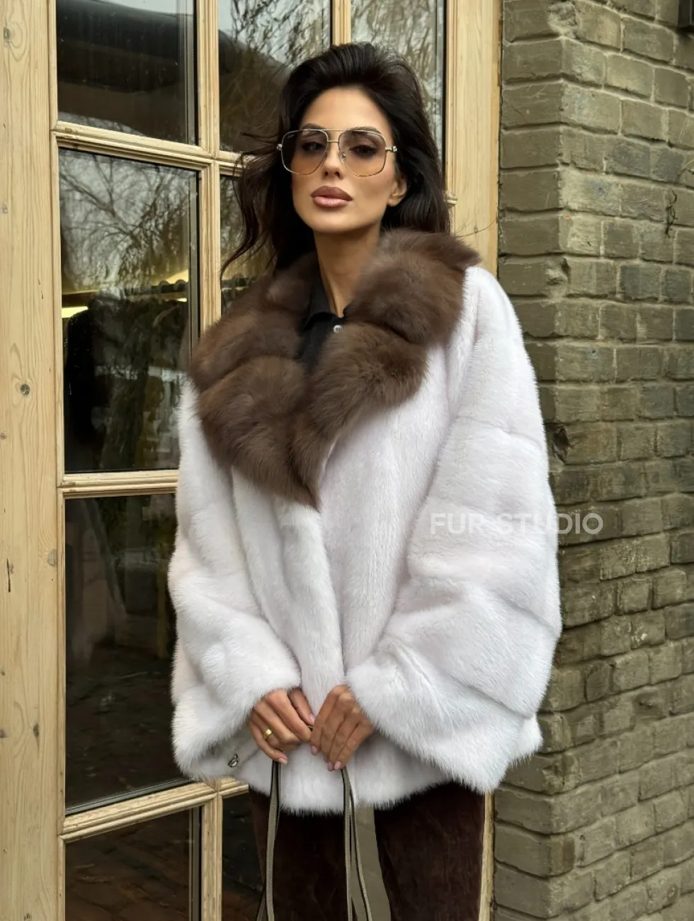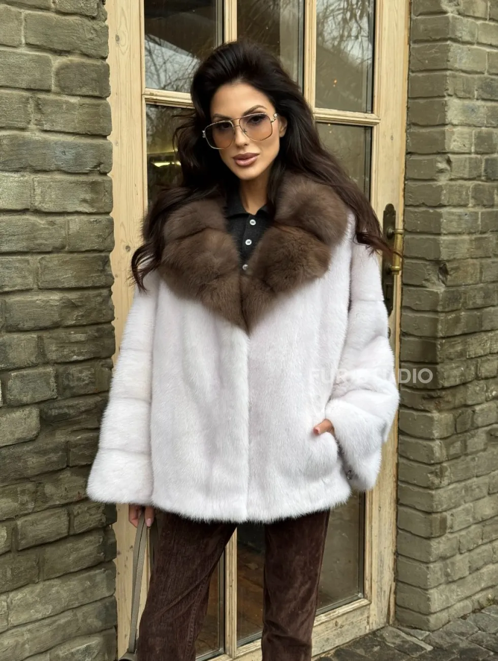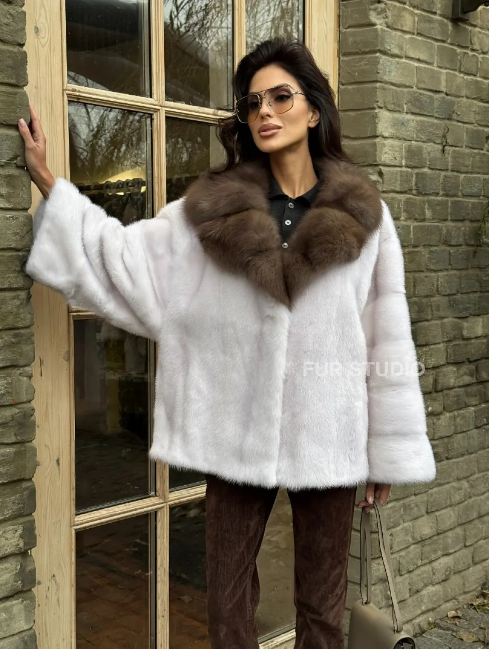 Короткая белая шубка с воротником из натуральной куницы доступна для покупки в нашем шоуруме Furs Studio в Чите. У нас так же есть доставка во все города России. Добавьте немного роскоши в свой гардероб с этой шубой, которая будет служить вам многие годы.