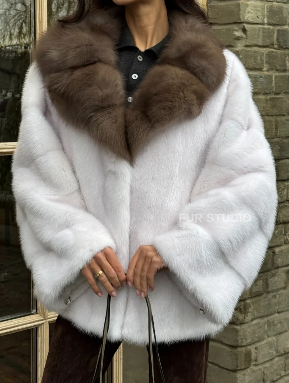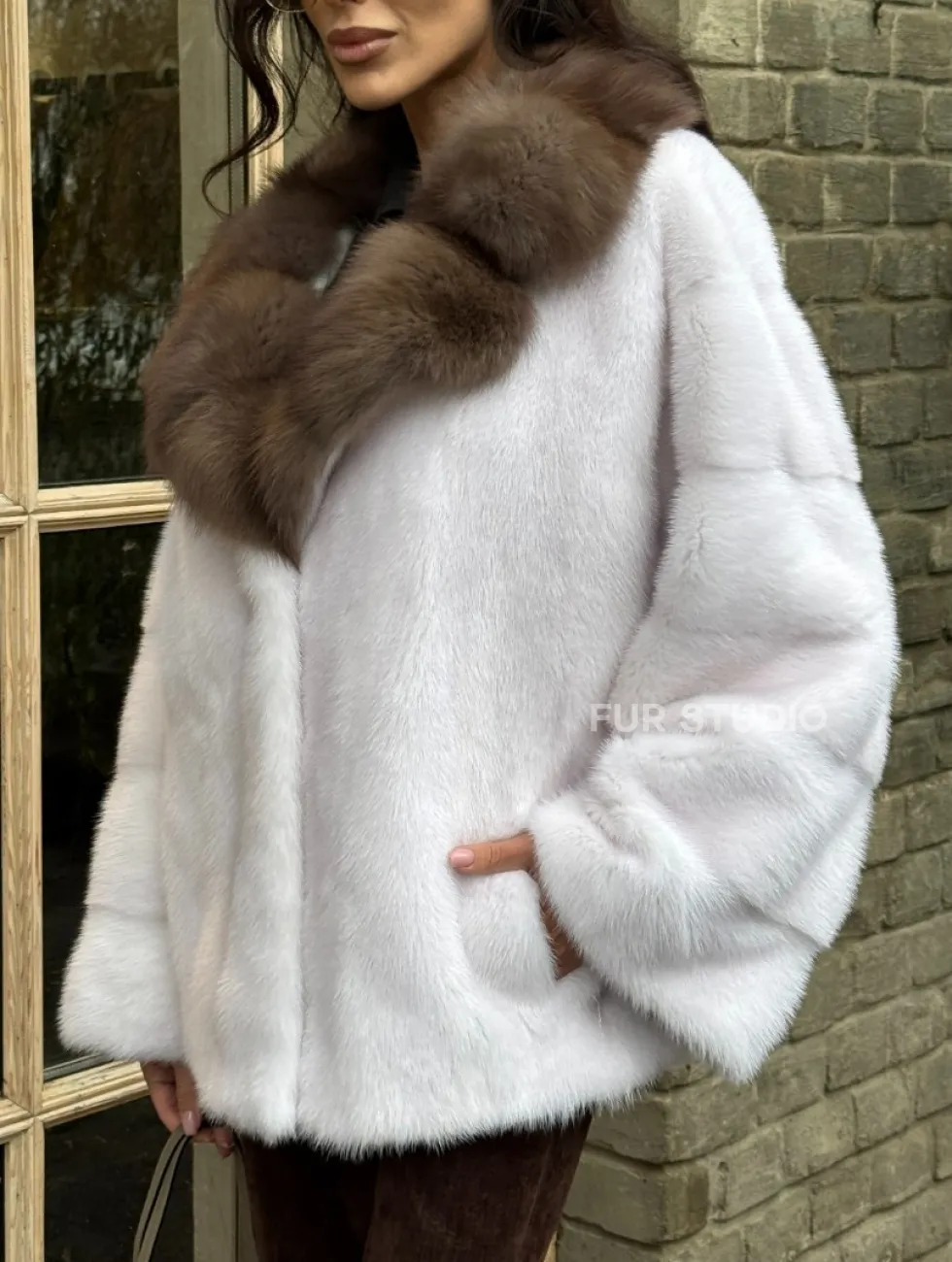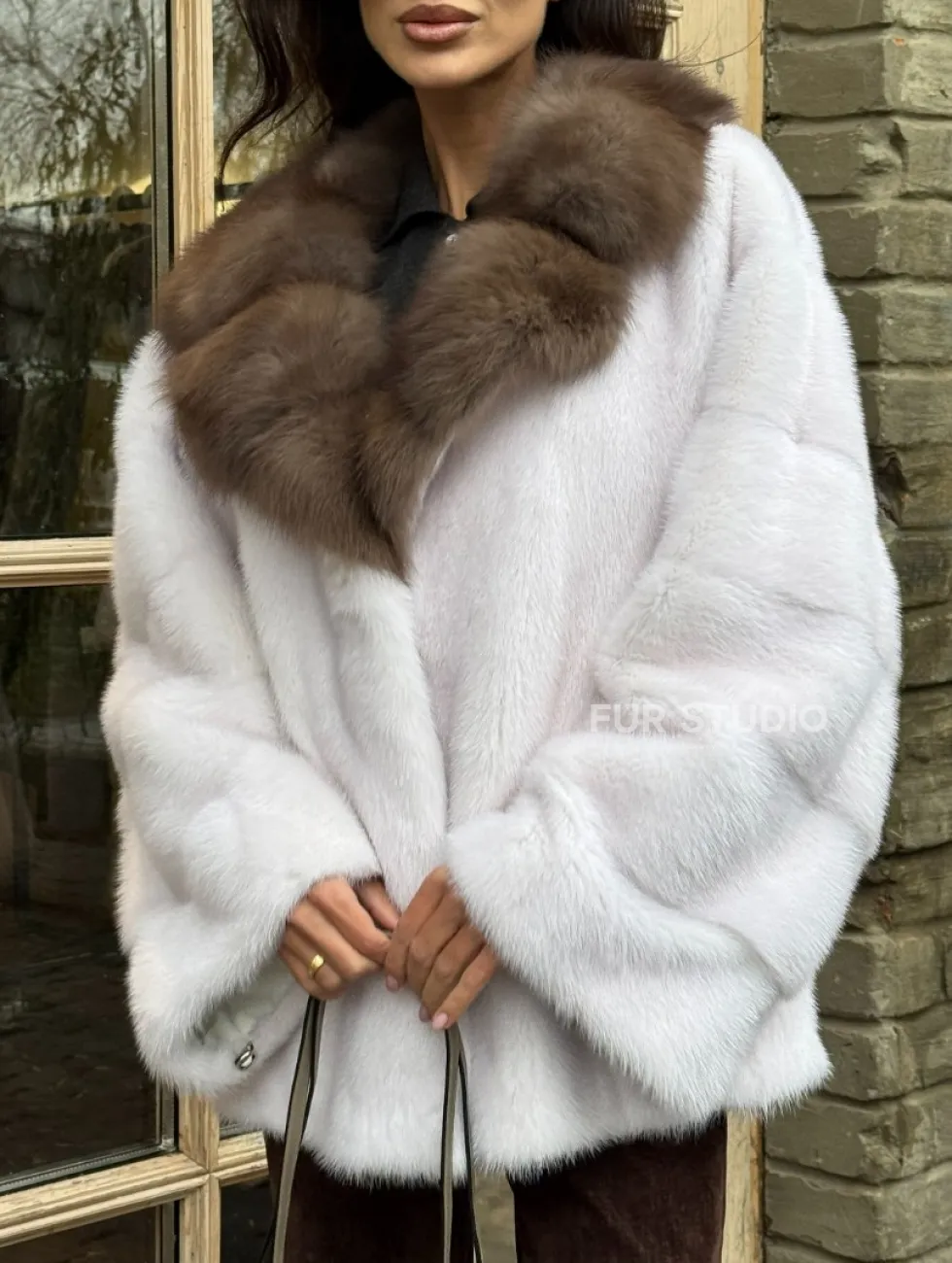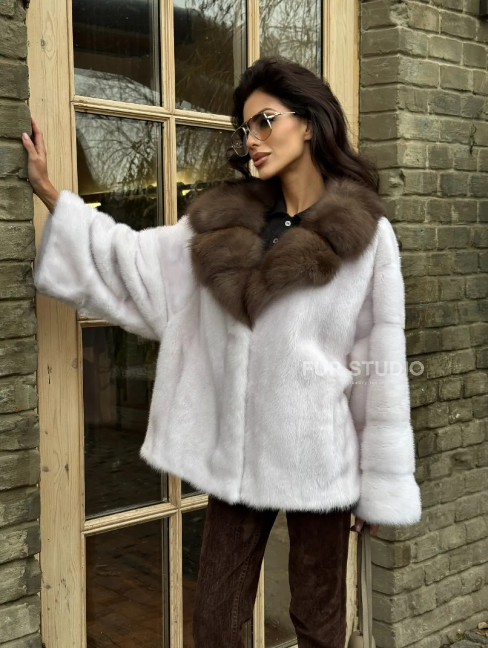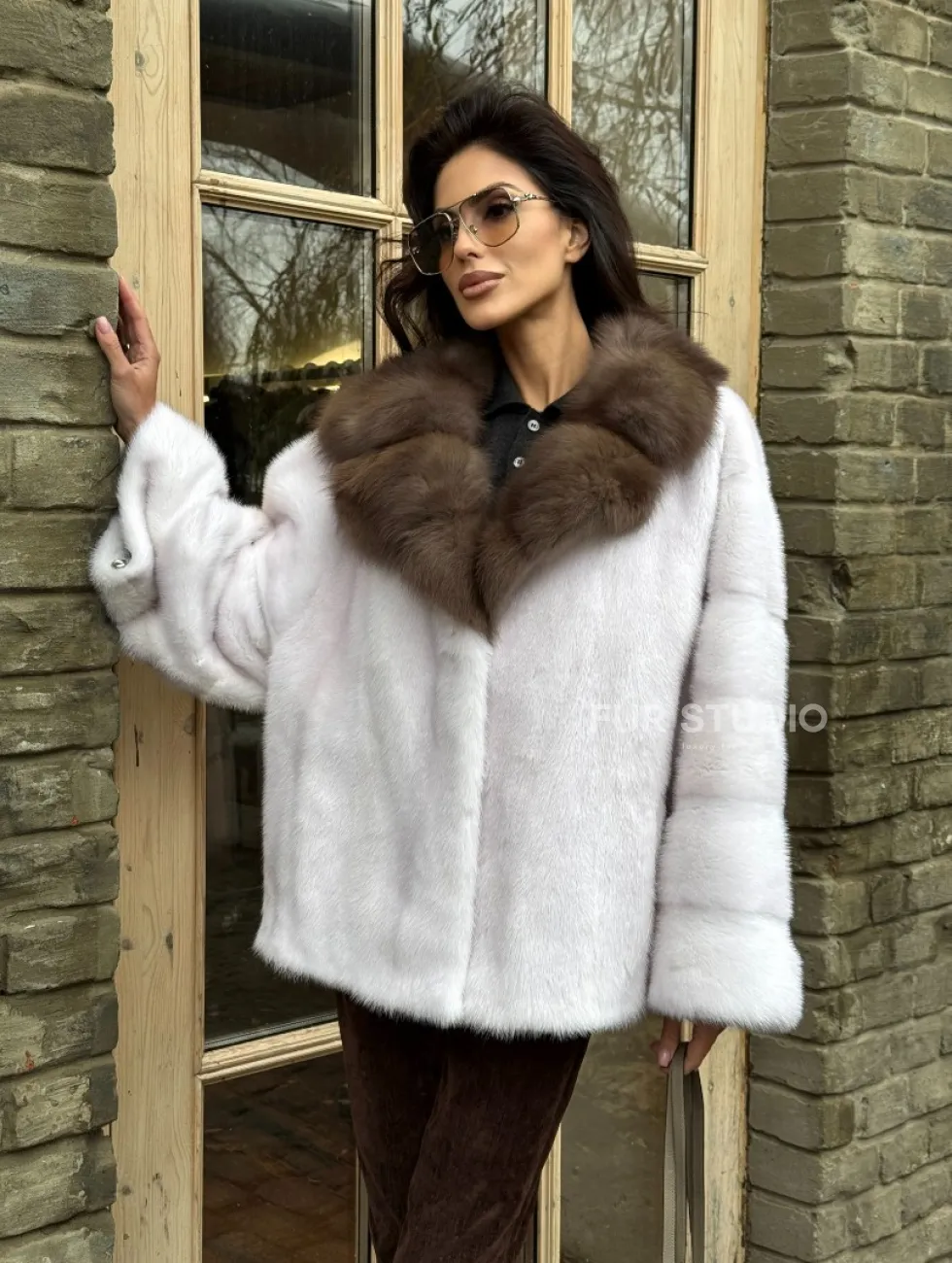 Короткая белая шубка с воротником из натуральной куницы доступна для покупки в нашем шоуруме Furs Studio в Чите. У нас так же есть доставка во все города России. Добавьте немного роскоши в свой гардероб с этой шубой, которая будет служить вам многие годы.