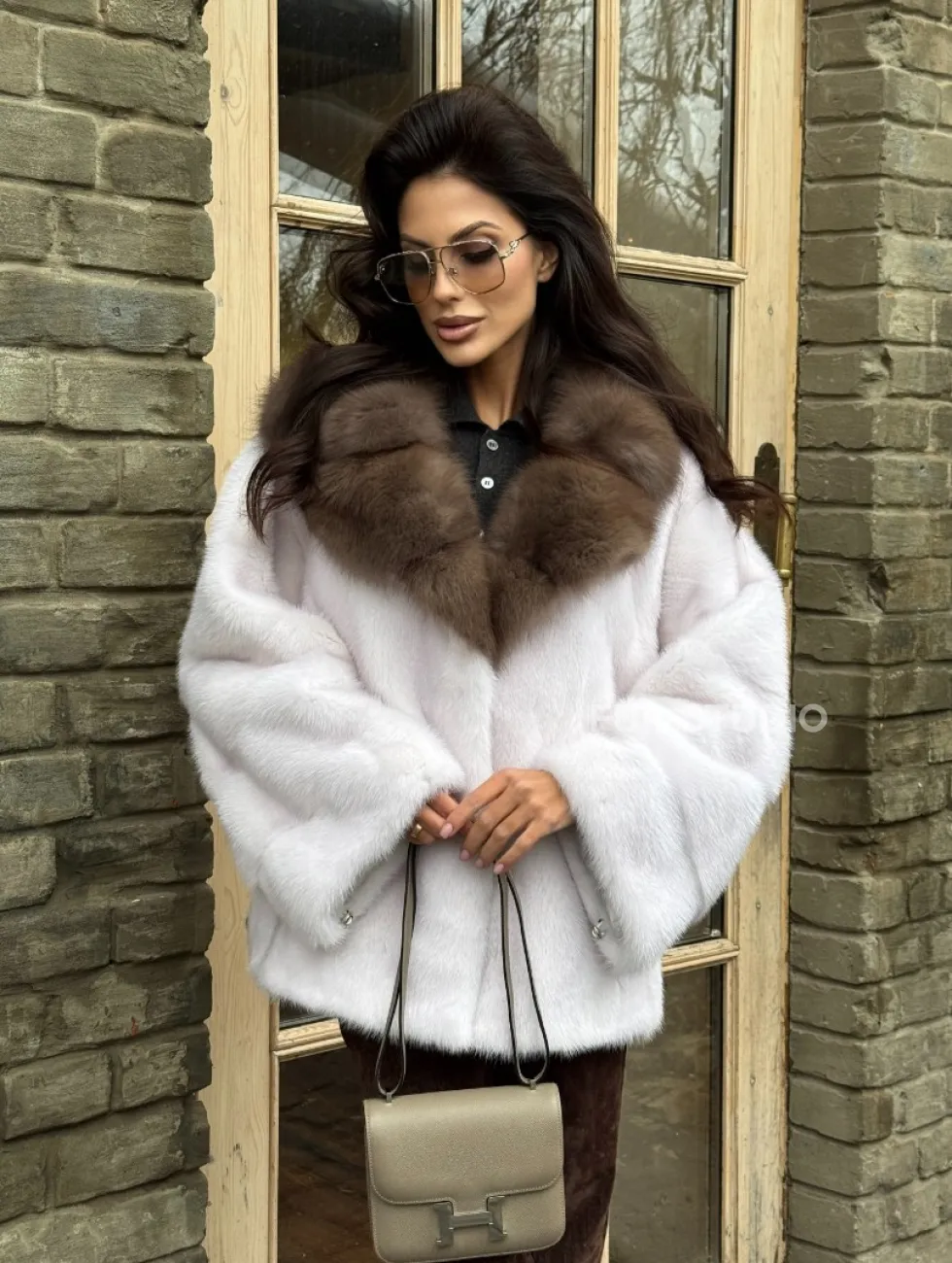 Мех данной шубы аукционная норка, цвет белый. Предлагается в размерах от 42 до 50. Длина модели 60-65 см, что выгодно подчеркивает фигуру девушек. Эта модель идеально подойдет для девушек и женщин, предпочитающих роскошные натуральные меха.