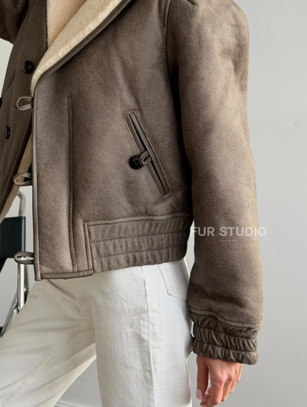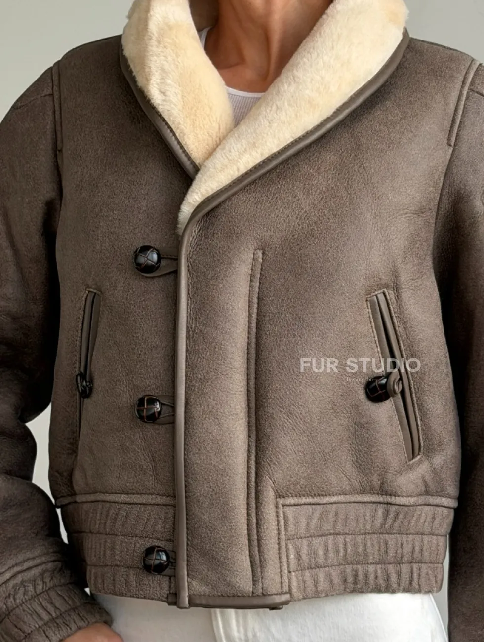 Короткая дубленка - воротник шаль доступна для покупки в нашем шоуруме Furs Studio в Чите, а также предлагается удобная доставка во все города России. Обогатите свой гардероб этой дубленкой, которая прослужит вам многие годы, добавив немного роскоши в ваш повседневный образ.