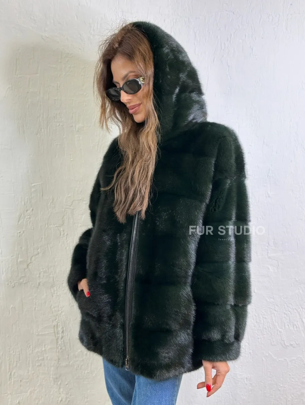 Короткая норковая шуба на молнии - цвет темный изумруд доступна для покупки в нашем шоуруме Furs Studio в Чите. У нас так же есть доставка во все города России. Добавьте немного роскоши в свой гардероб с этой шубой, которая будет служить вам многие годы.