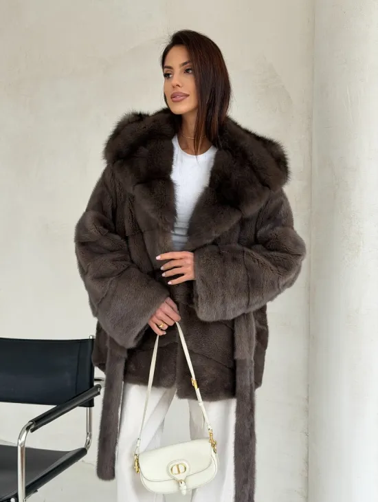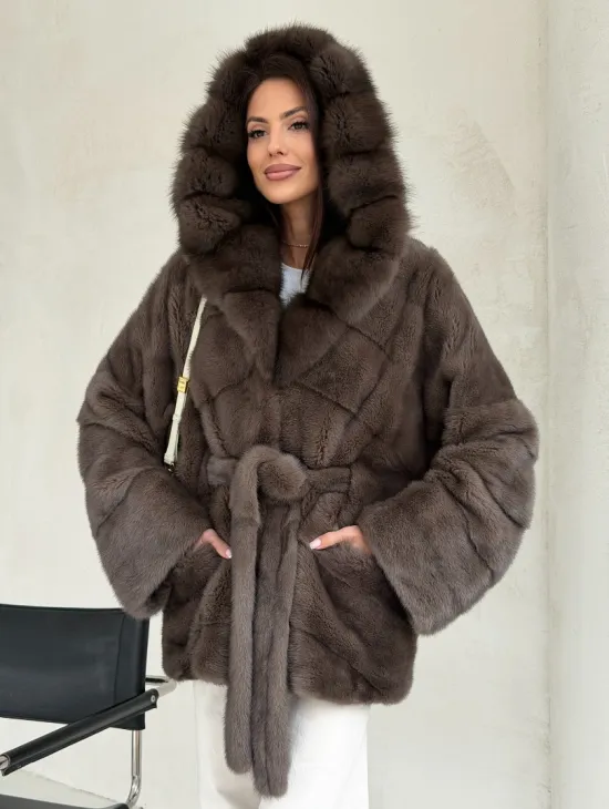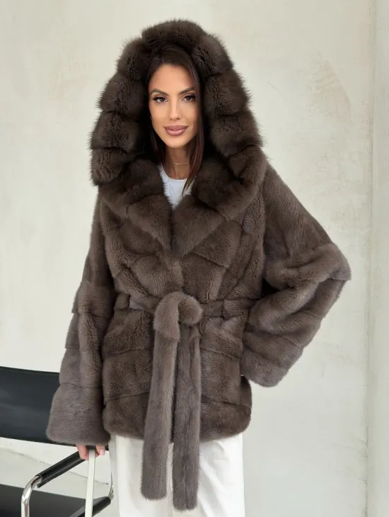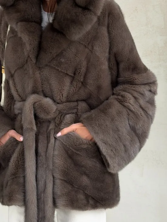 Мех данной шубы аукционная норка, цвет коричневый. Предлагается в размерах от 40 до 56 (oversize). Длина модели 55-60 см, что выгодно подчеркивает фигуру девушек. Эта модель идеально подойдет для девушек и женщин, предпочитающих роскошные натуральные меха.