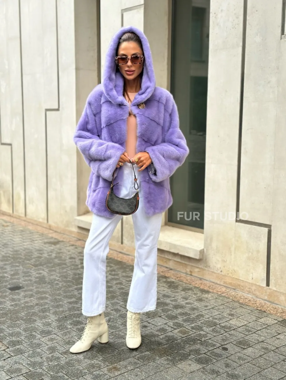 Короткая норковая шуба с капюшоном - цвет лиловый доступна для покупки в нашем шоуруме Furs Studio в Чите. У нас так же есть доставка во все города России. Добавьте немного роскоши в свой гардероб с этой шубой, которая будет служить вам многие годы.