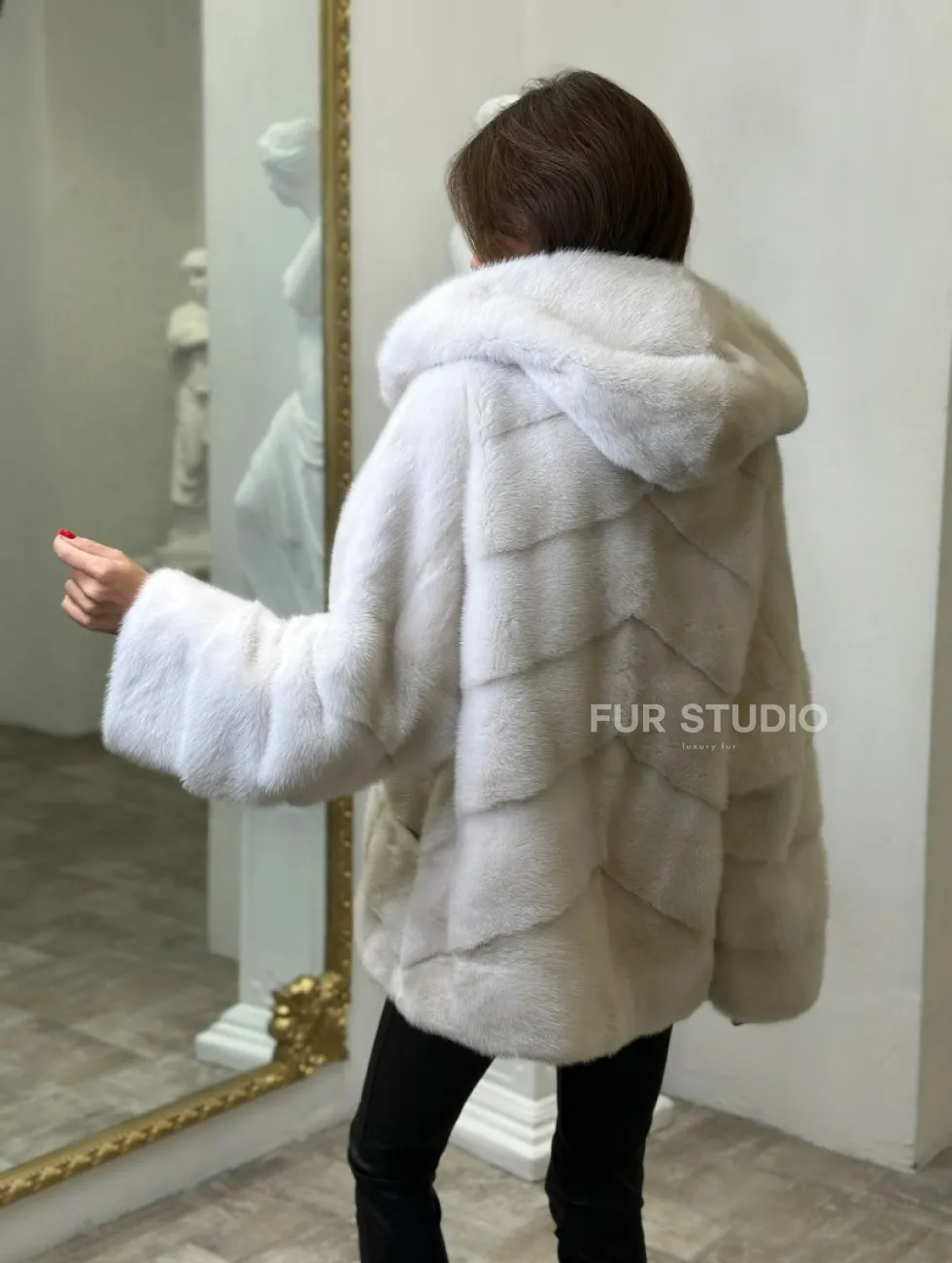Короткая норковая шуба с капюшоном - цвет ваниль доступна для покупки в нашем шоуруме Furs Studio в Чите. У нас так же есть доставка во все города России. Добавьте немного роскоши в свой гардероб с этой шубой, которая будет служить вам многие годы.