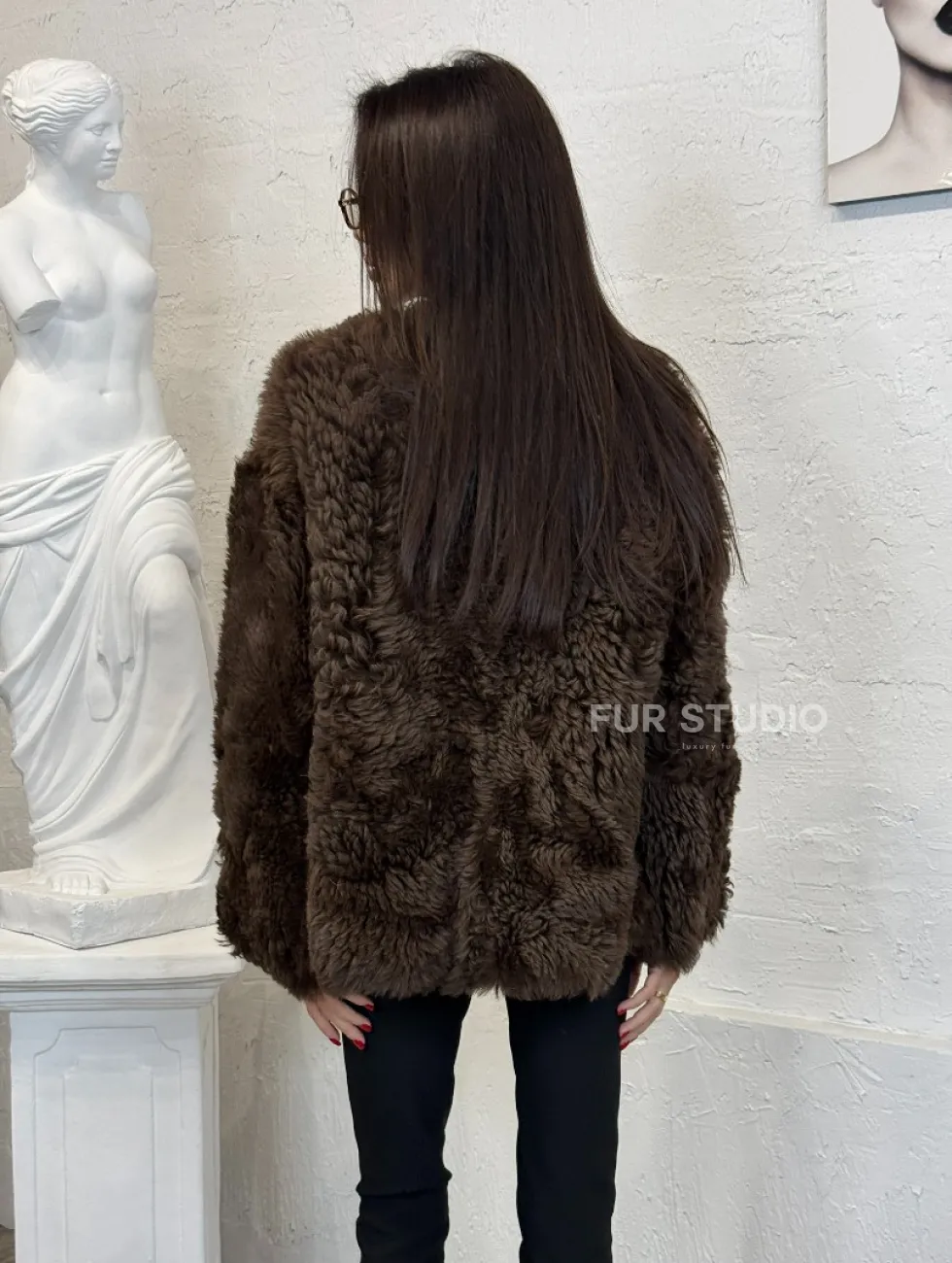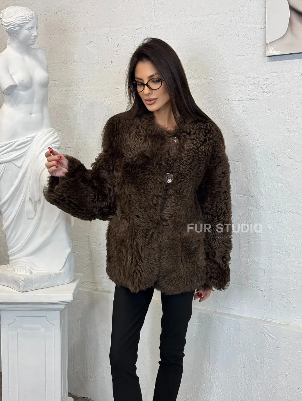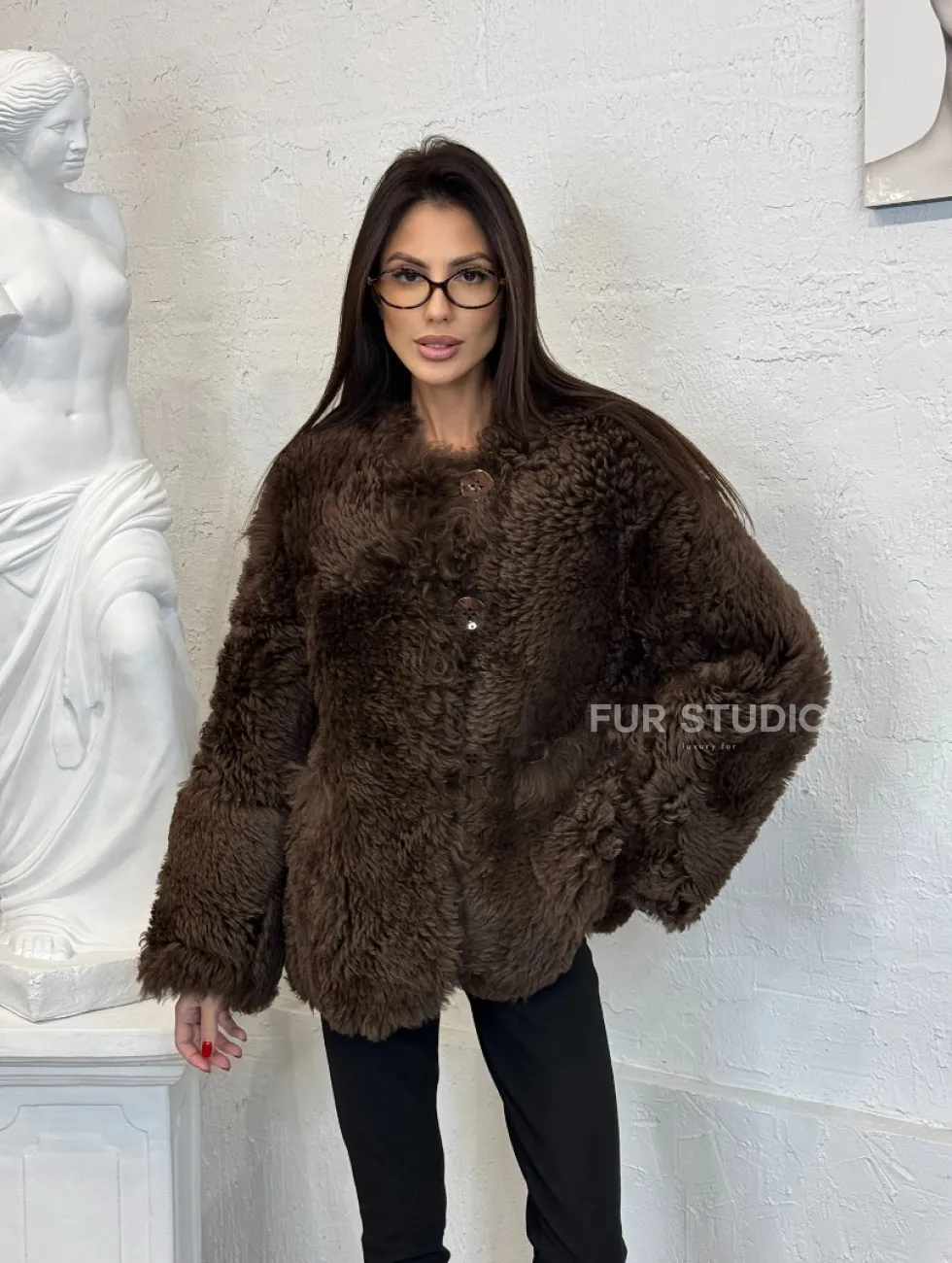 Короткая шуба из натуральной овчины с круглым вырезом и накладными карманами доступна для покупки в нашем шоуруме Furs Studio в Чите, а также предлагается удобная доставка во все города России. Обогатите свой гардероб этой дубленкой, которая прослужит вам многие годы, добавив немного роскоши в ваш повседневный образ.