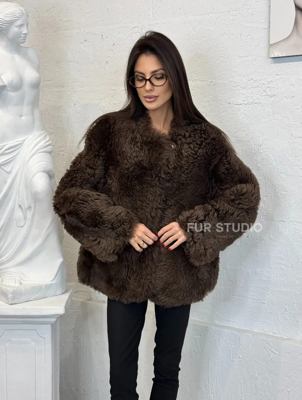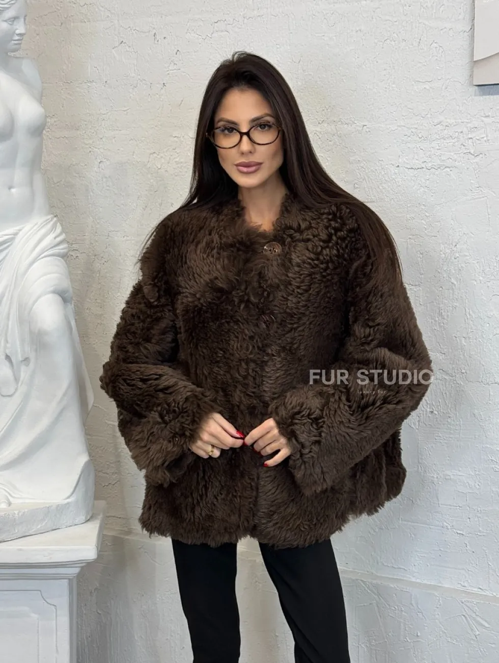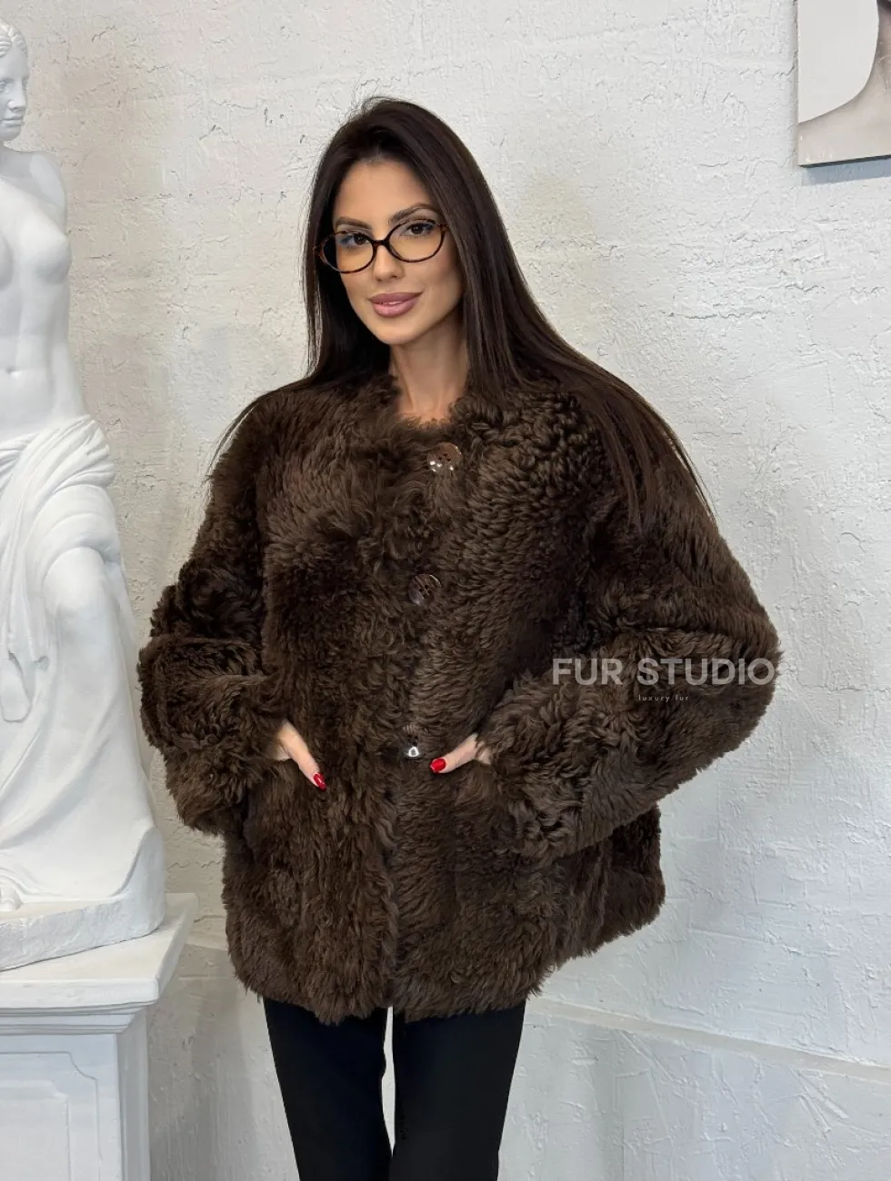 Короткая шуба из натуральной овчины с круглым вырезом и накладными карманами. Модель предлагается в размерах от 42 до 46. Оптимальная длина моделей 60-65 см подчеркивает линии вашей фигуры. Эта дубленка станет неотъемлемой частью гардероба для тех, кто предпочитает роскошь и утонченность натуральной кожи.