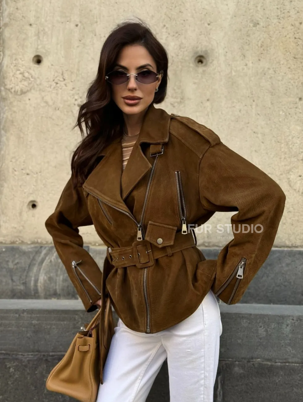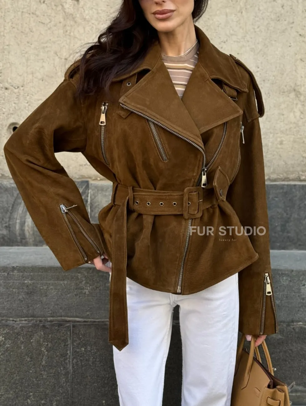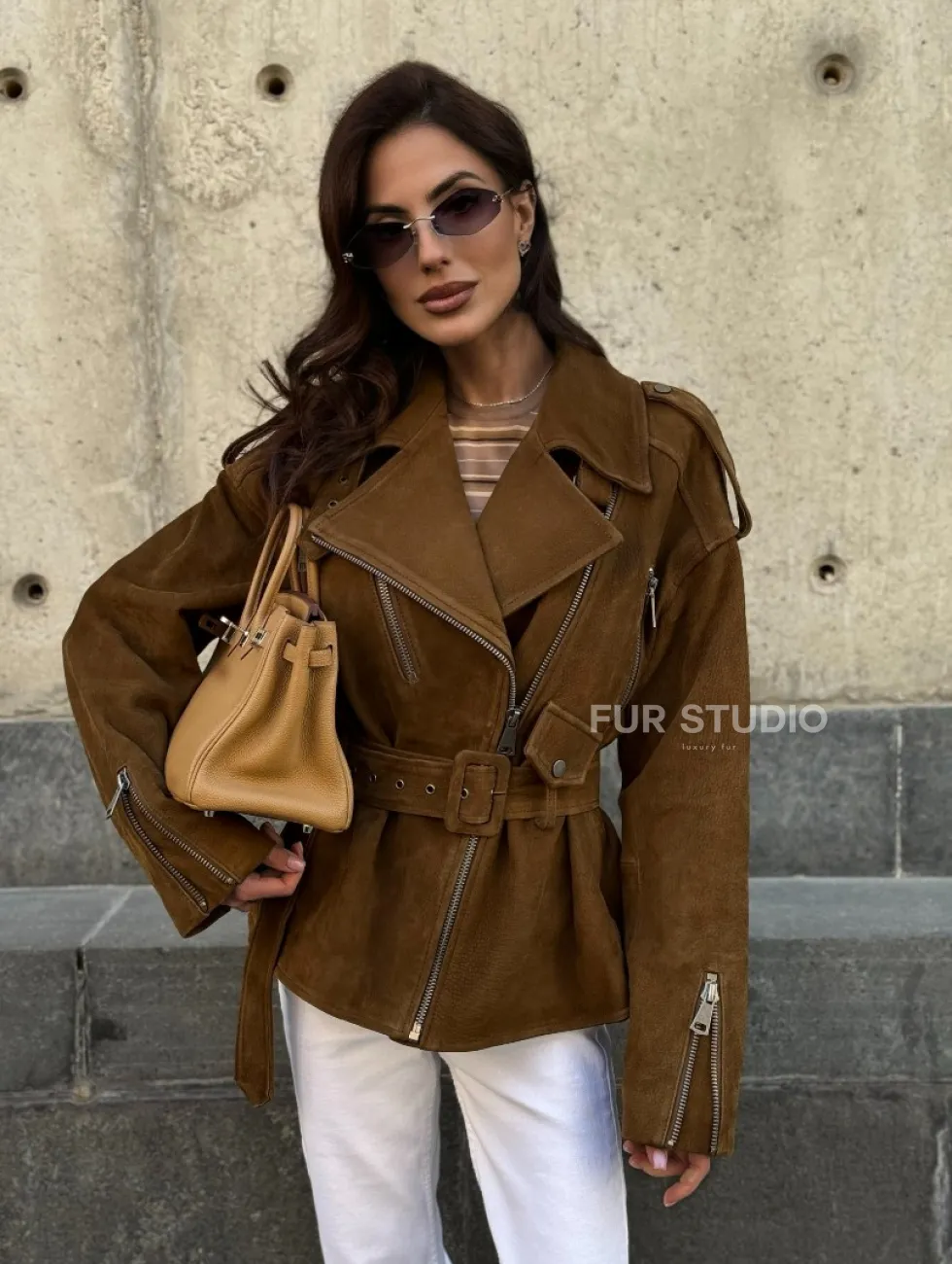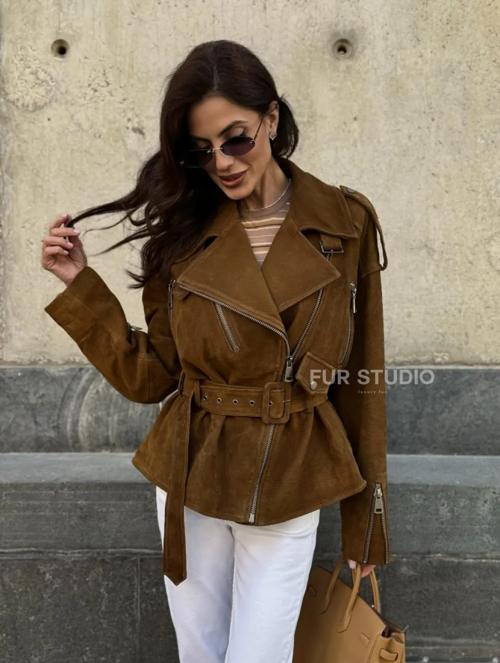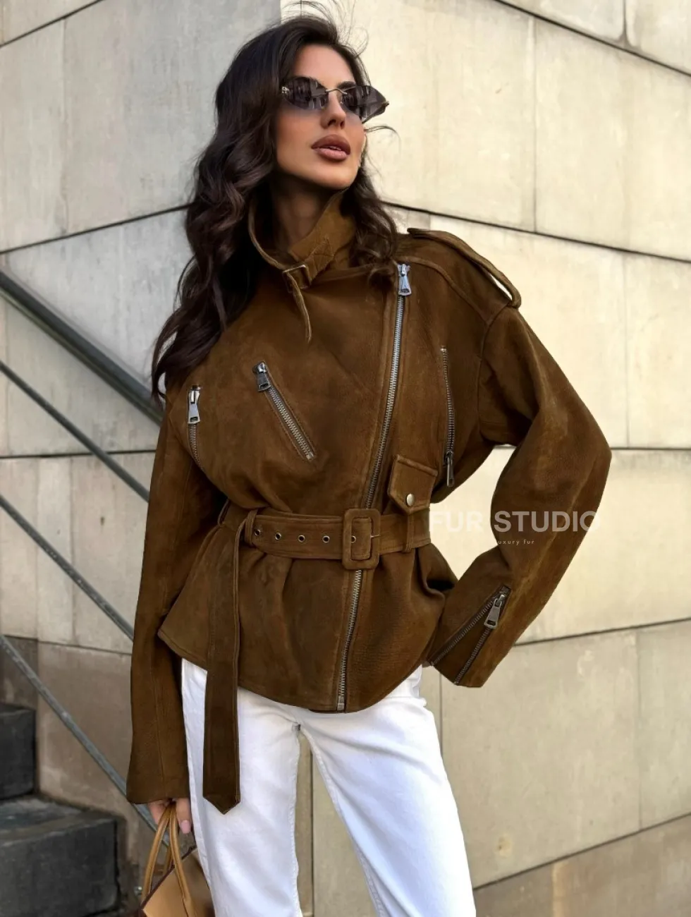 Восхититесь элегантностью и несравненным комфортом с нашей эксклюзивной коллекцией кожаных изделий. Изготовленная из первоклассной натуральной кожи, Косуха из натуральной замши под пояс "весна 2025" не только согреет вас в прохладные дни, но и подчеркнет ваш изысканный вкус. Уникальный дизайн и высокое качество делают наши представленные образцы идеальным выбором для утончённых образов.