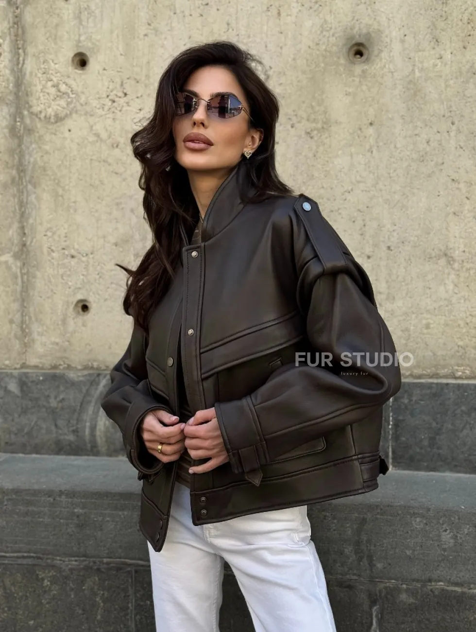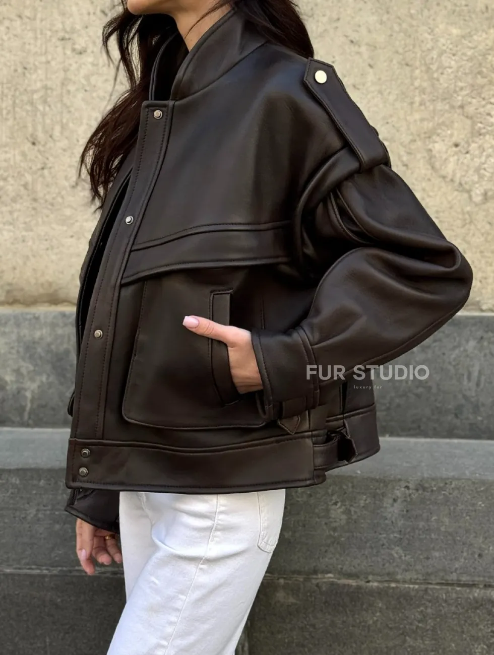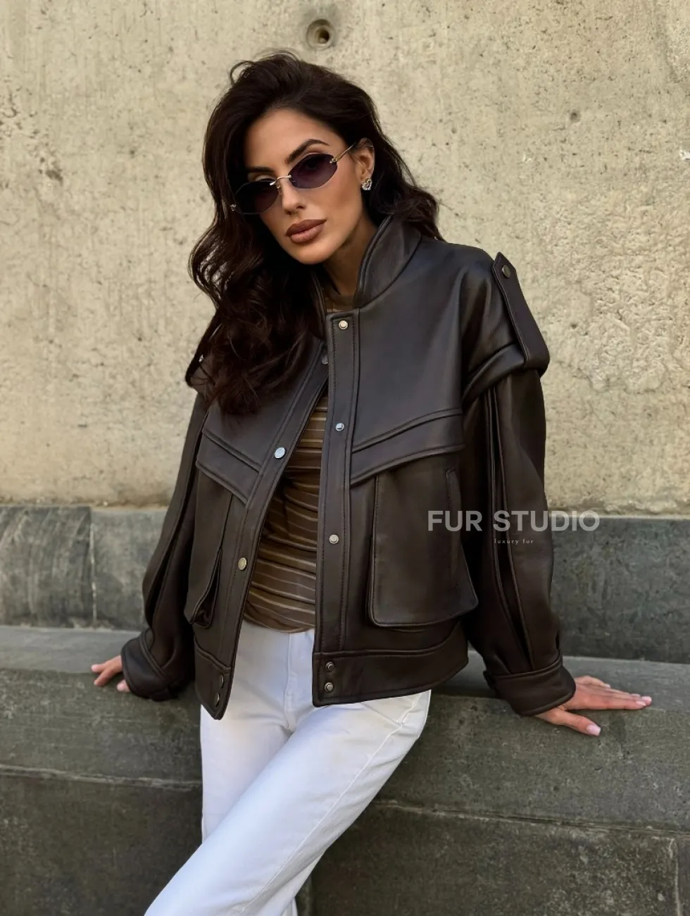 Кожаная коричневая куртка Retro Vintage доступна для покупки в нашем шоуруме Furs Studio в Чите, где также предоставляется удобная доставка во все города России.