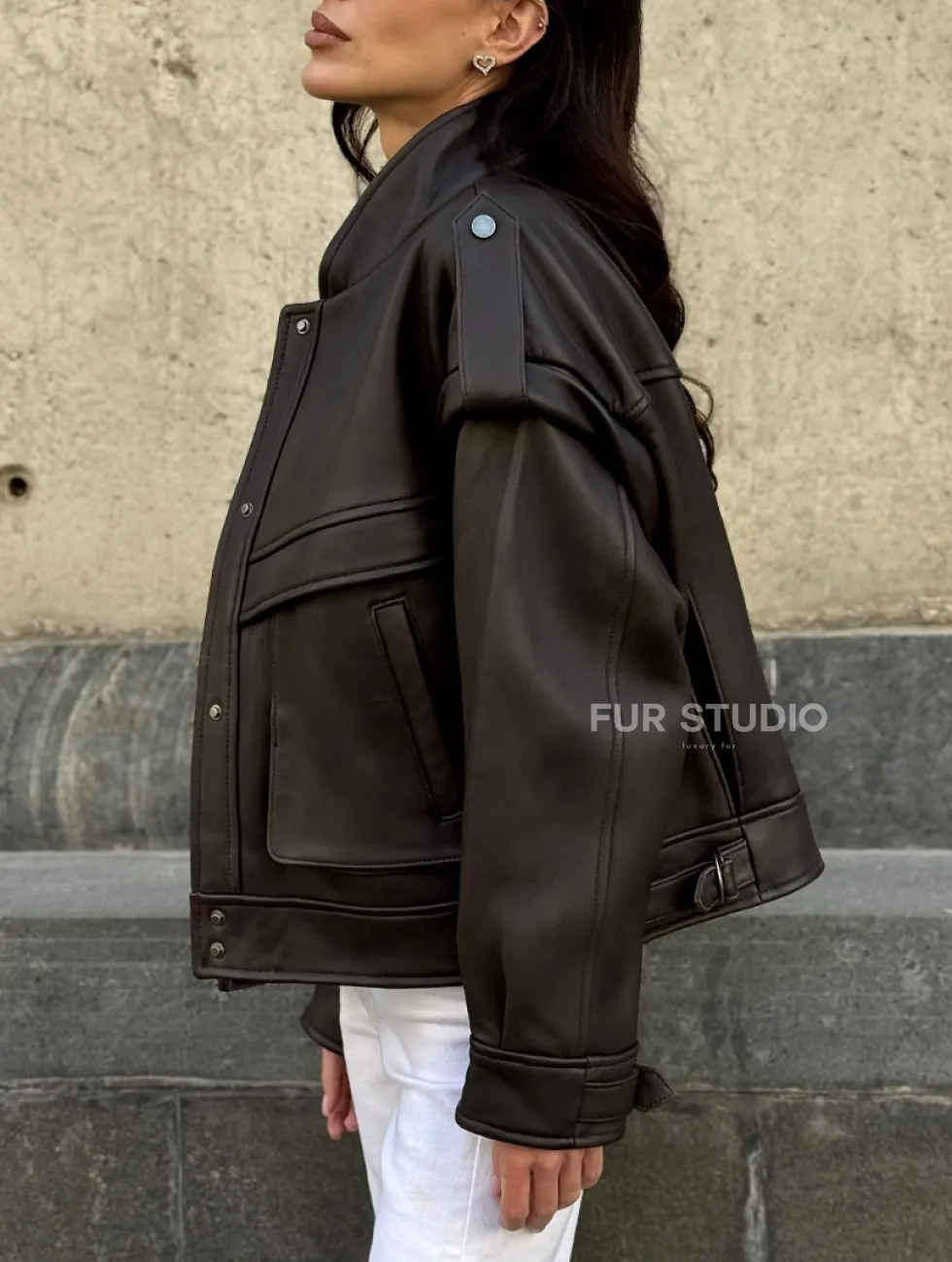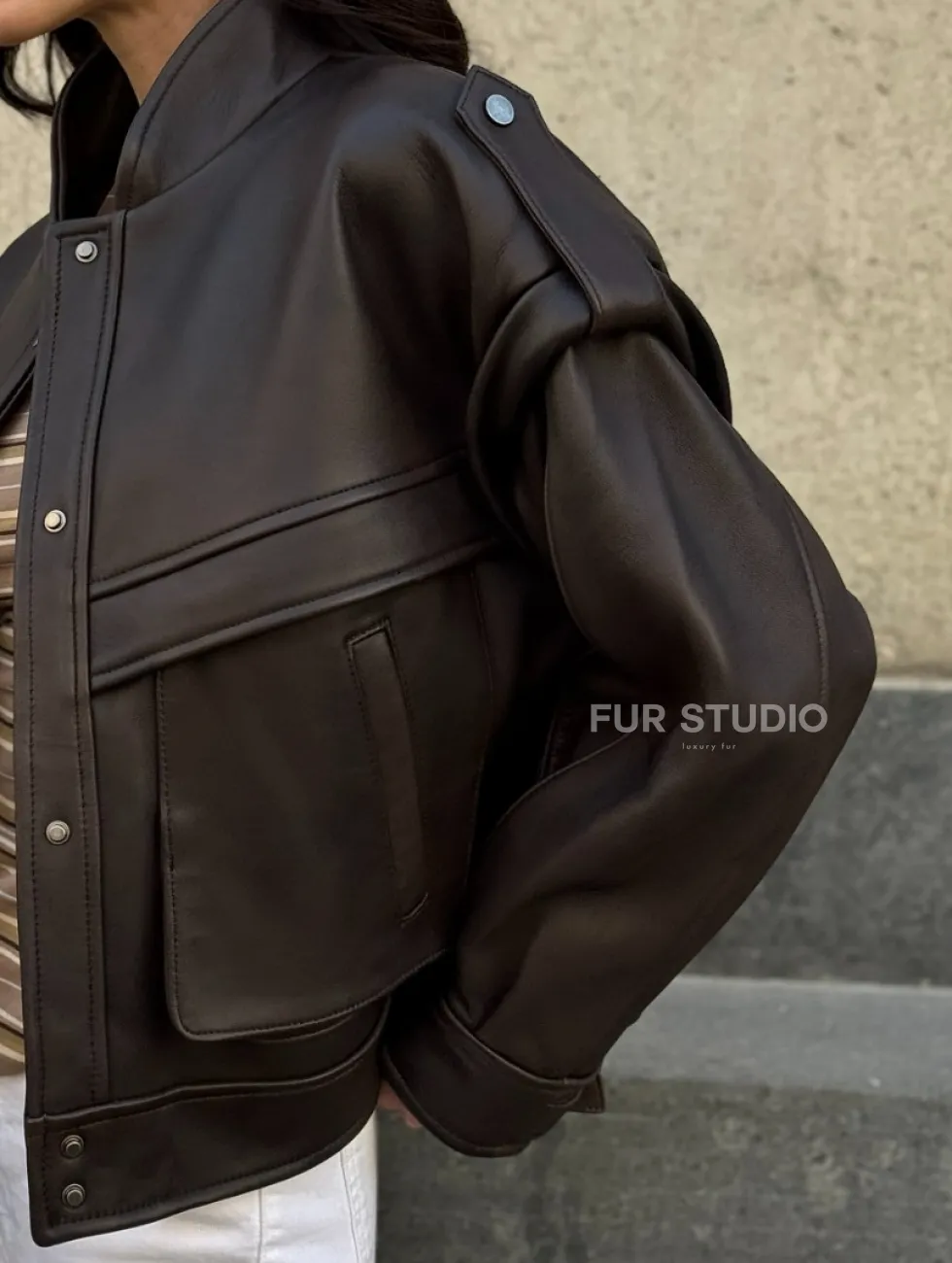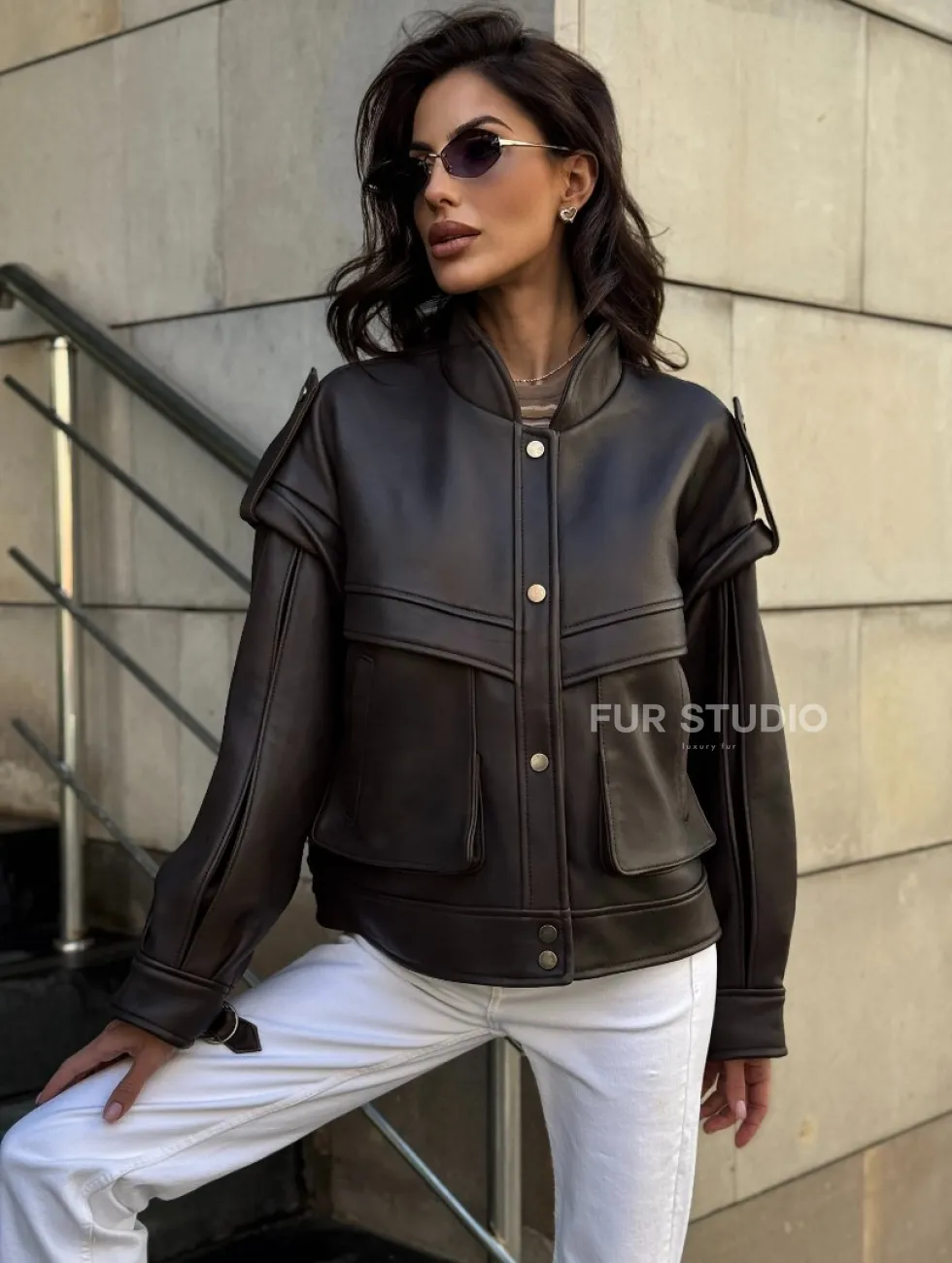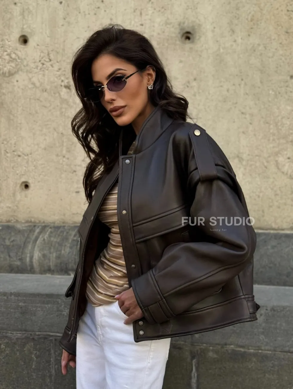 Кожаная коричневая куртка Retro Vintage доступна для покупки в нашем шоуруме Furs Studio в Чите, где также предоставляется удобная доставка во все города России.