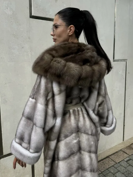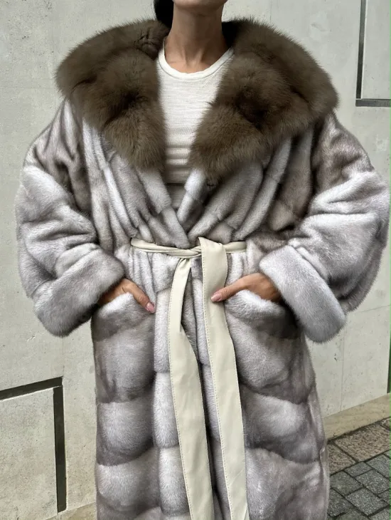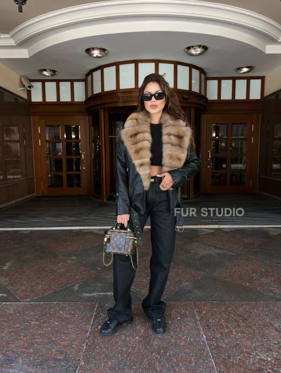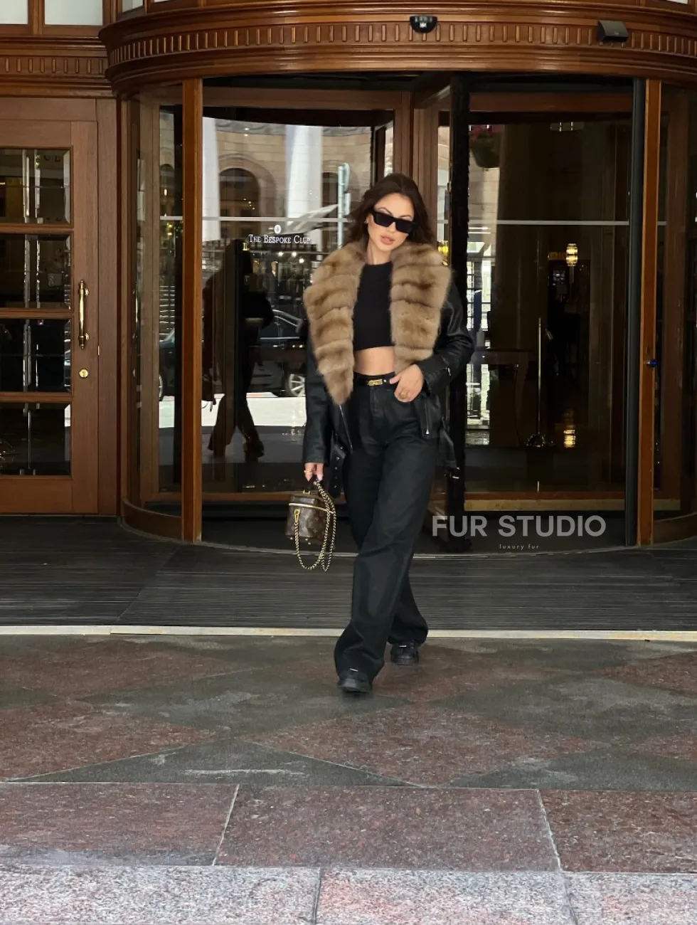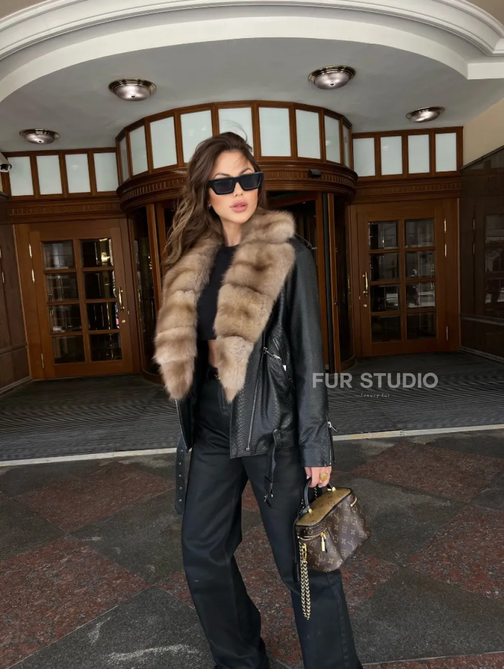 Кожаная куртка под рептилию с воротником из меха куницы – прекрасная модель для выхода в свет в прохладное время года. Нежная кожа приятна на ощупь. Оригинальный крой изделия подчеркивает женственность владелицы. Роскошный меховой воротник выгодно акцентирует внимание на грации шеи. Фермуары на рукавах можно расстегнуть, что удобно и не сковывает движения.