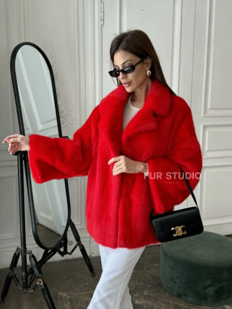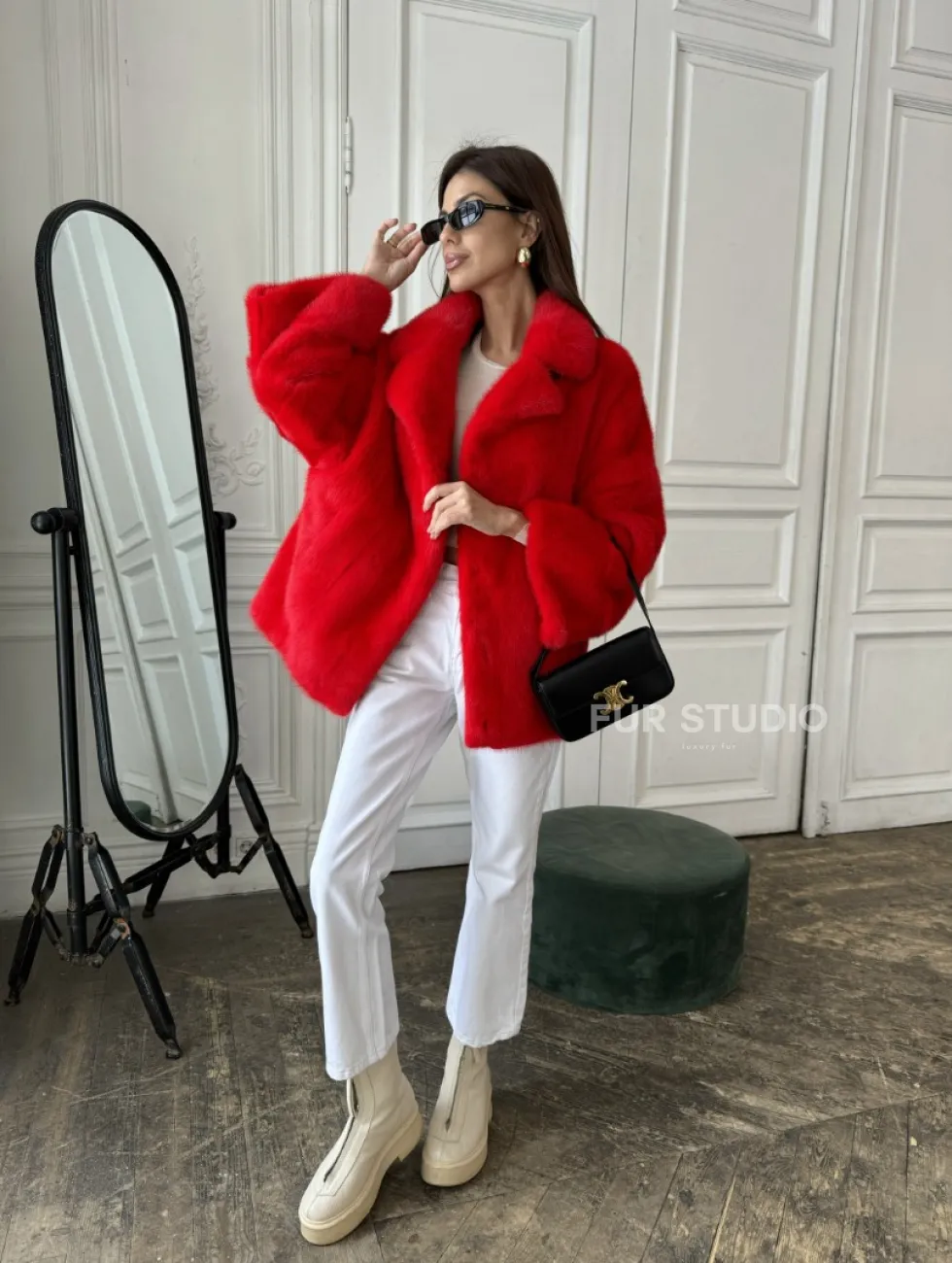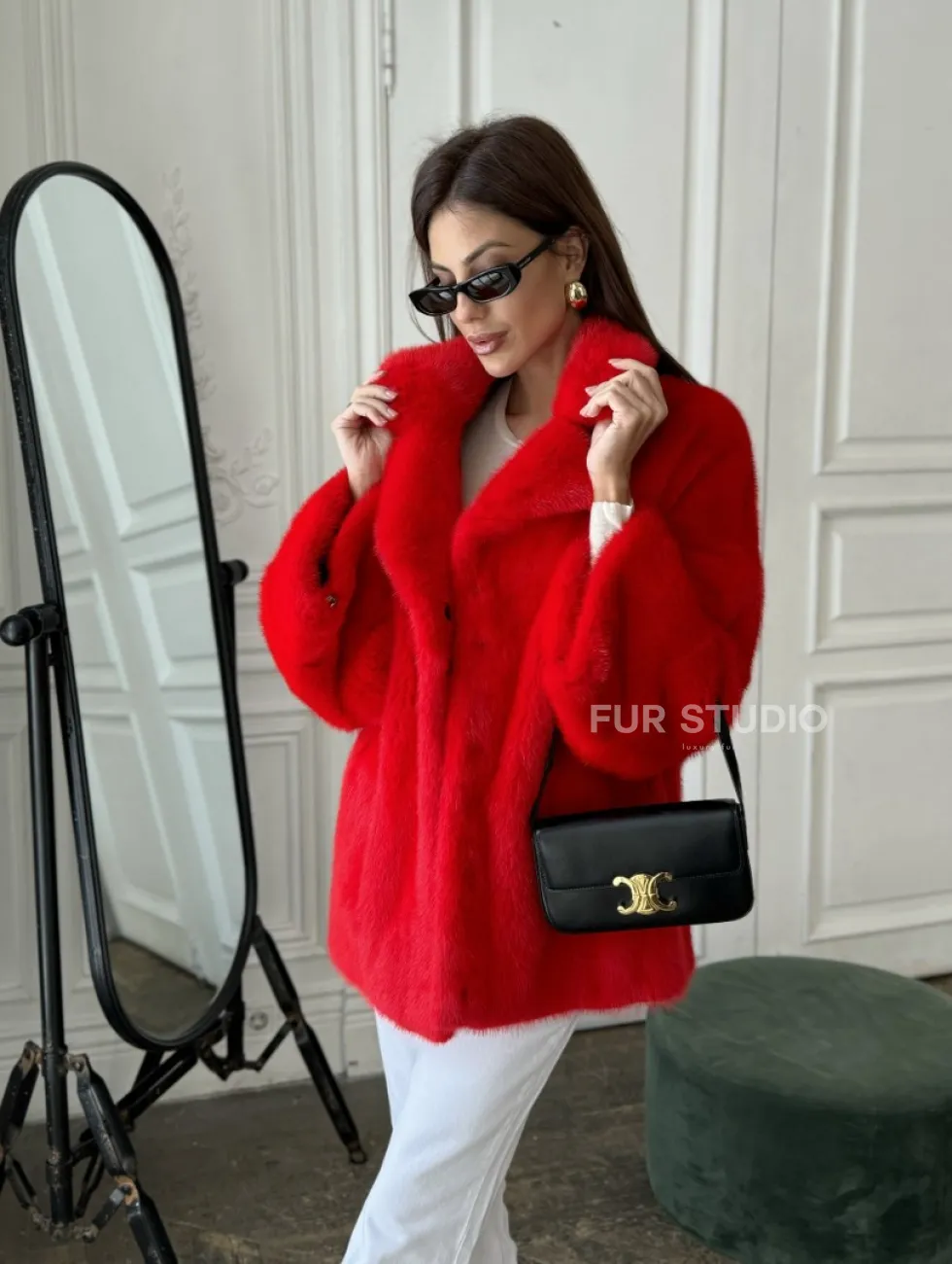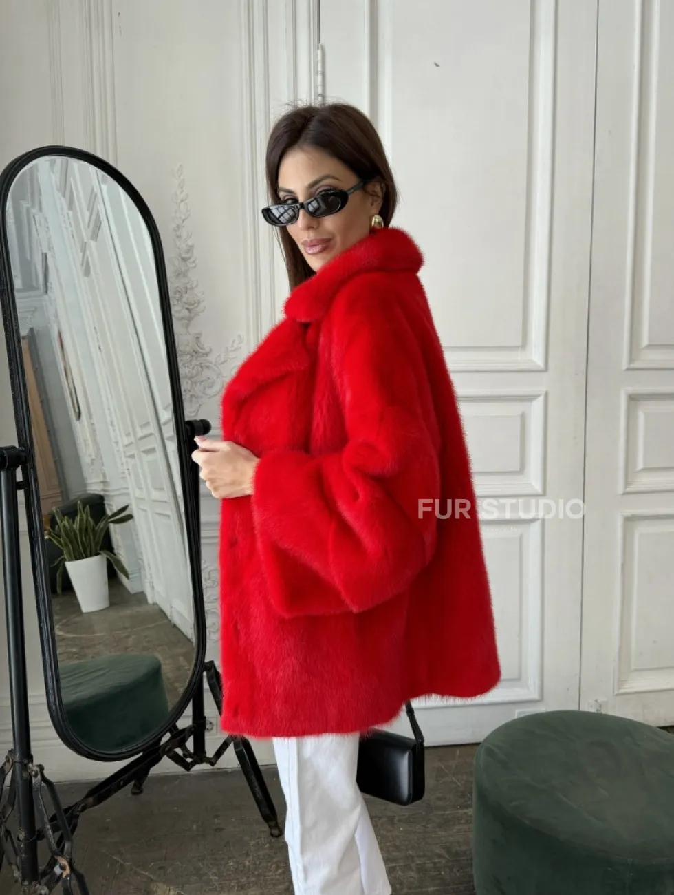 Красный норковый полушубок английский воротник роспуск доступна для покупки в нашем шоуруме Furs Studio в Чите. У нас так же есть доставка во все города России. Добавьте немного роскоши в свой гардероб с этой шубой, которая будет служить вам многие годы.