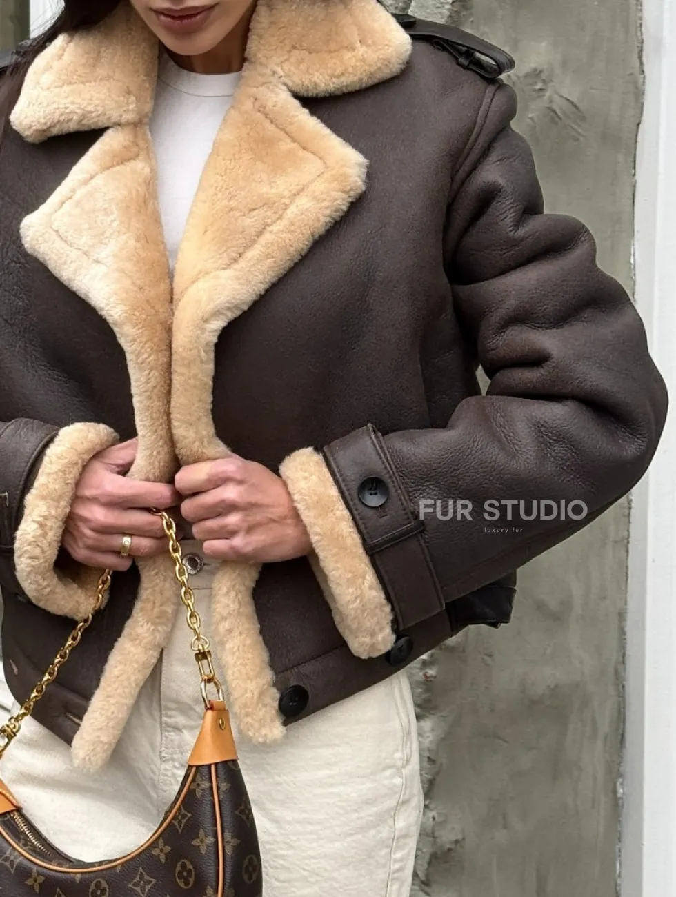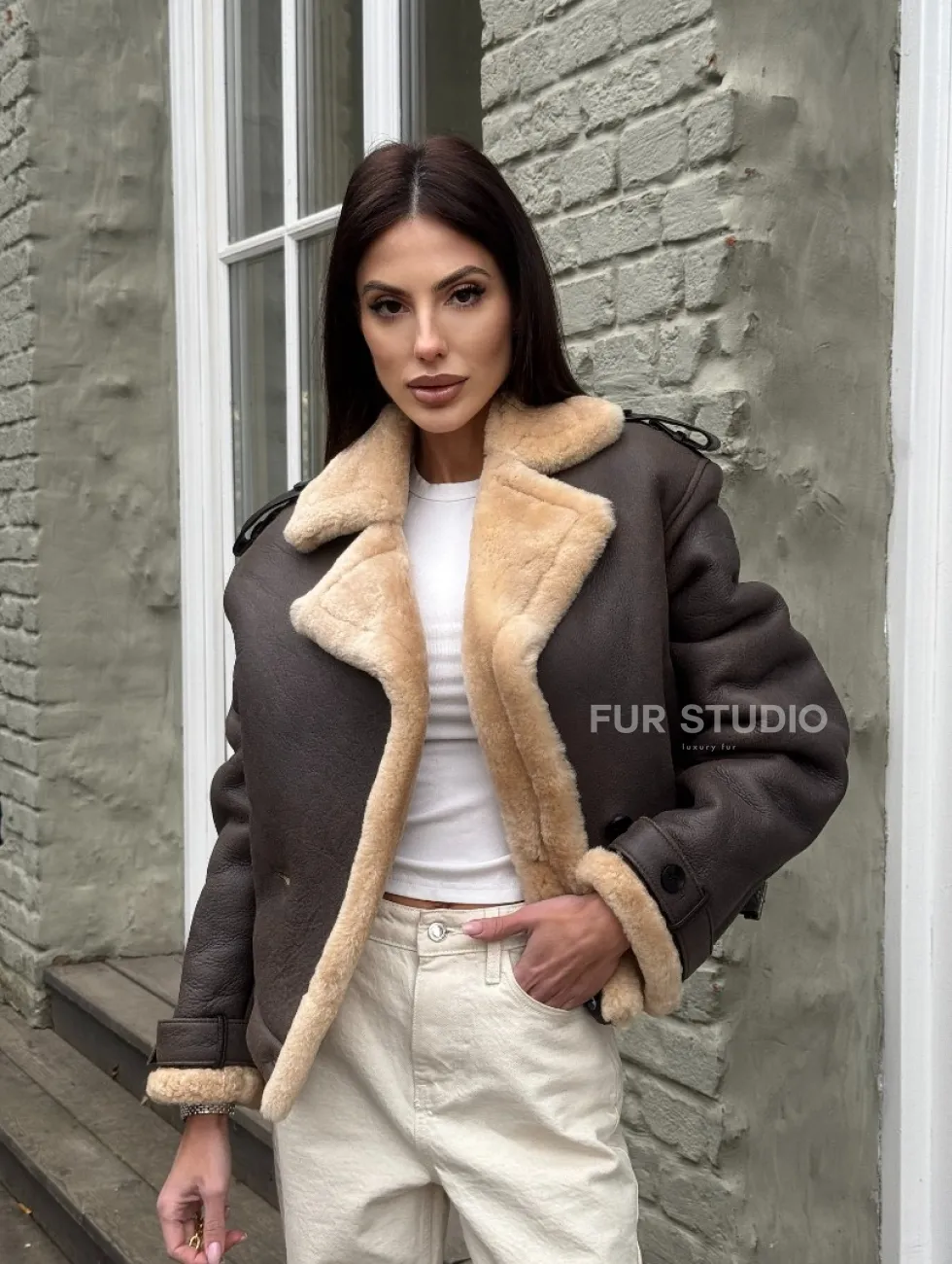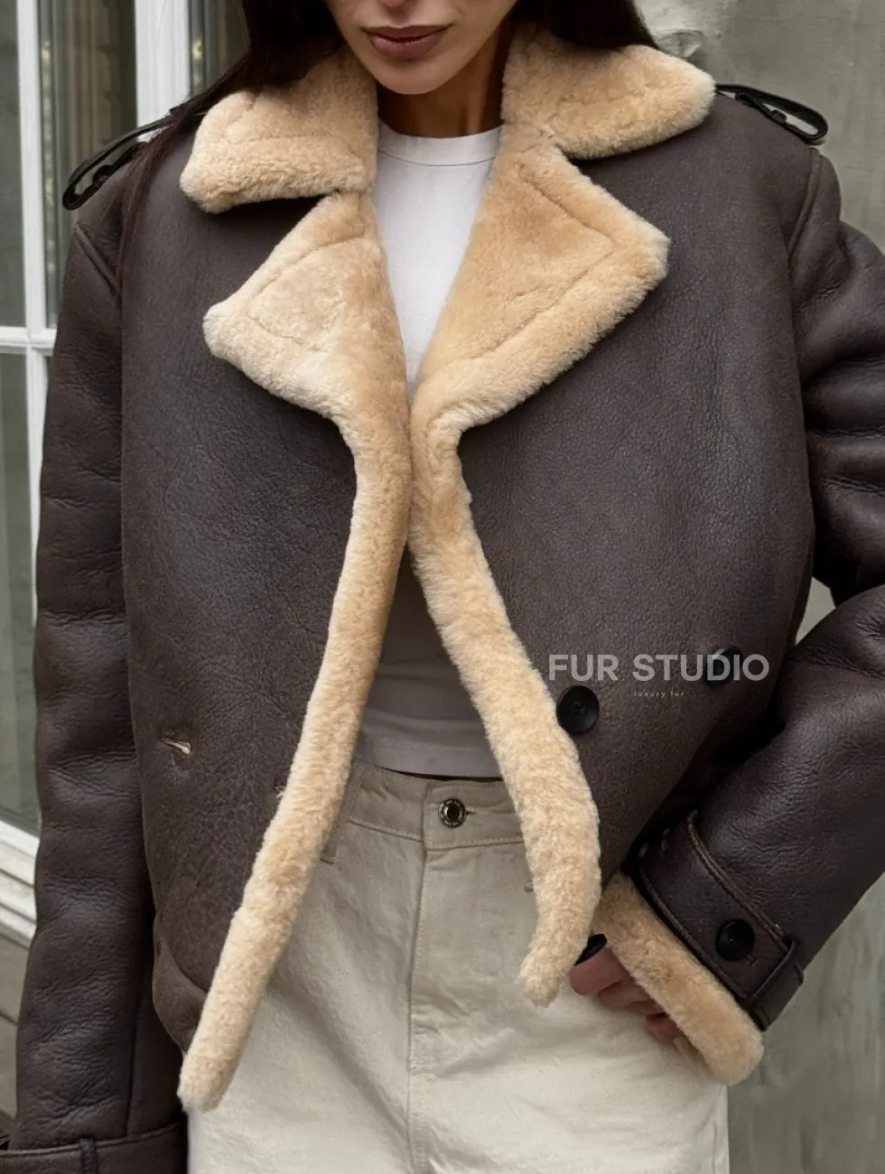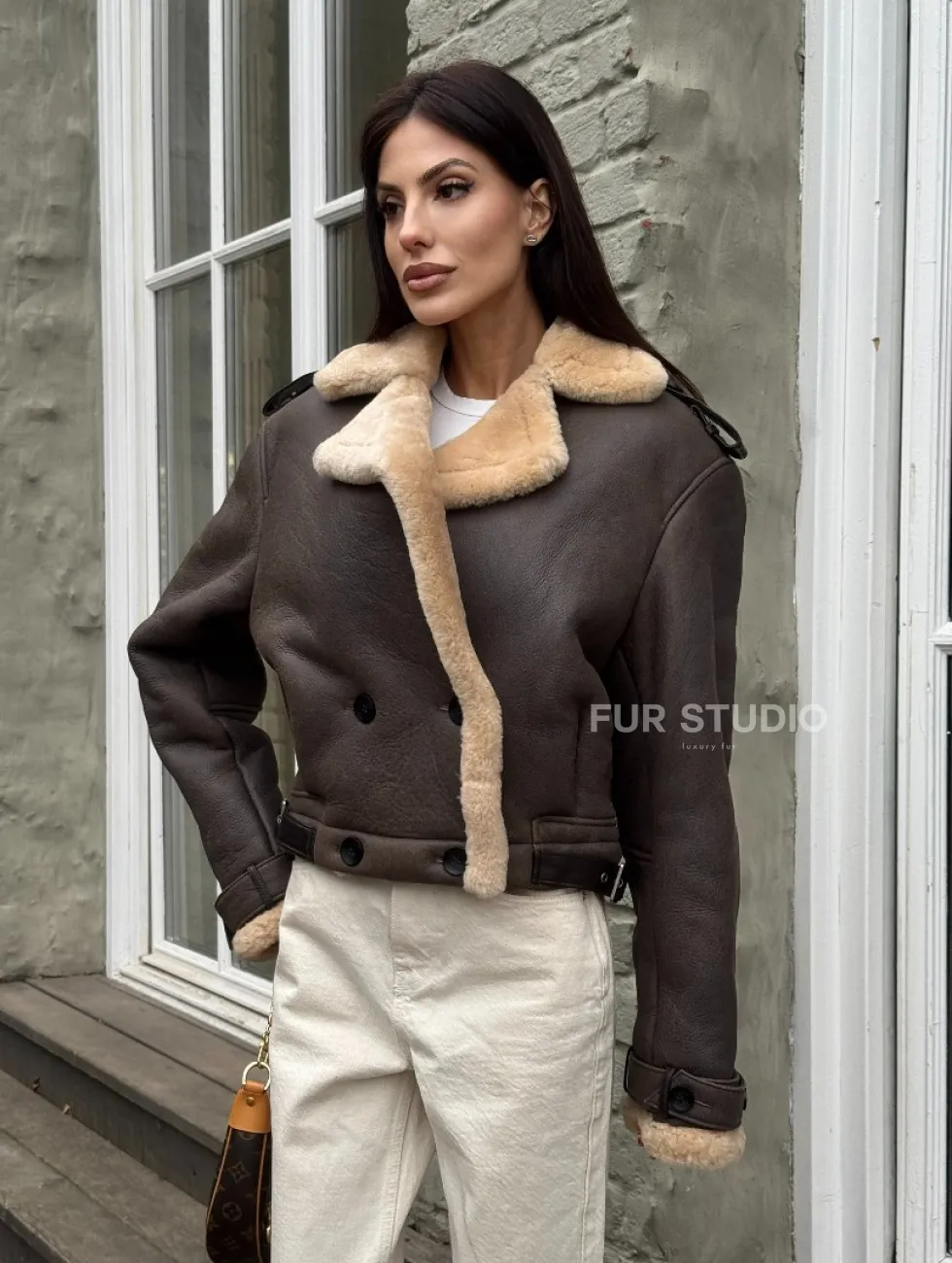 Кроп - дубленка двубортная Dark brown на пуговицах доступна для покупки в нашем шоуруме Furs Studio в Чите, а также предлагается удобная доставка во все города России. Обогатите свой гардероб этой дубленкой, которая прослужит вам многие годы, добавив немного роскоши в ваш повседневный образ.
