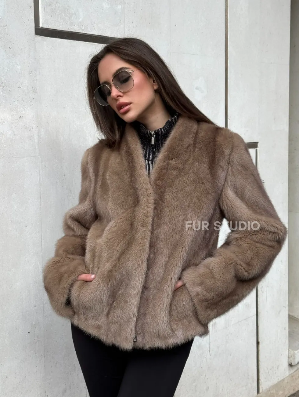 Кроп - жакет из норки Pastel с воротником V-образным 60 см доступна для покупки в нашем шоуруме Furs Studio в Чите. У нас так же есть доставка во все города России. Добавьте немного роскоши в свой гардероб с этой шубой, которая будет служить вам многие годы.