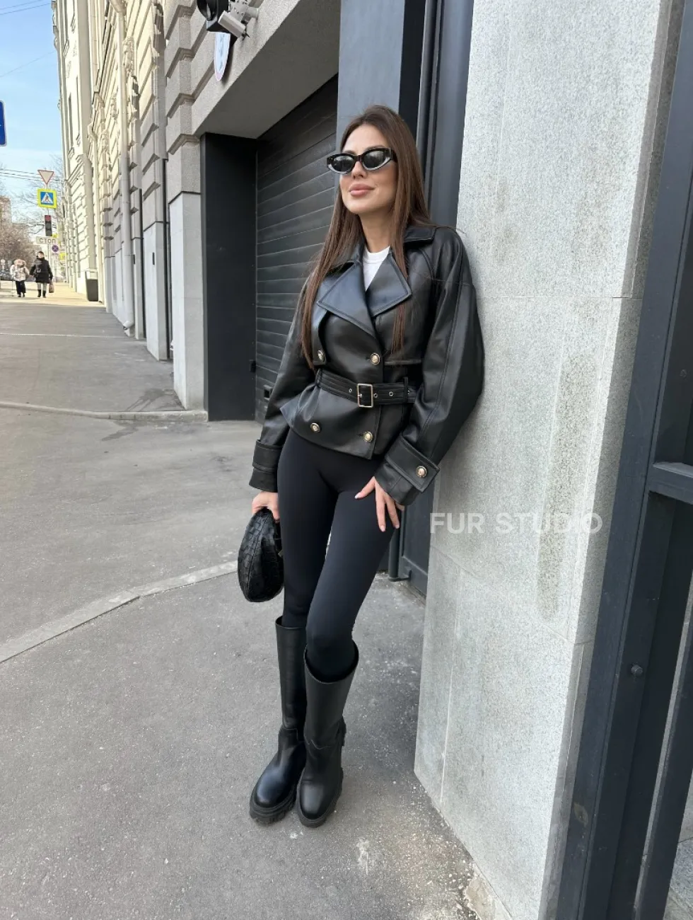 Куртка из кожи черного цвета доступна для покупки в нашем шоуруме Furs Studio в Чите, где также предоставляется удобная доставка во все города России.