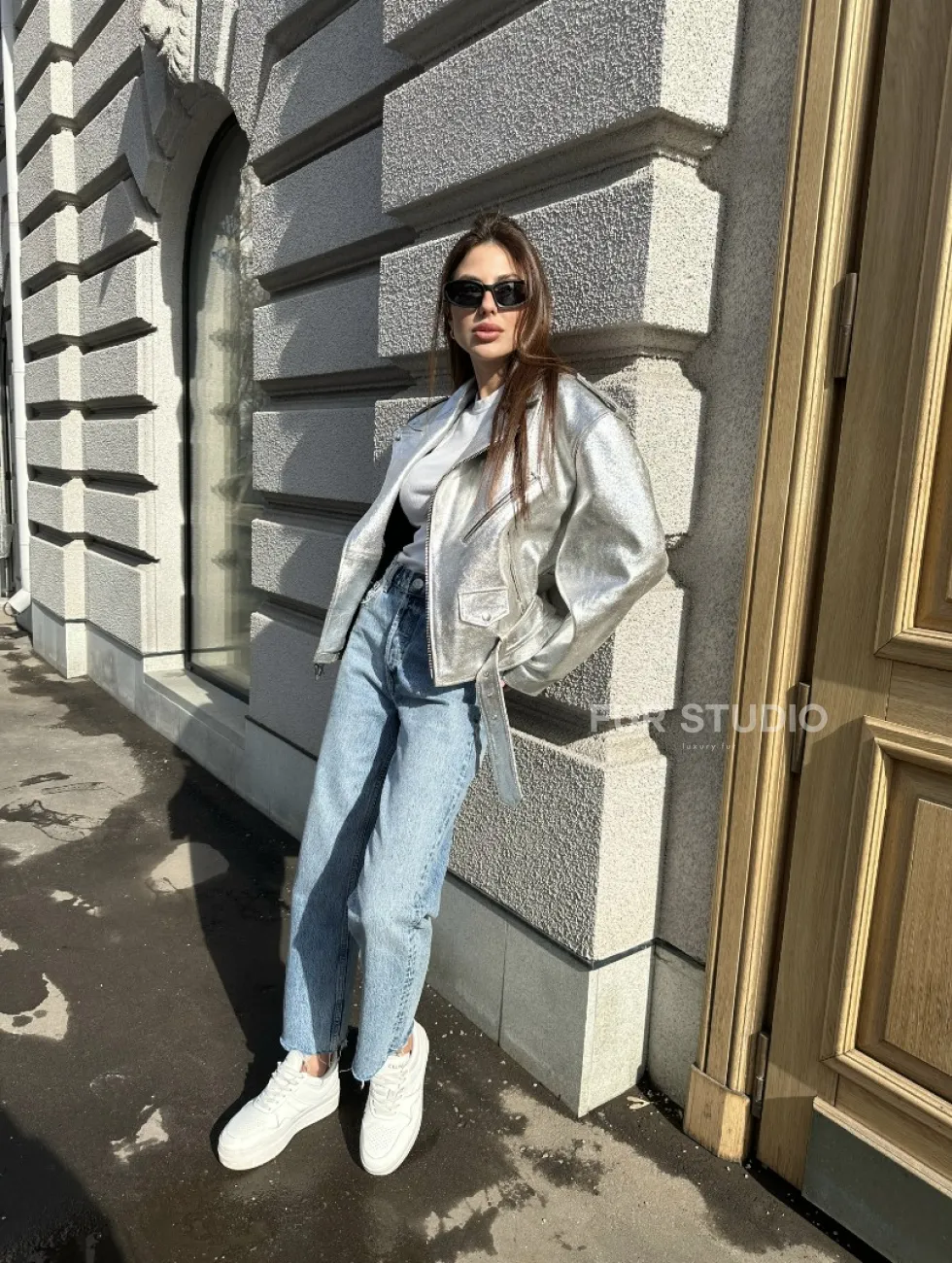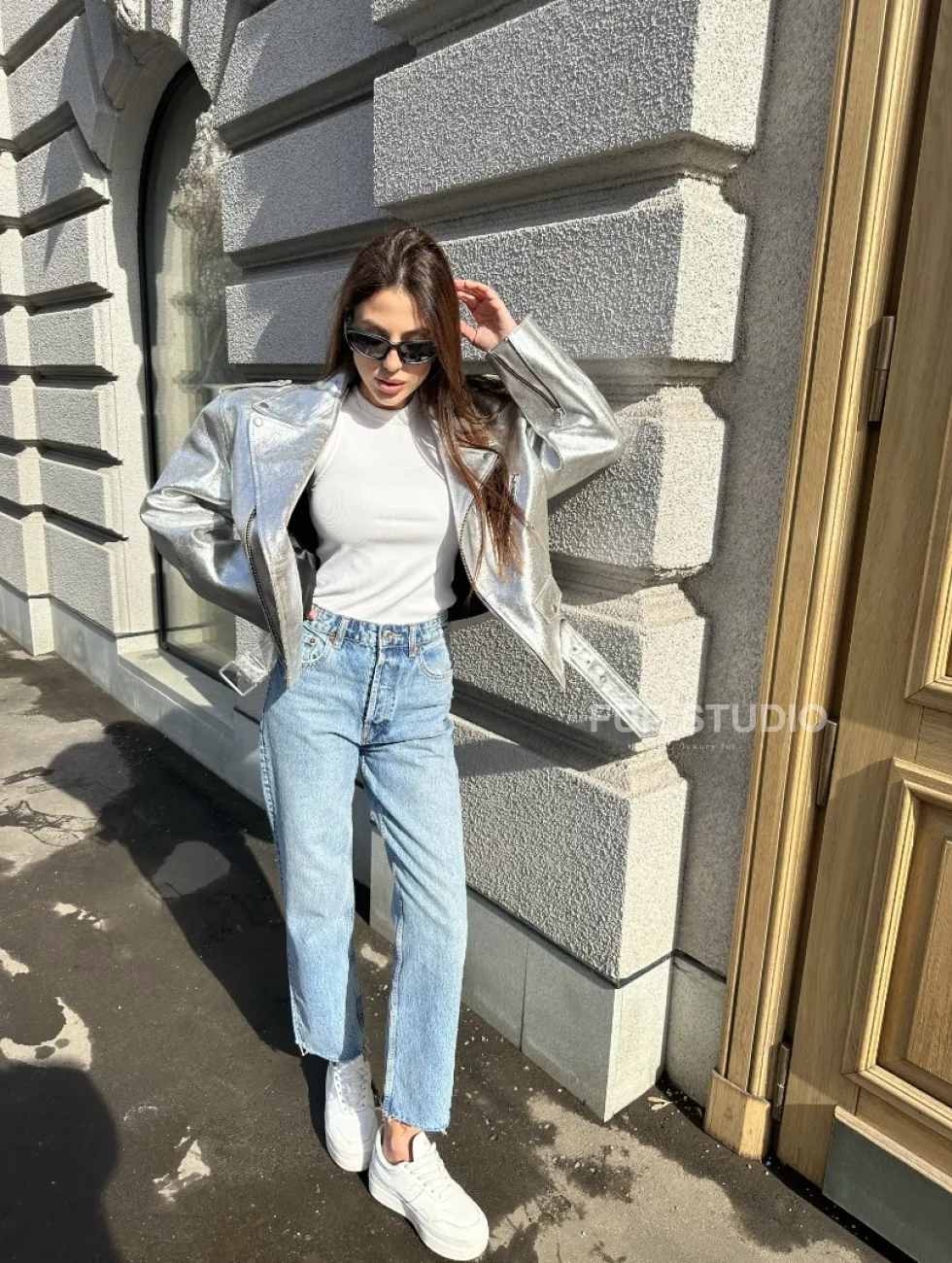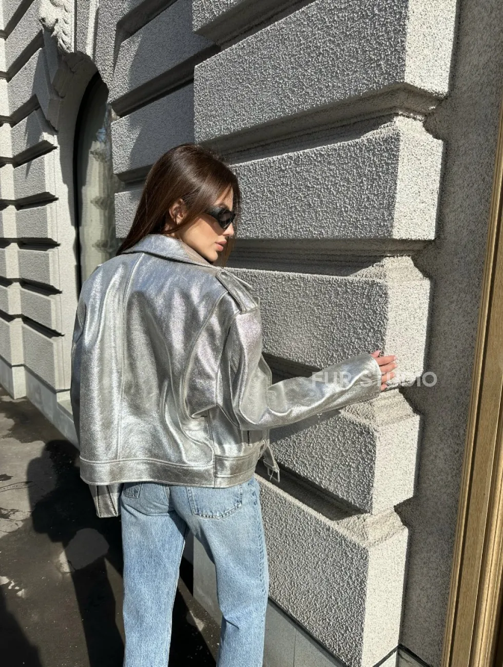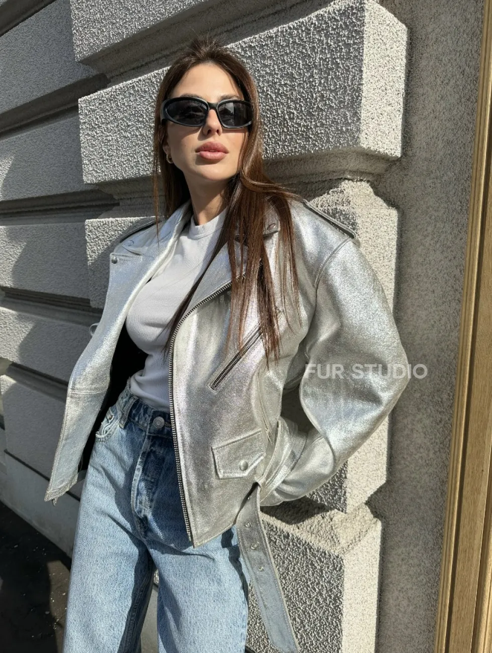 Куртка - косуха из натуральной кожи цвет серебристый доступна для покупки в нашем шоуруме Furs Studio в Чите, где также предоставляется удобная доставка во все города России.
