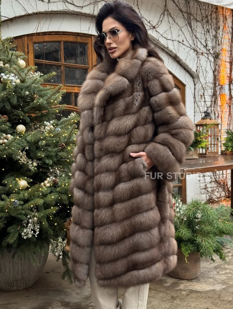 Мех данной шубы лесная куница, цвет натуральный. Предлагается в размерах от 42 до 50. Длина модели 105-110 см, что выгодно подчеркивает фигуру девушек. Эта модель идеально подойдет для девушек и женщин, предпочитающих роскошные натуральные меха.