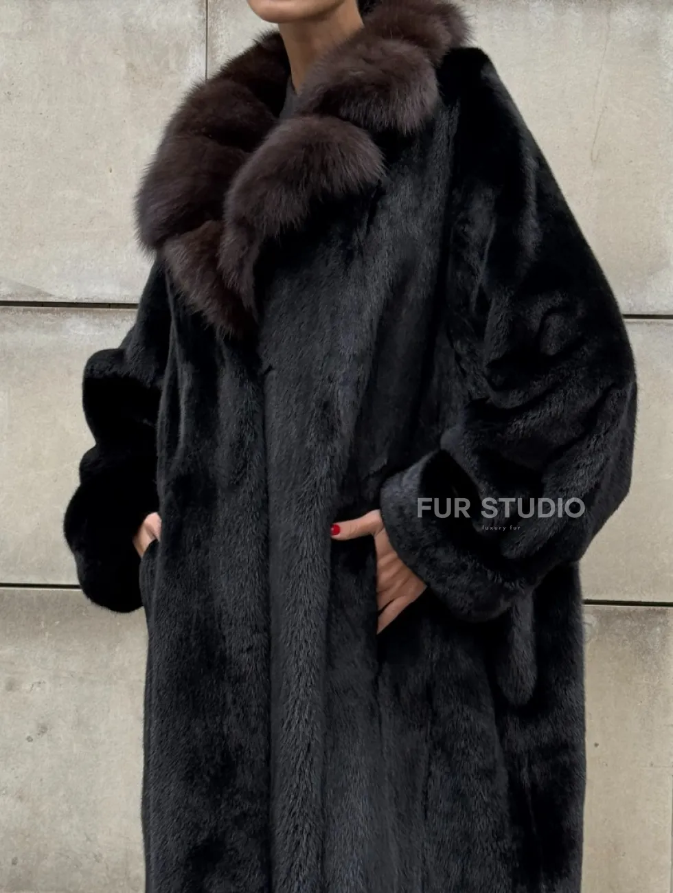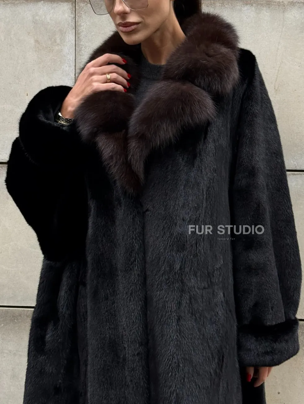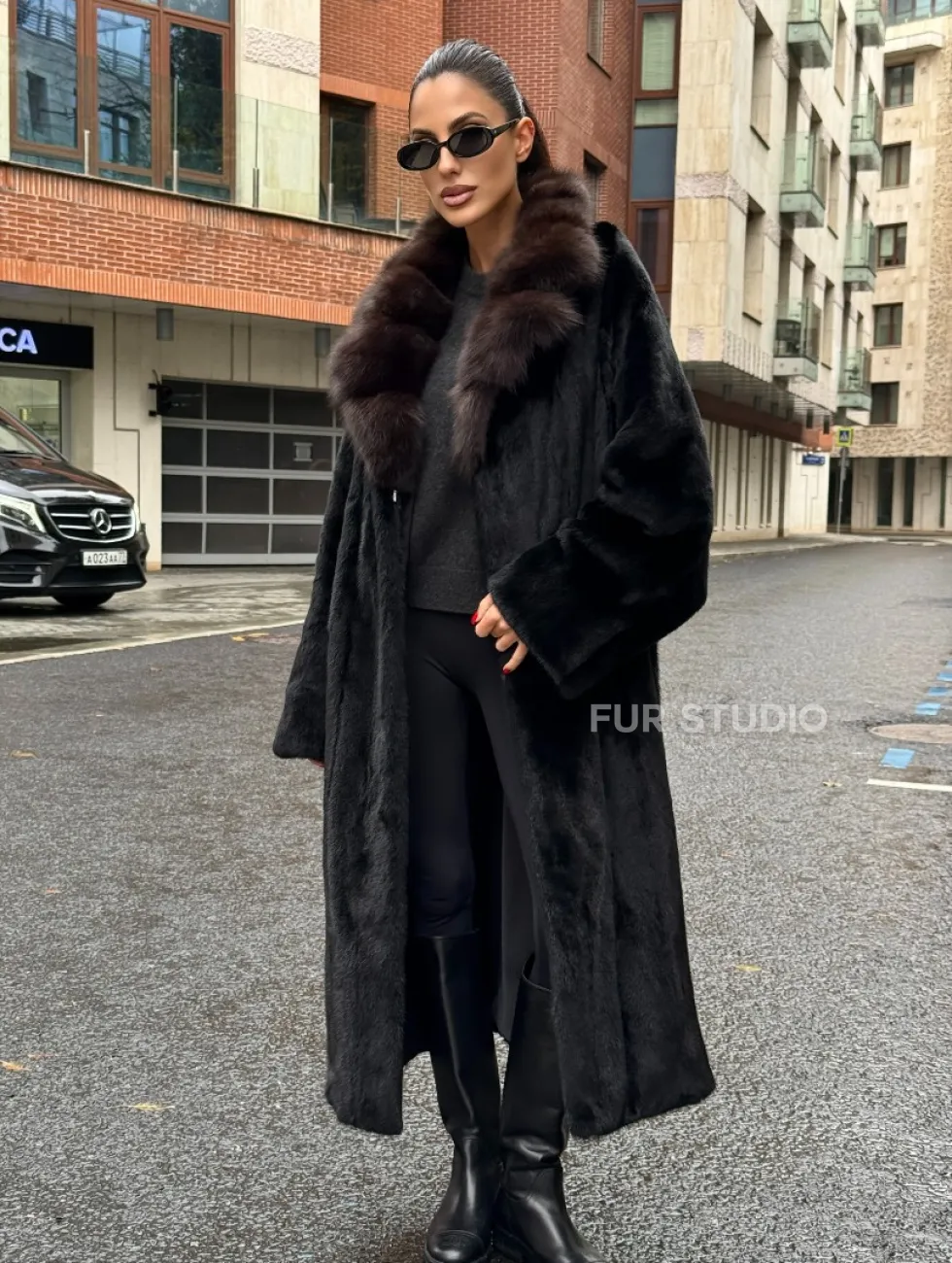 Манто New Elegance из норки Saga Furs с воротником из меха соболя доступна для покупки в нашем шоуруме Furs Studio в Чите. У нас так же есть доставка во все города России. Добавьте немного роскоши в свой гардероб с этой шубой, которая будет служить вам многие годы.