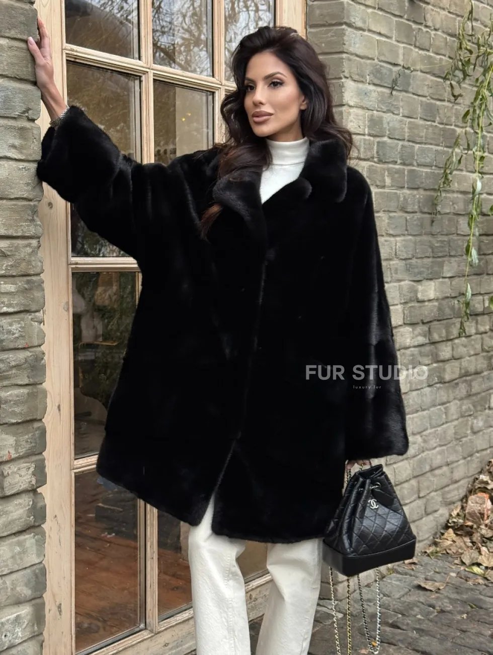 Меховое норковое полупальто из норки Blackglama с английским воротником доступна для покупки в нашем шоуруме Furs Studio в Чите. У нас так же есть доставка во все города России. Добавьте немного роскоши в свой гардероб с этой шубой, которая будет служить вам многие годы.