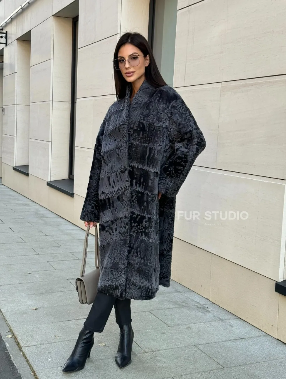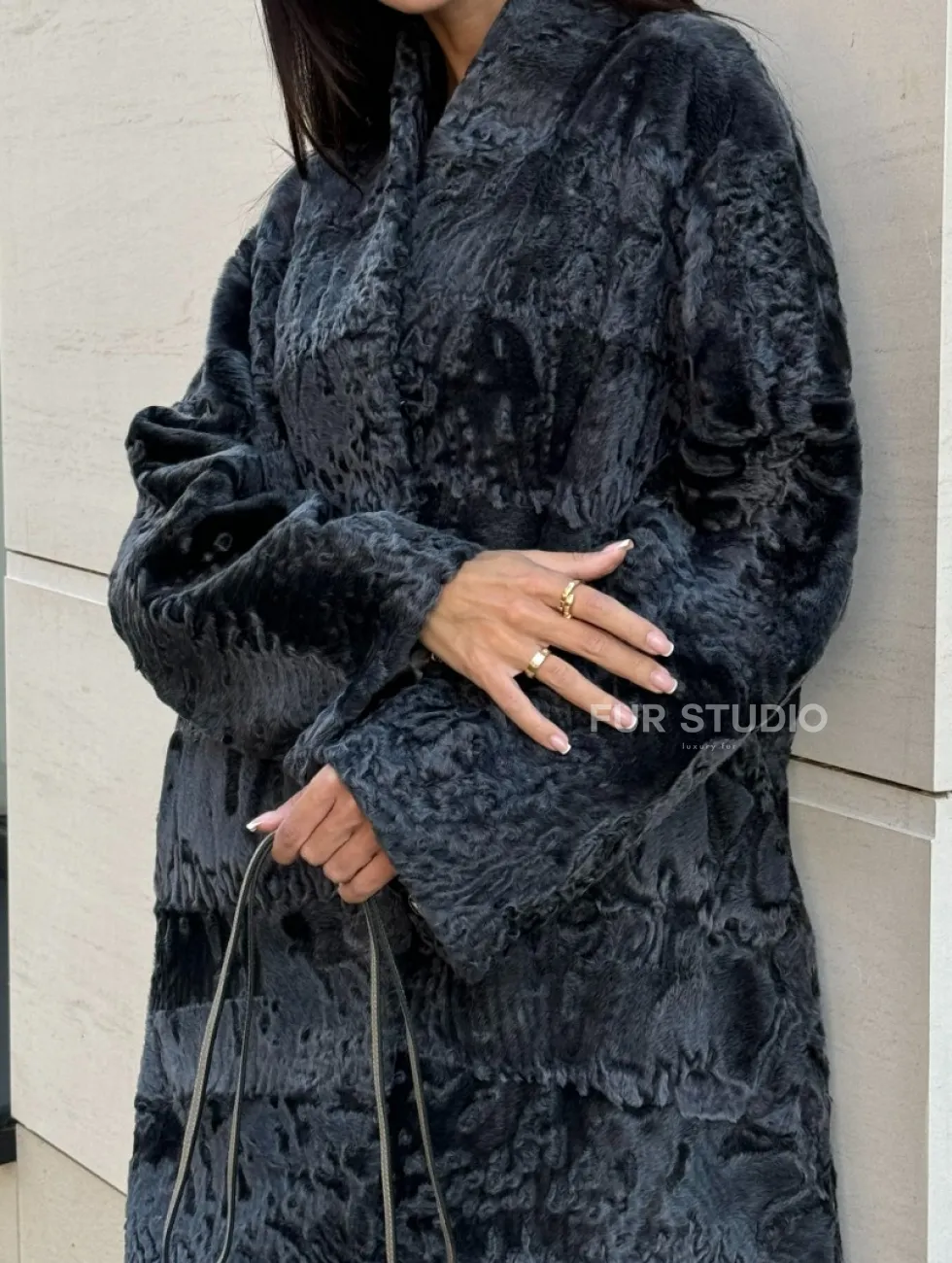Меховое пальто из каракуля Graphite V-образный воротник доступна для покупки в нашем шоуруме Furs Studio в Чите. У нас так же есть доставка во все города России. Добавьте немного роскоши в свой гардероб с этой шубой, которая будет служить вам многие годы.