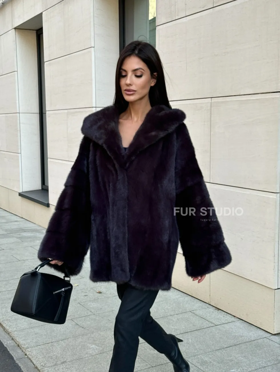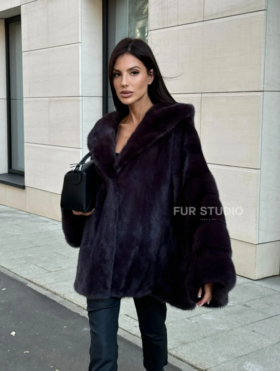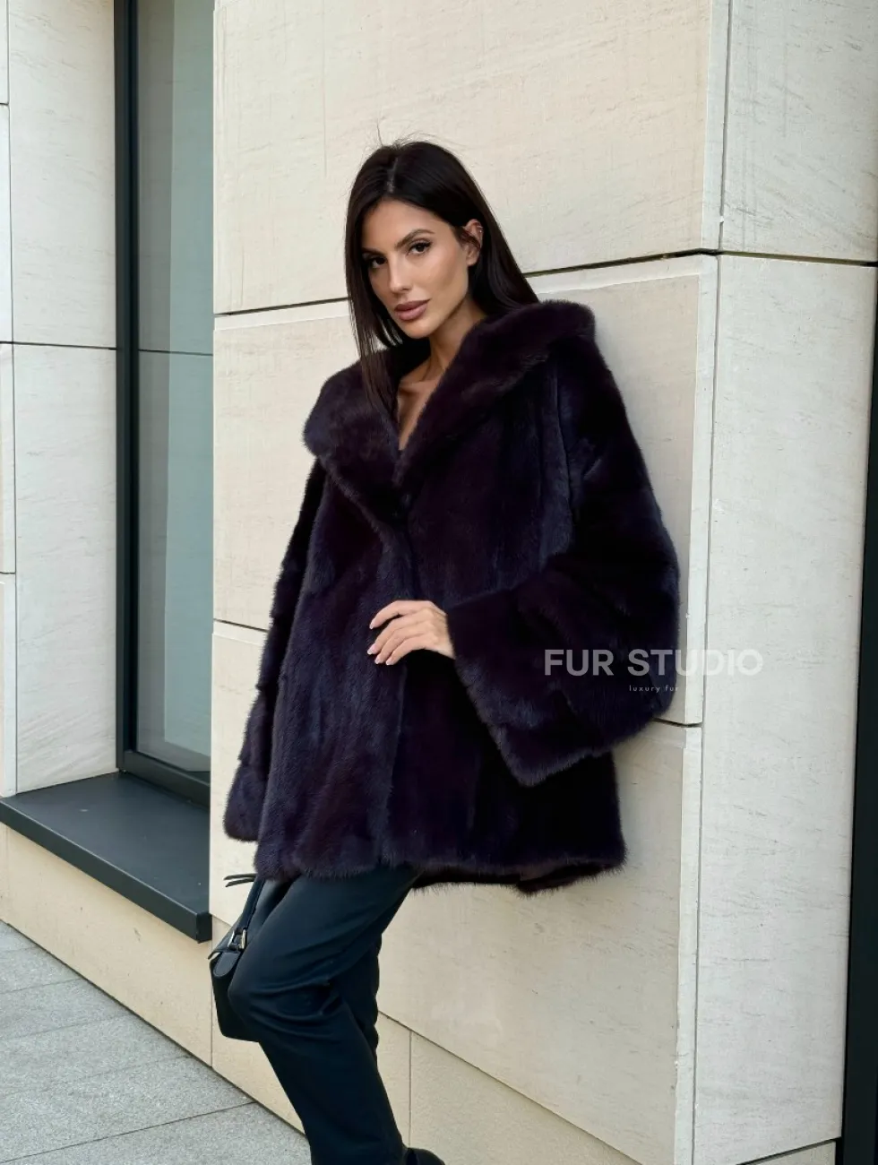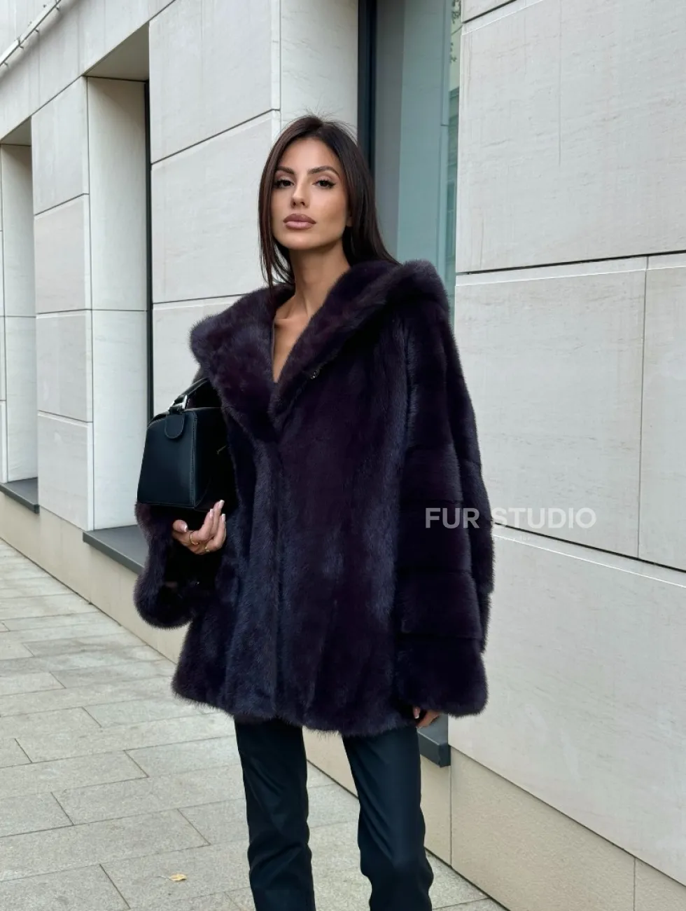 Меховое полупальто из аукционной норки с капюшоном Dark violet доступна для покупки в нашем шоуруме Furs Studio в Чите. У нас так же есть доставка во все города России. Добавьте немного роскоши в свой гардероб с этой шубой, которая будет служить вам многие годы.