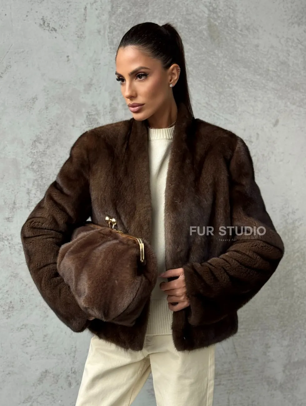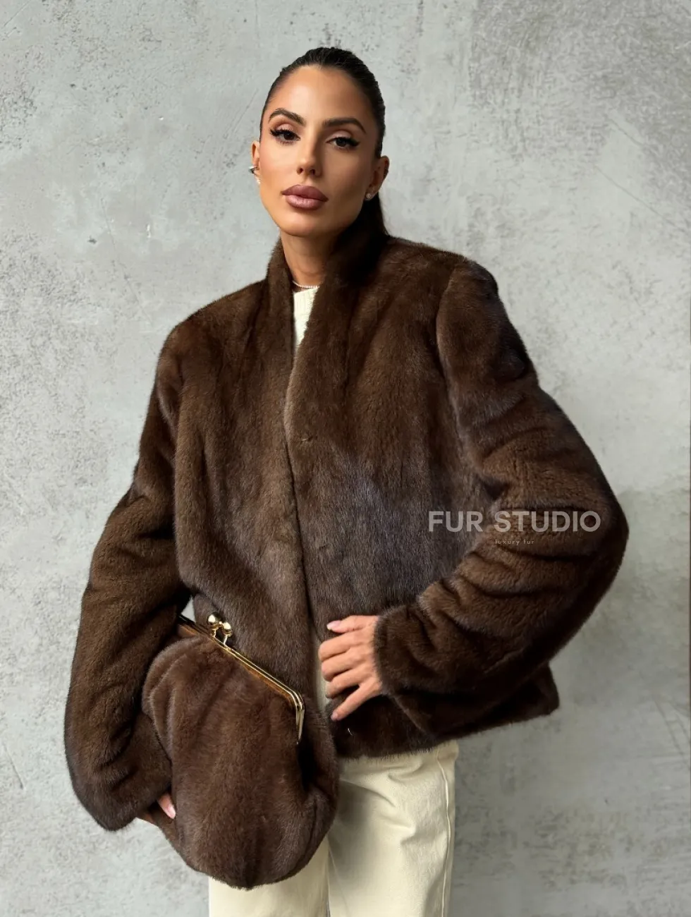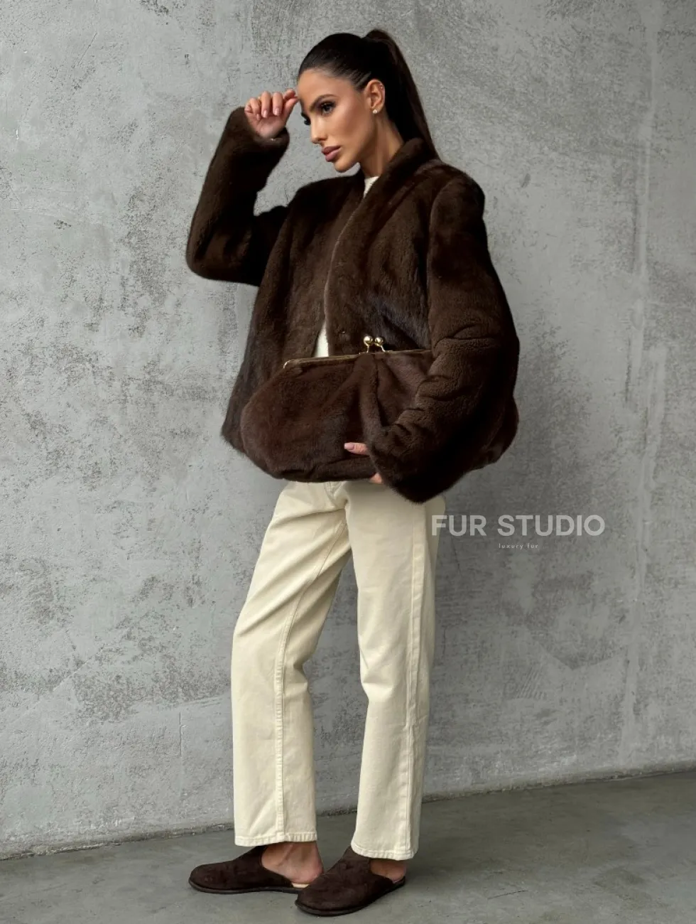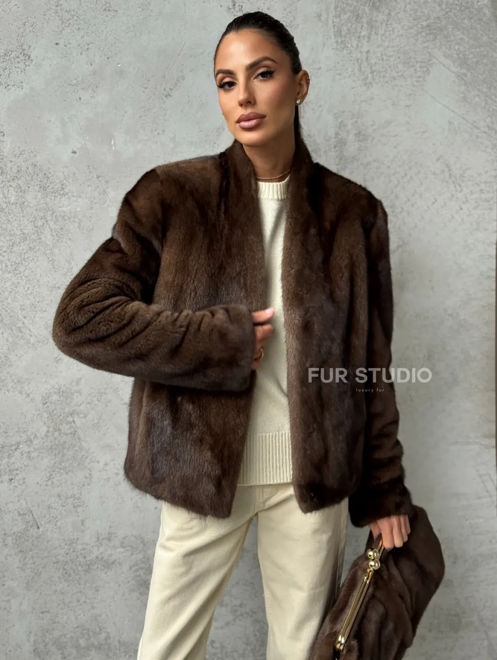 Меховой кроп - жакет из норки цвета соболь с V-образным воротником доступна для покупки в нашем шоуруме Furs Studio в Чите. У нас так же есть доставка во все города России. Добавьте немного роскоши в свой гардероб с этой шубой, которая будет служить вам многие годы.