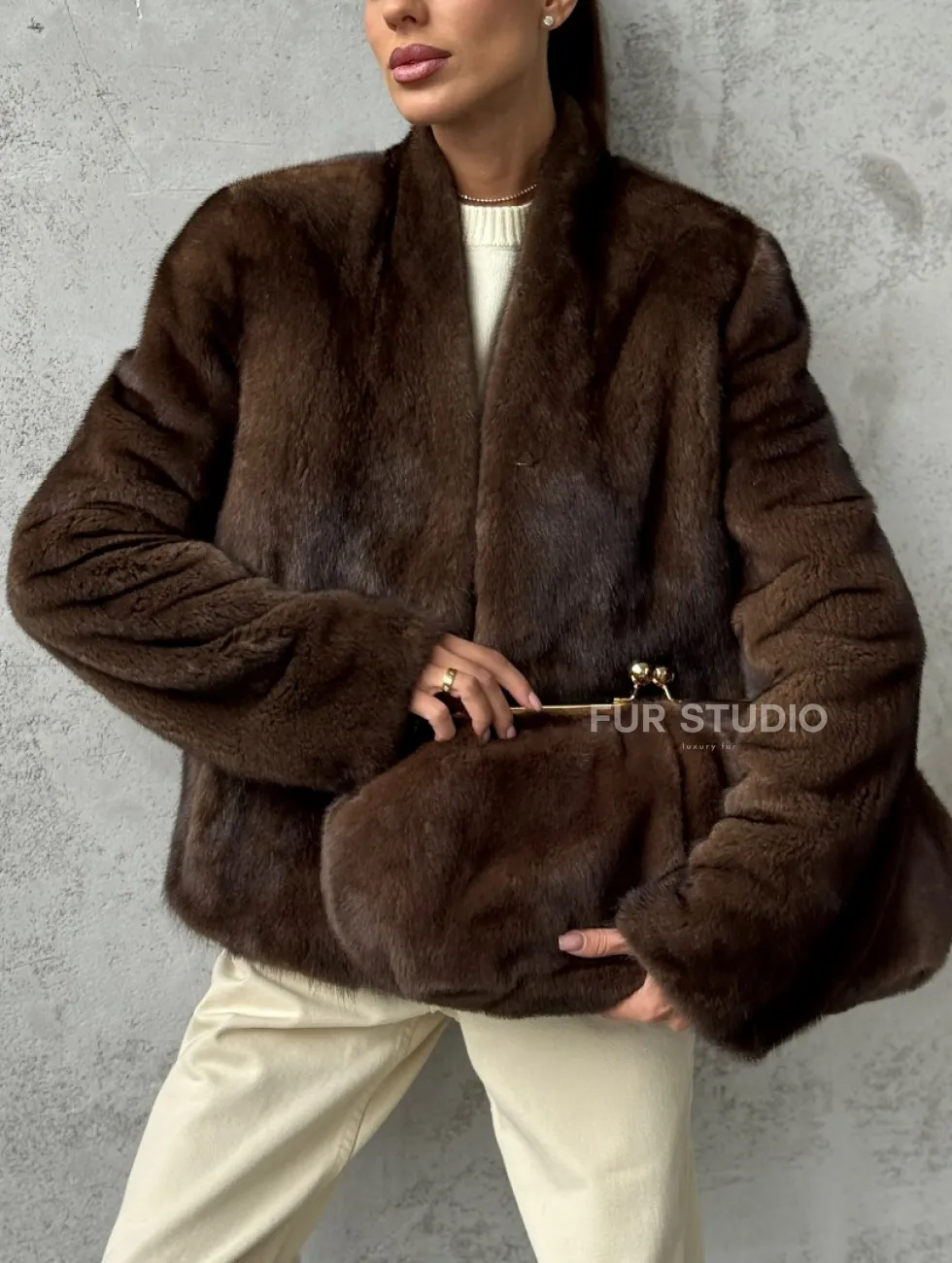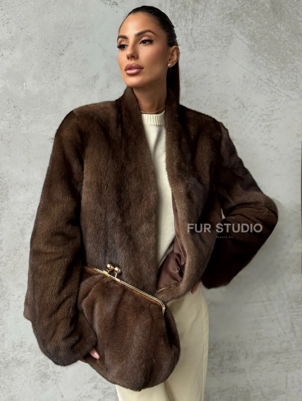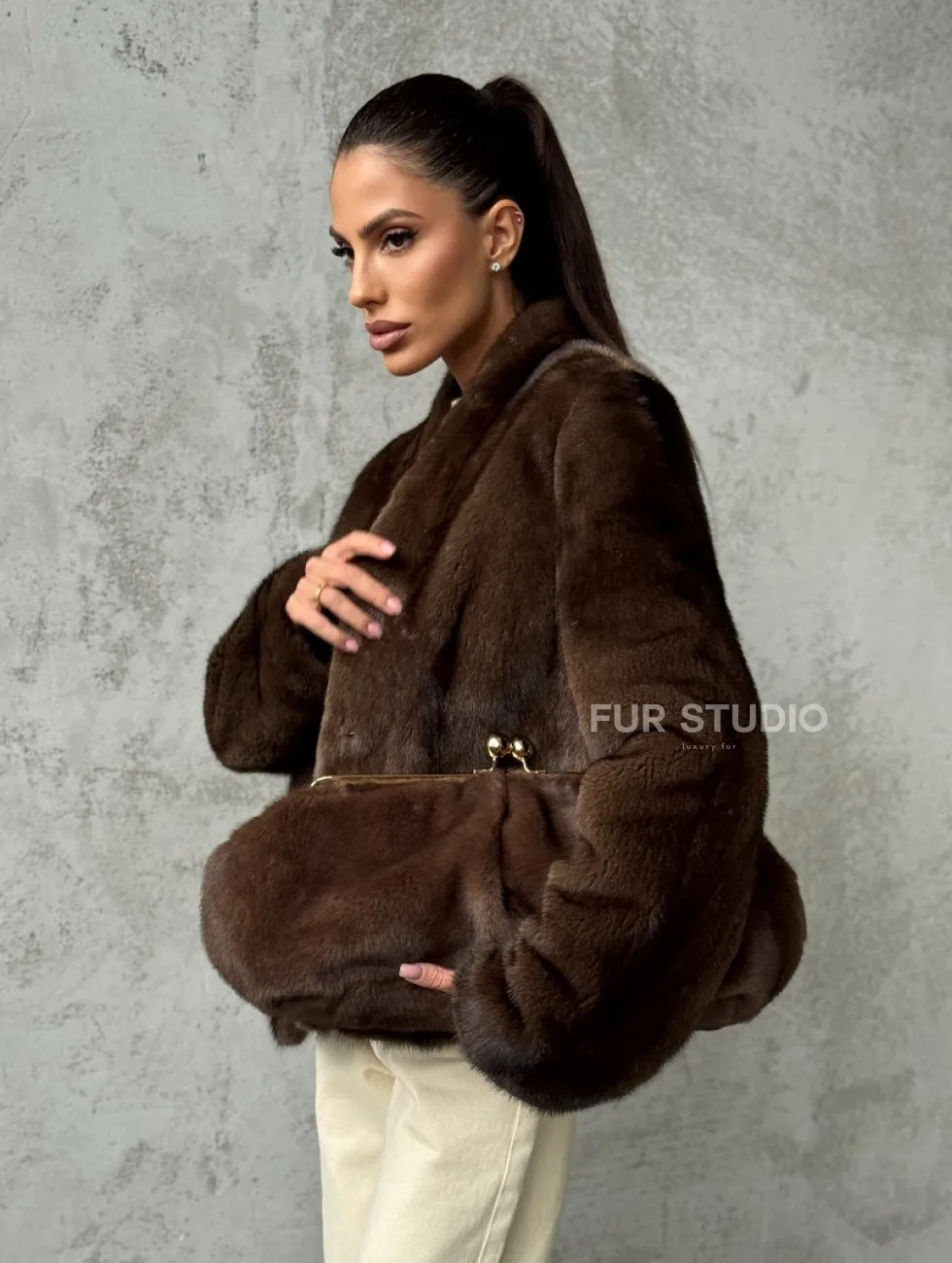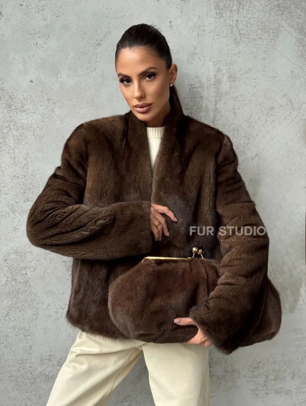 Меховой кроп - жакет из норки цвета соболь с V-образным воротником доступна для покупки в нашем шоуруме Furs Studio в Чите. У нас так же есть доставка во все города России. Добавьте немного роскоши в свой гардероб с этой шубой, которая будет служить вам многие годы.