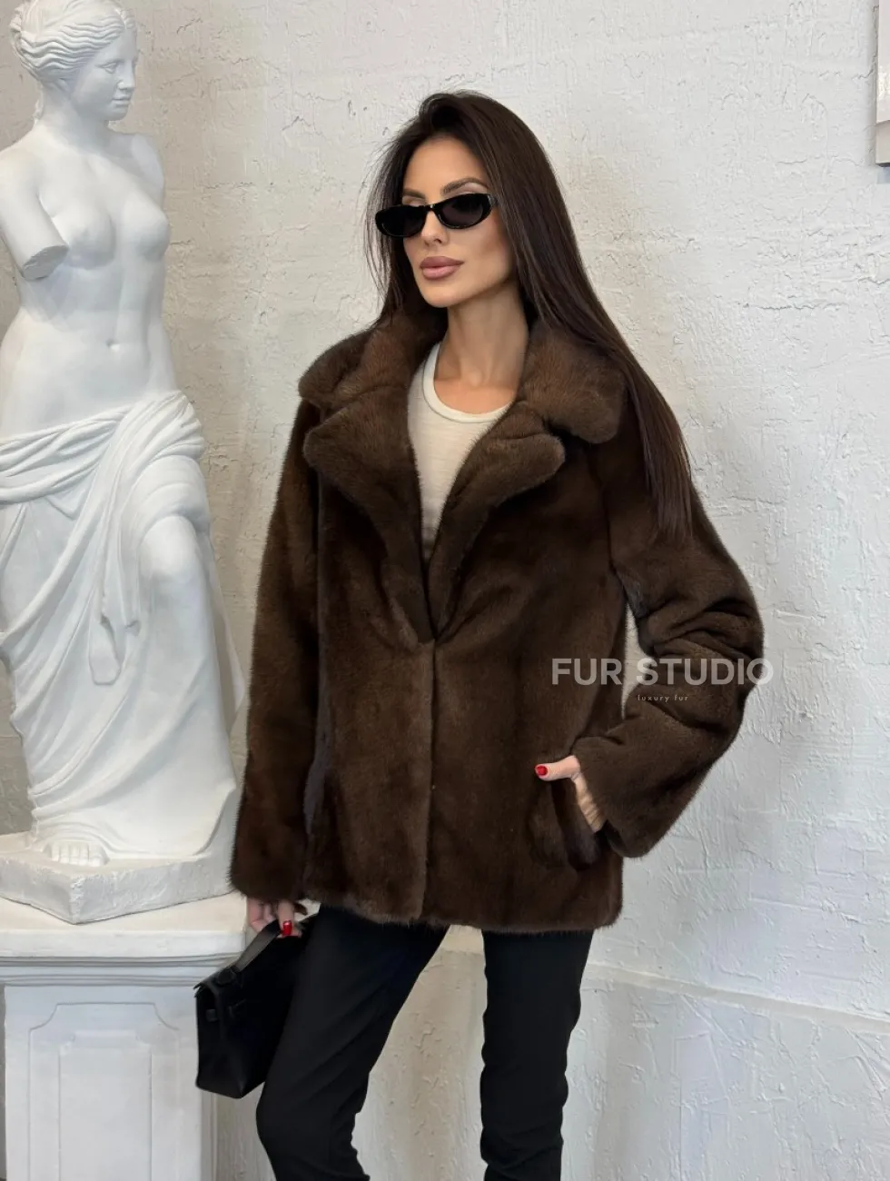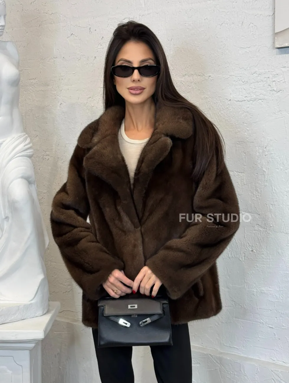 Меховой жакет из плюшевой норки Velvet английский воротник доступна для покупки в нашем шоуруме Furs Studio в Чите. У нас так же есть доставка во все города России. Добавьте немного роскоши в свой гардероб с этой шубой, которая будет служить вам многие годы.