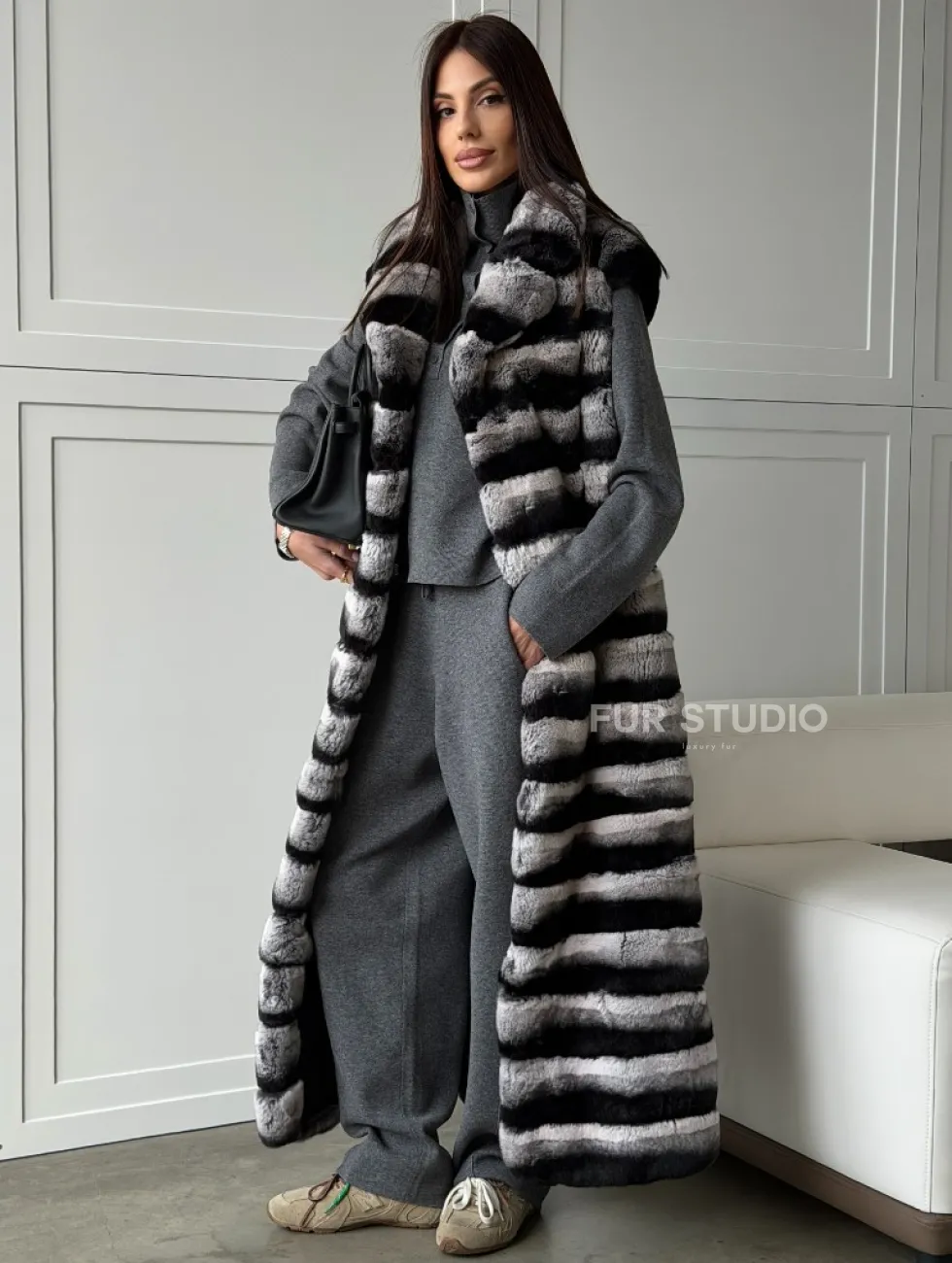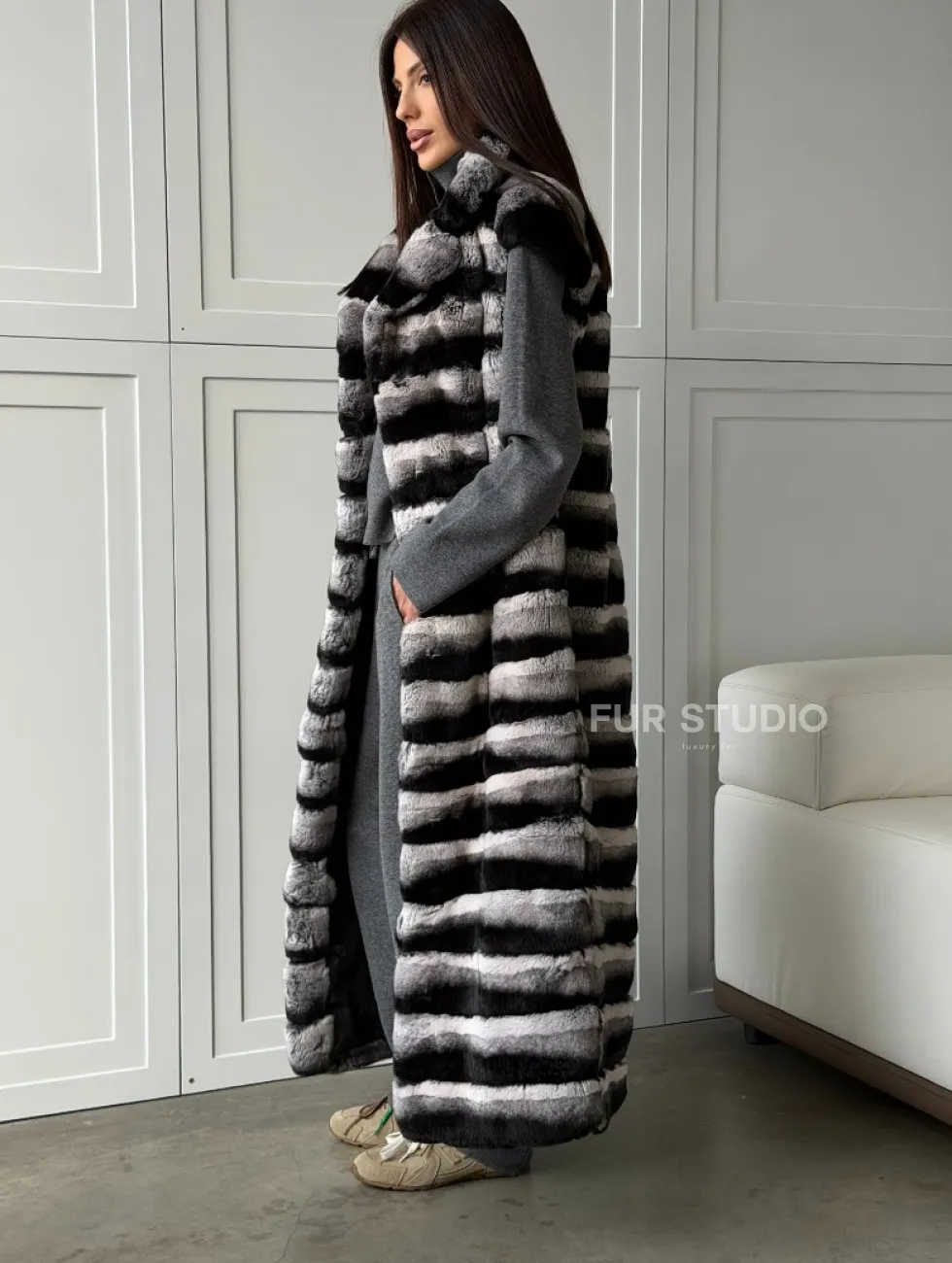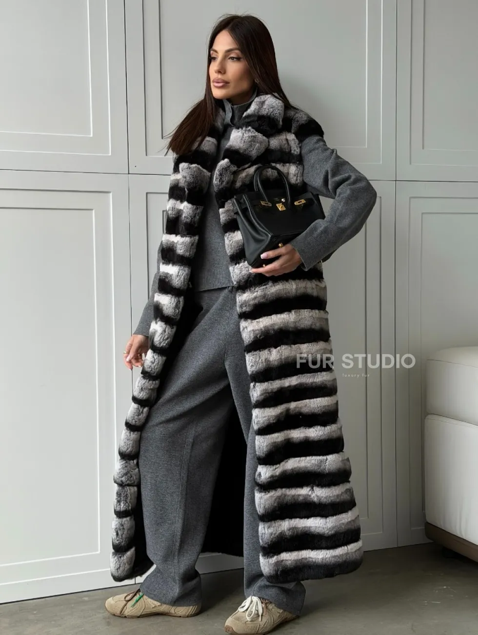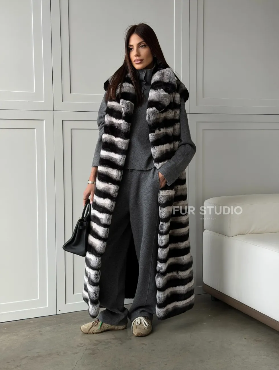 Жилет из меха орилага – отличный вариант для девушек, у кого ограничен бюджет. Изделие никогда не выйдет из моды. Удлиненный жилет зрительно увеличивает рост владелицы. Оригинальная расцветка подчеркнет роскошный оттенок волос и глаз хозяйки. Прямой крой сроет недостатки фигуры. Роскошный воротник позаботится о комфорте шеи и сделает акцент на ее грациозности.