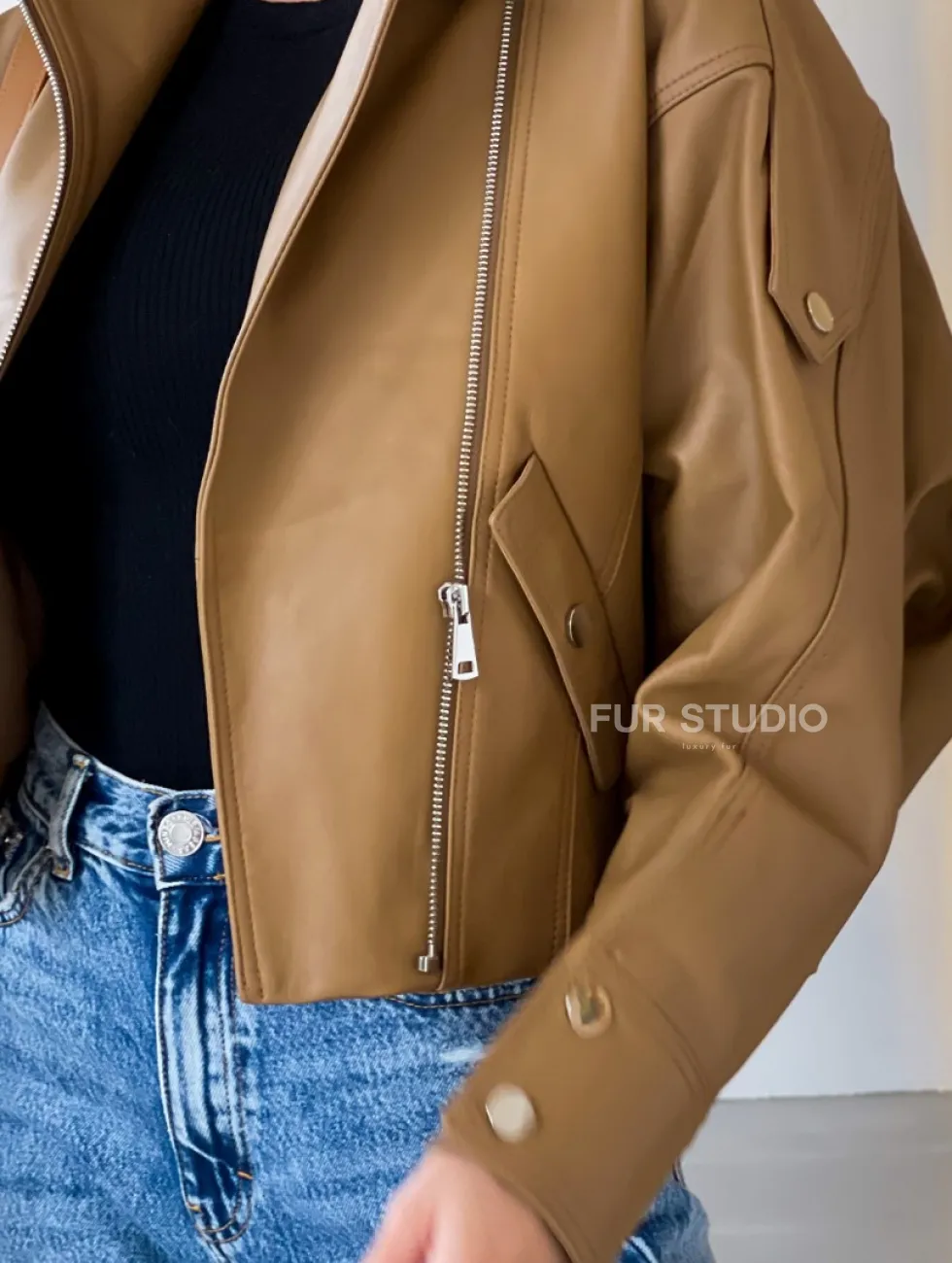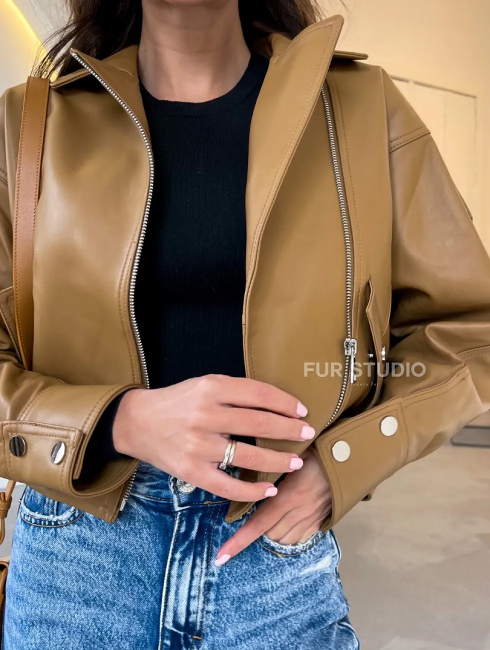 Восхититесь элегантностью и несравненным комфортом с нашей эксклюзивной коллекцией кожаных изделий. Изготовленная из первоклассной натуральной кожи, Модная короткая женская курточка в цветет кэмел не только согреет вас в прохладные дни, но и подчеркнет ваш изысканный вкус. Уникальный дизайн и высокое качество делают наши представленные образцы идеальным выбором для утончённых образов.