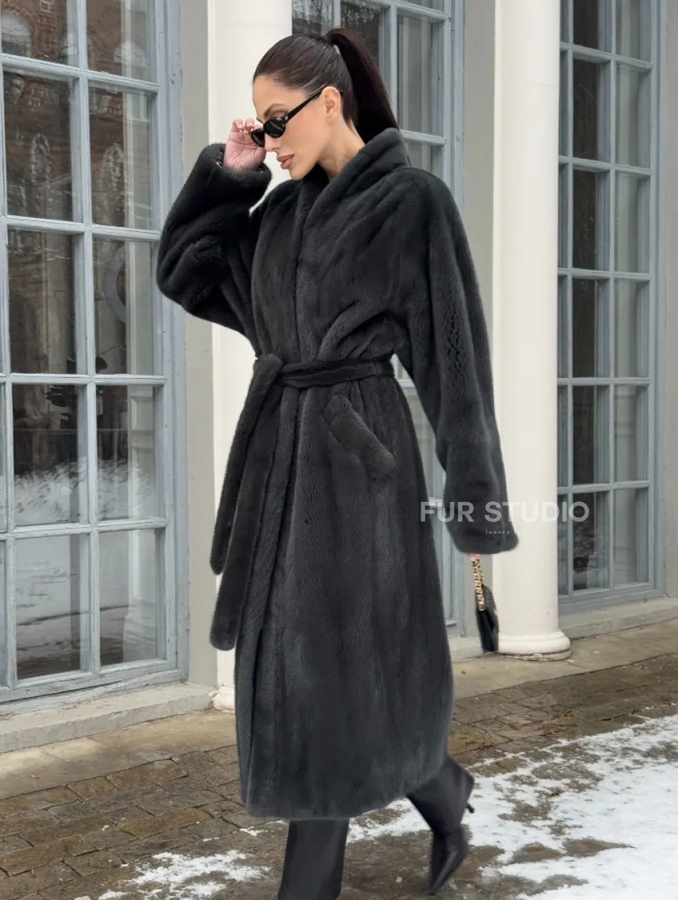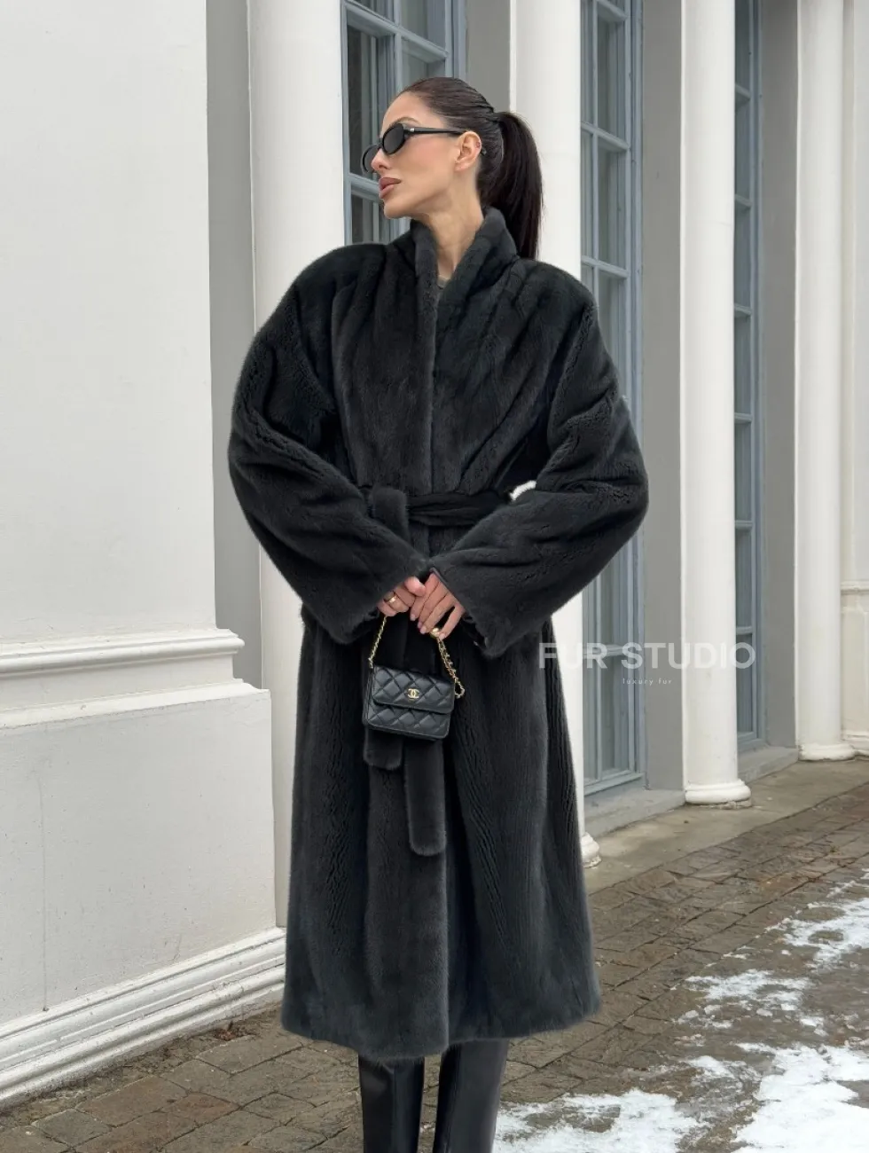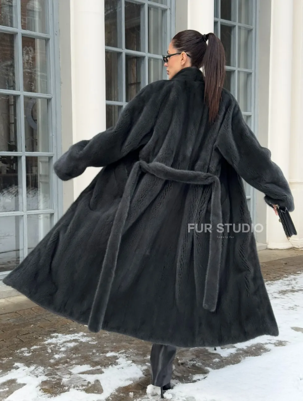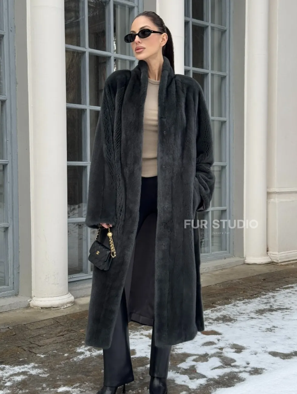 Модная норковая шуба в цвете графит с V-образным воротником доступна для покупки в нашем шоуруме Furs Studio в Чите. У нас так же есть доставка во все города России. Добавьте немного роскоши в свой гардероб с этой шубой, которая будет служить вам многие годы.