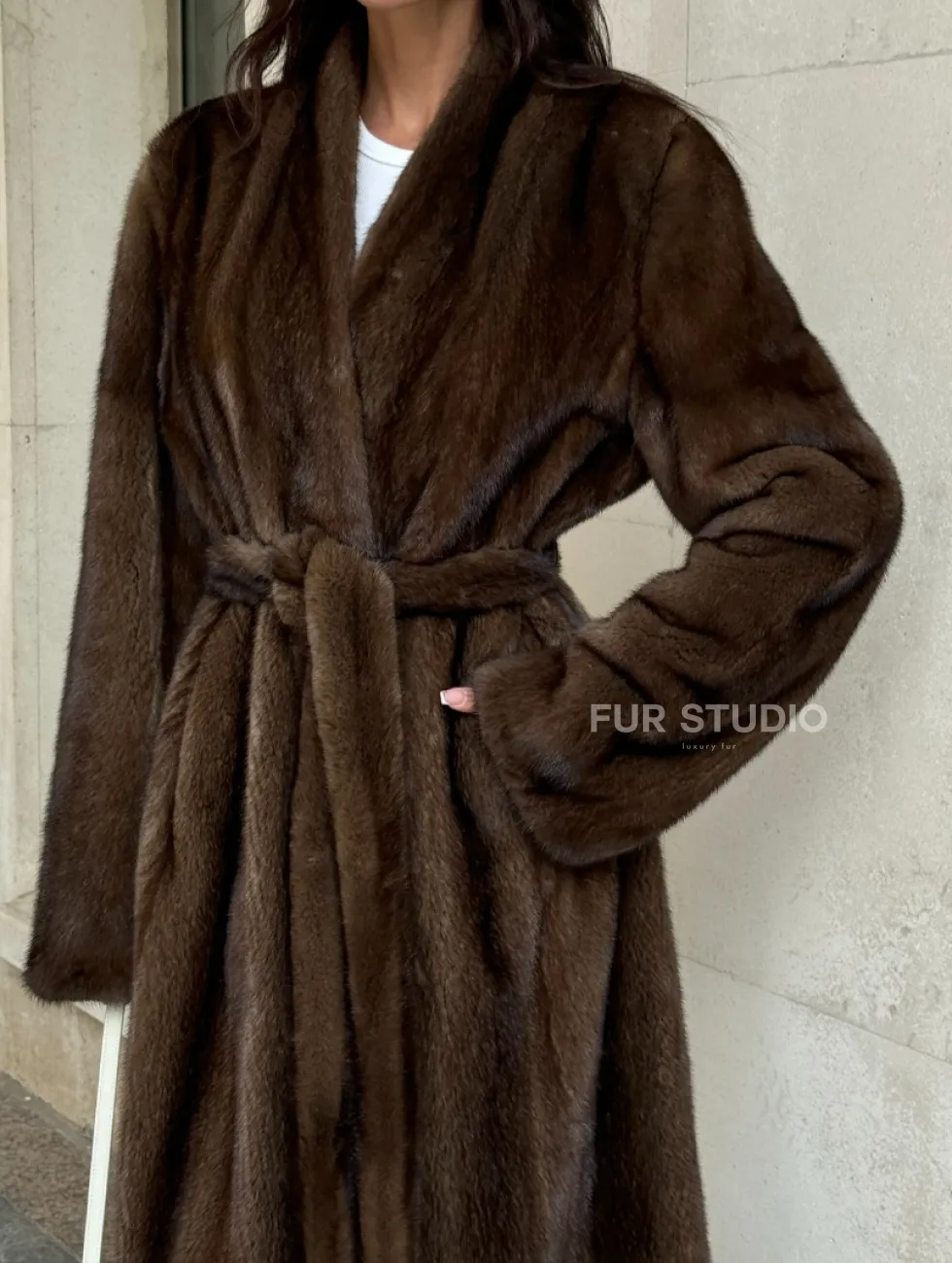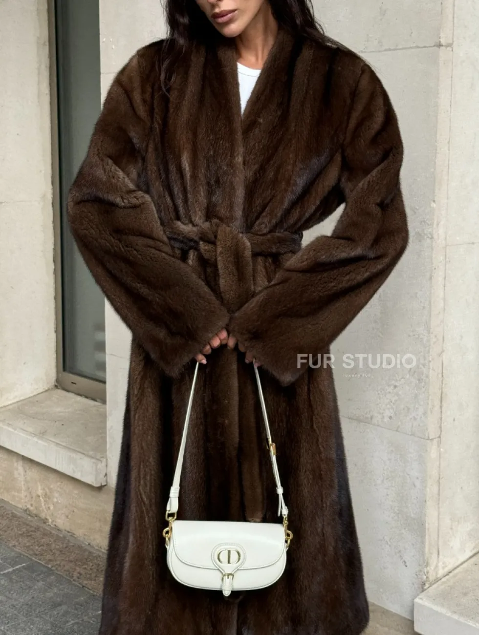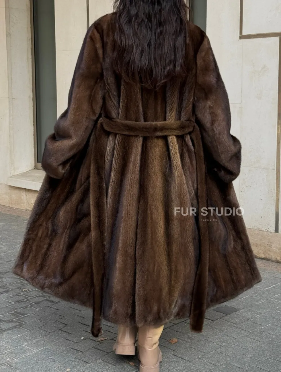 Мех данной шубы аукционная норка , цвет коричневый. Предлагается в размерах от 42 до 52. Длина модели 120-125 см, что выгодно подчеркивает фигуру девушек. Эта модель идеально подойдет для девушек и женщин, предпочитающих роскошные натуральные меха.
