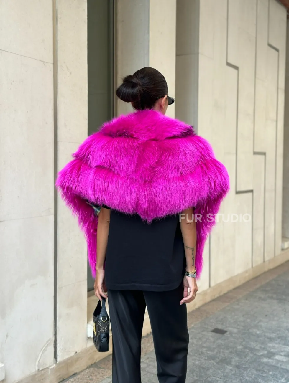 Накидка - палантин из меха чернобурки - фуксия от студии меха Fur Studio в Чите