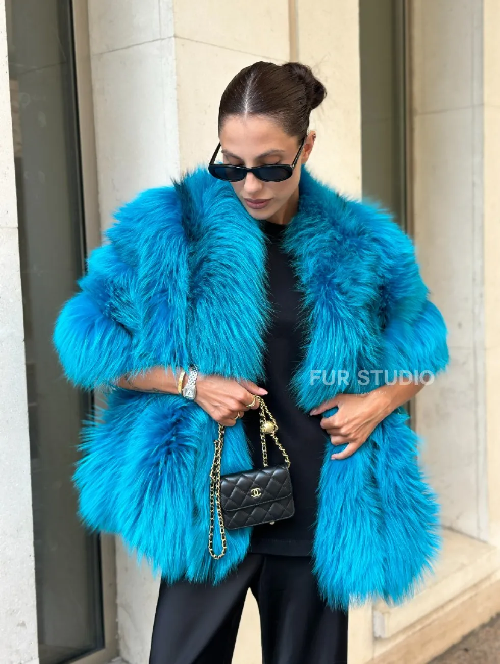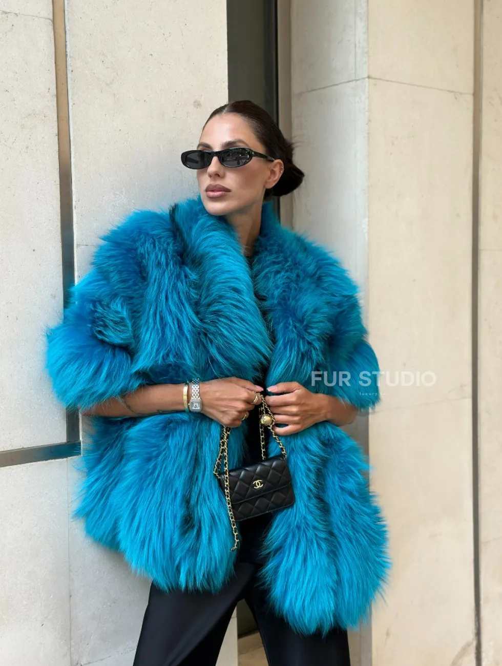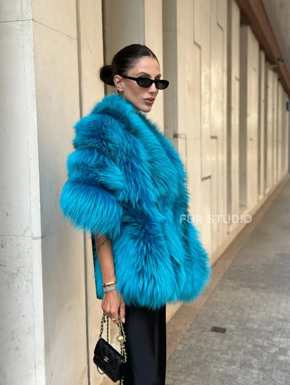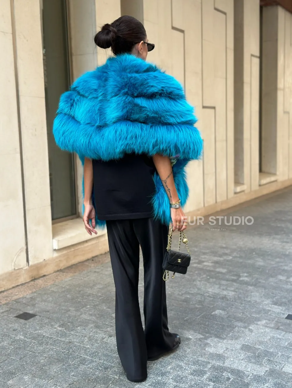 Мех данной накидки, цвет Тиффани предлагается в размерах от 42 до 64.Эта модель идеально подойдет для девушек и женщин, предпочитающих роскошные натуральные меха.