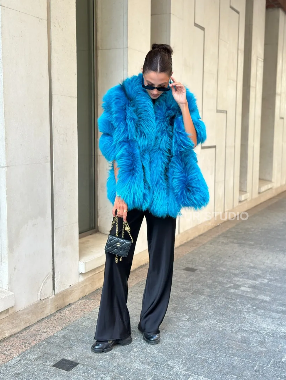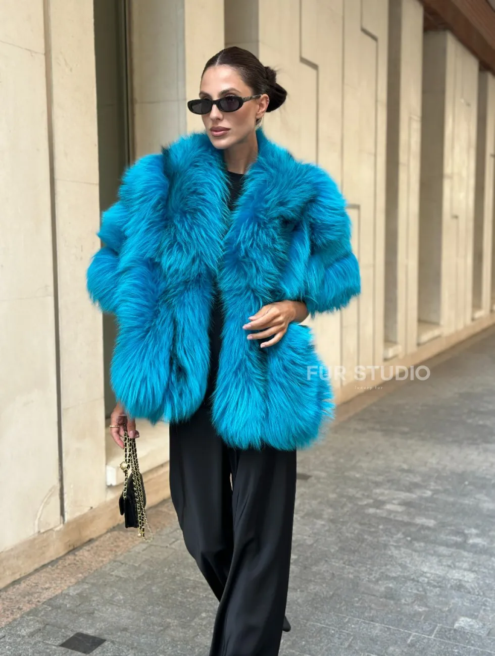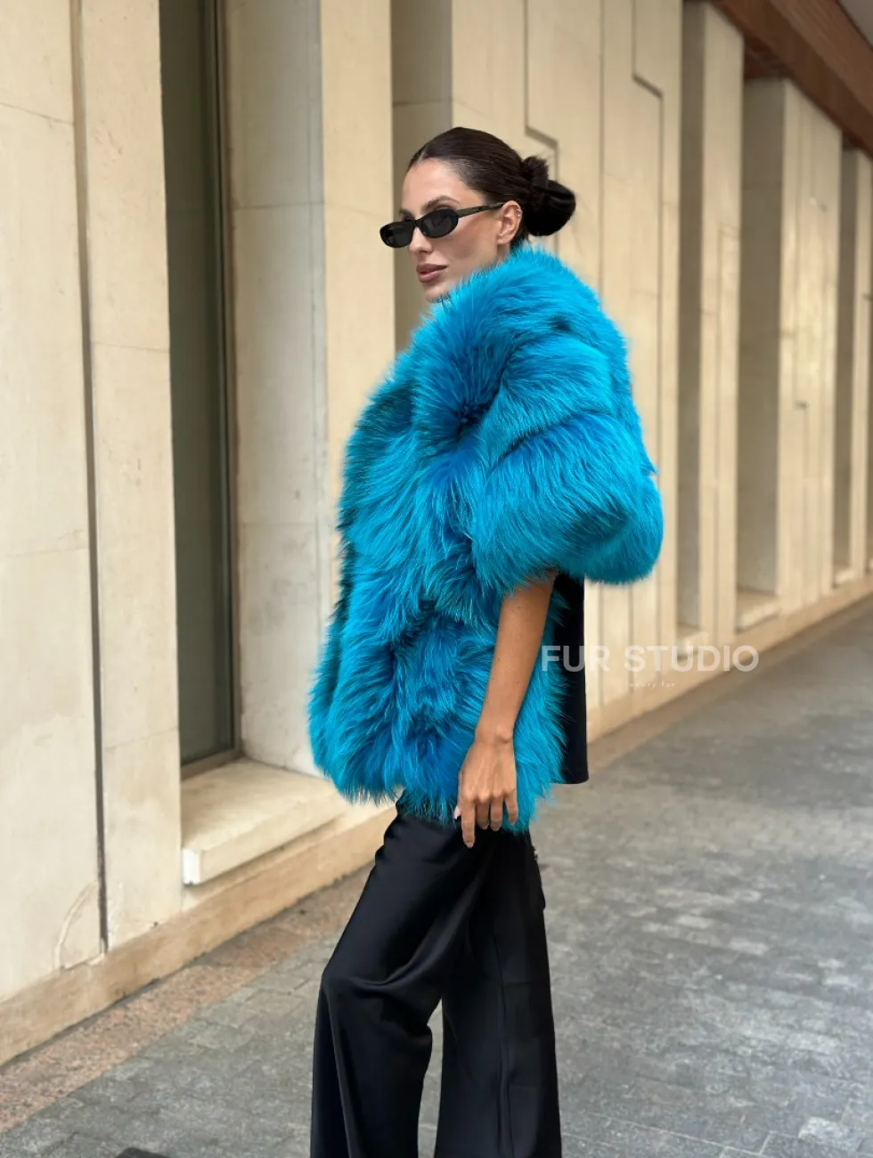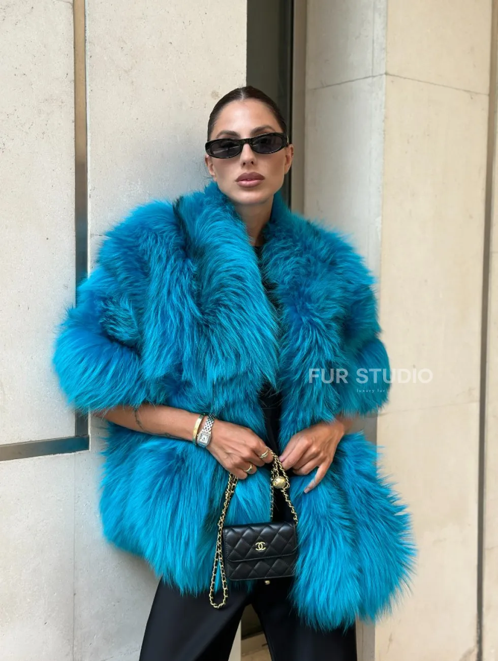 Мех данной накидки, цвет Тиффани предлагается в размерах от 42 до 64.Эта модель идеально подойдет для девушек и женщин, предпочитающих роскошные натуральные меха.