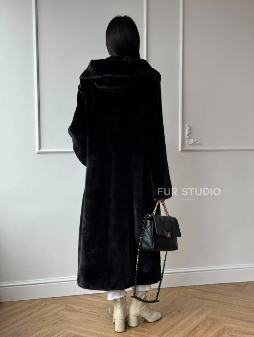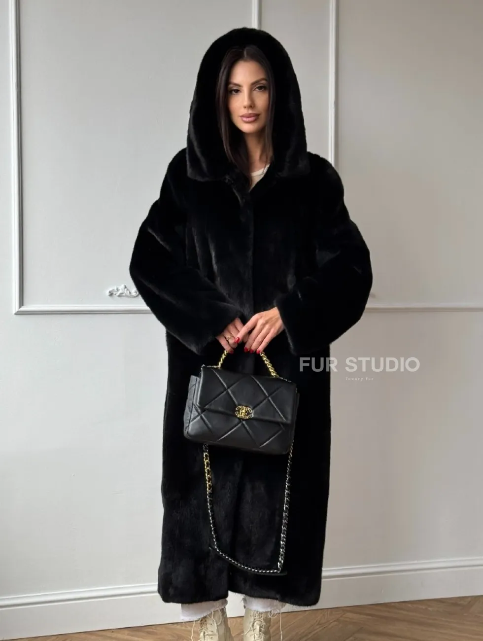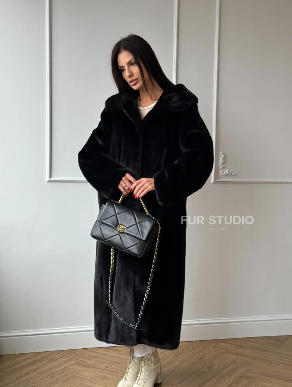 Натуральная черная женская шуба из меха норки Blackglama с капюшоном доступна для покупки в нашем шоуруме Furs Studio в Чите. У нас так же есть доставка во все города России. Добавьте немного роскоши в свой гардероб с этой шубой, которая будет служить вам многие годы.