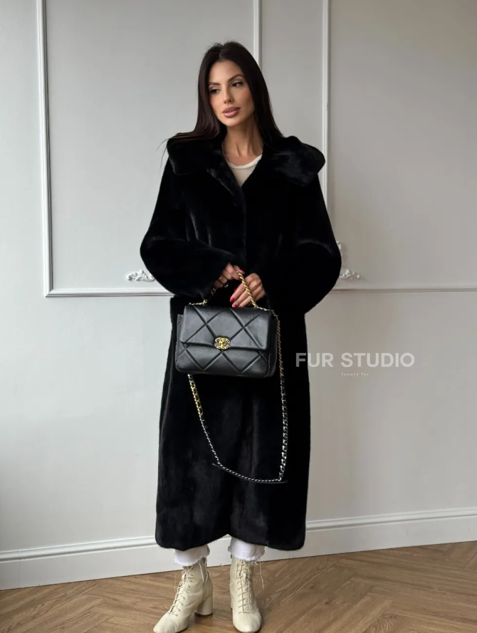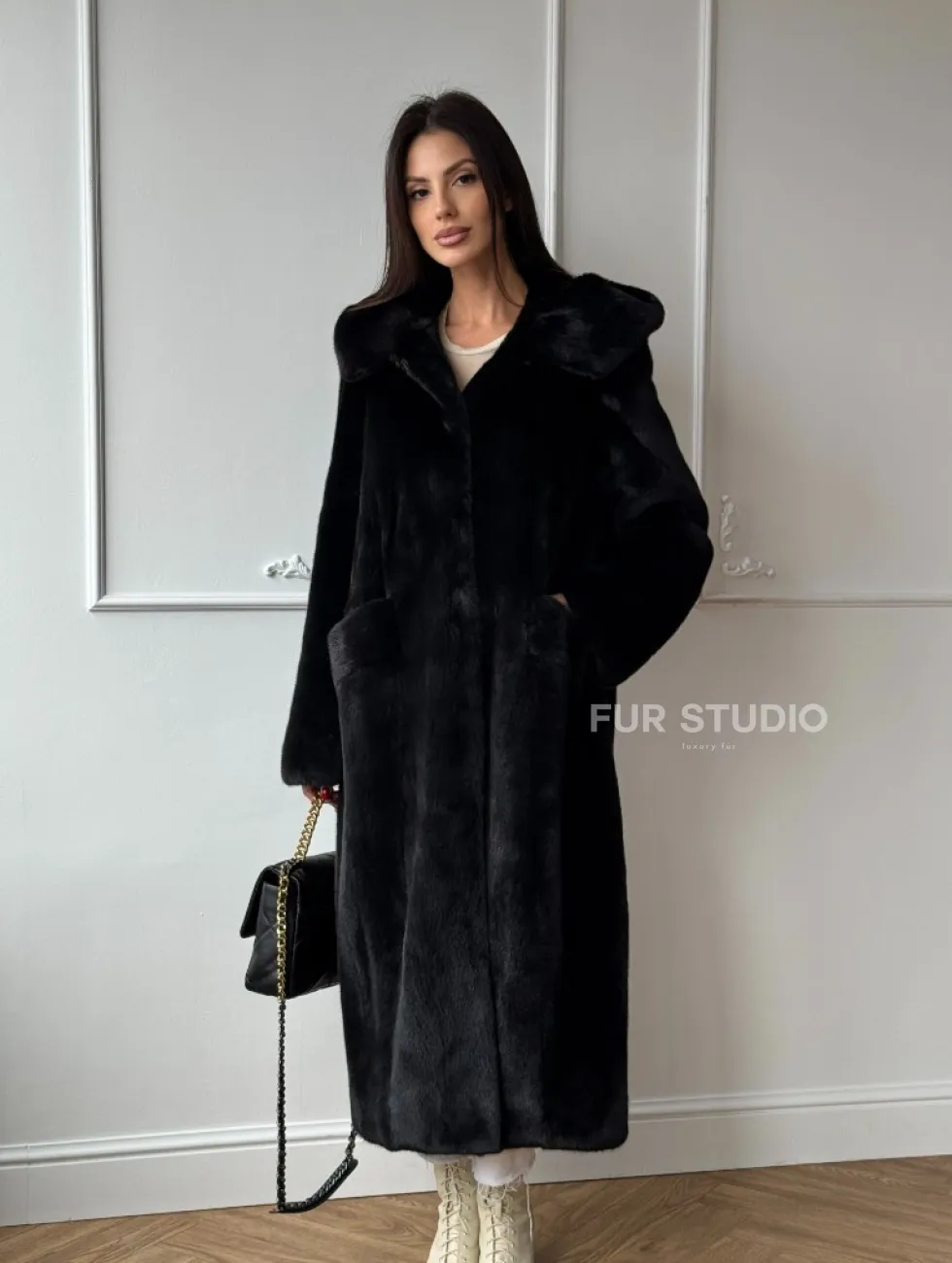 Мех данной шубы норка Blackglama, цвет черный. Предлагается в размерах от 42 до 50. Длина модели 115-120 см, что выгодно подчеркивает фигуру девушек. Эта модель идеально подойдет для девушек и женщин, предпочитающих роскошные натуральные меха.