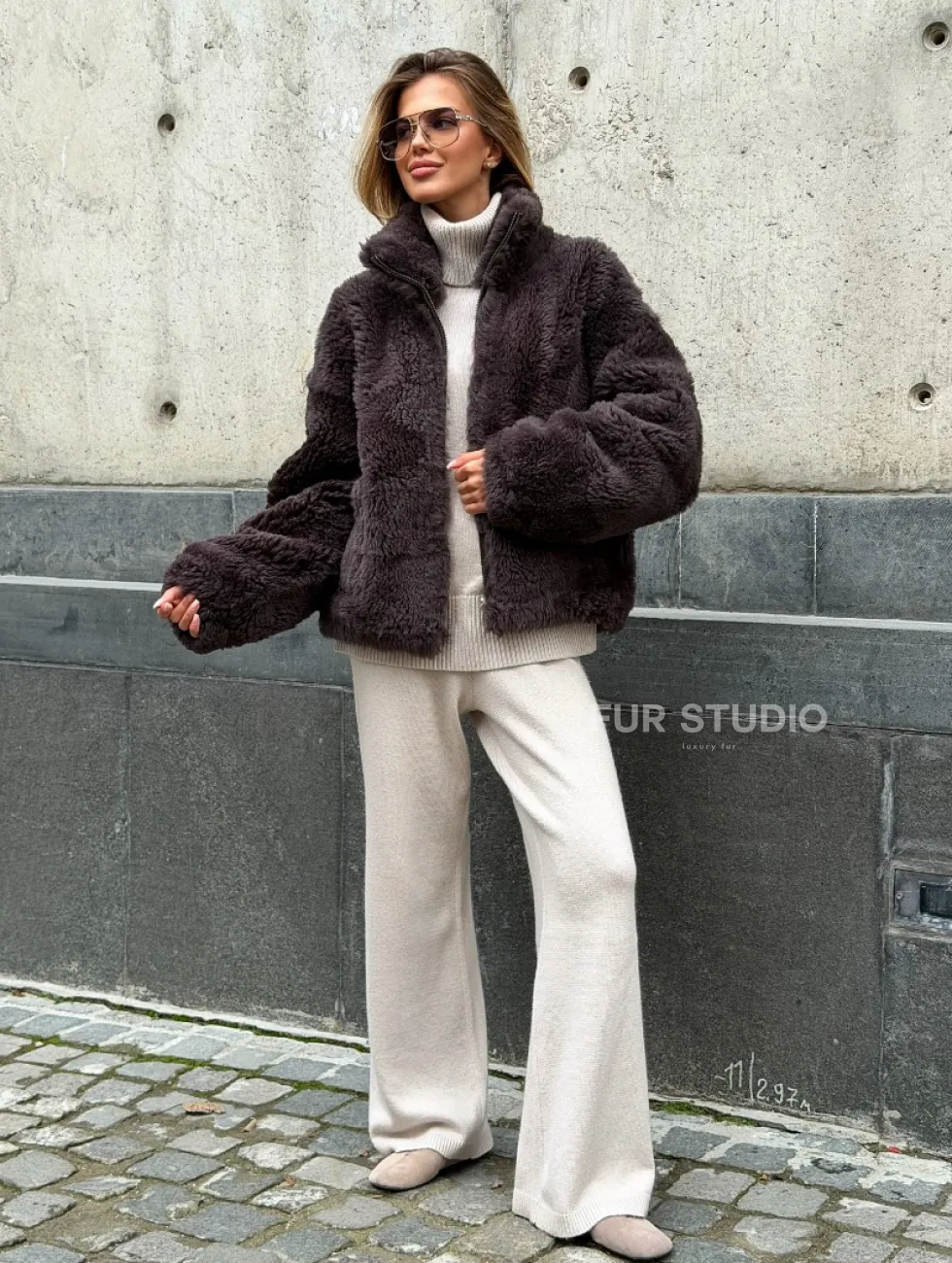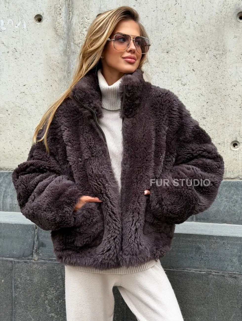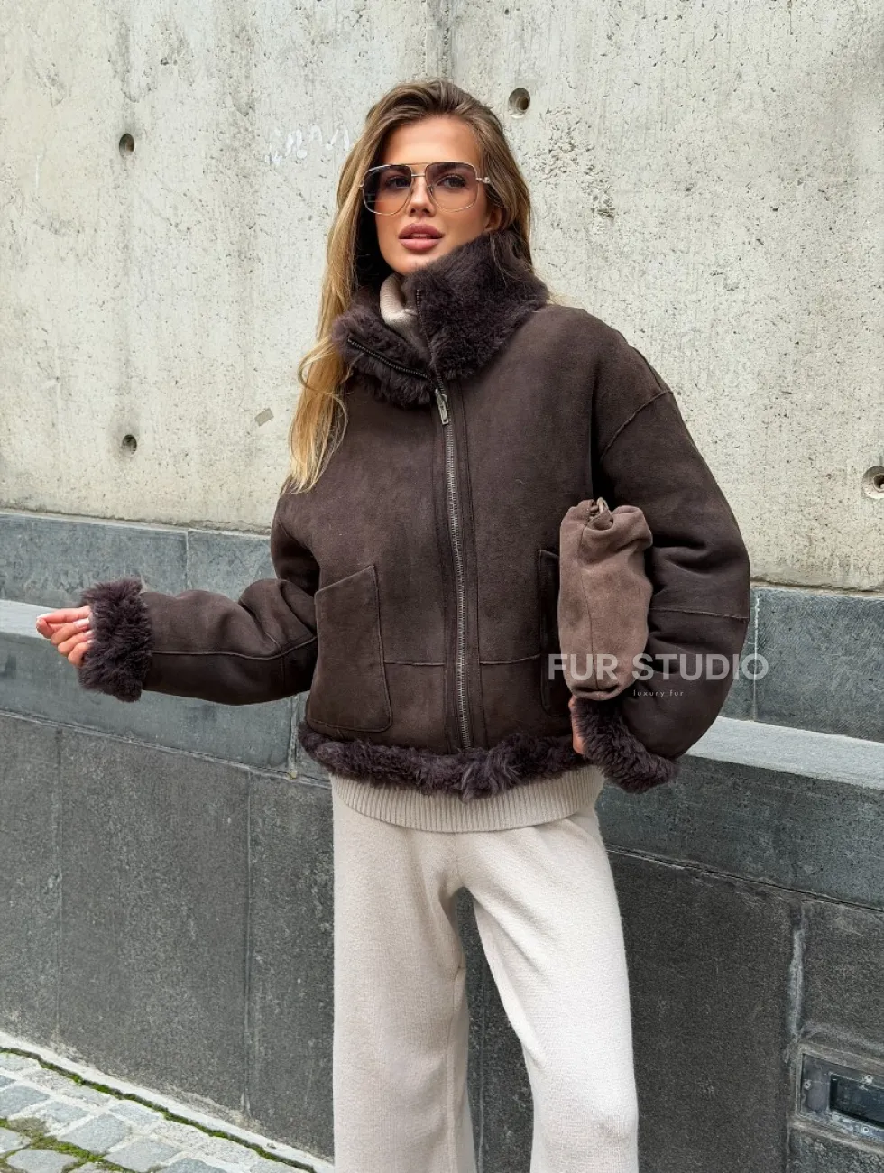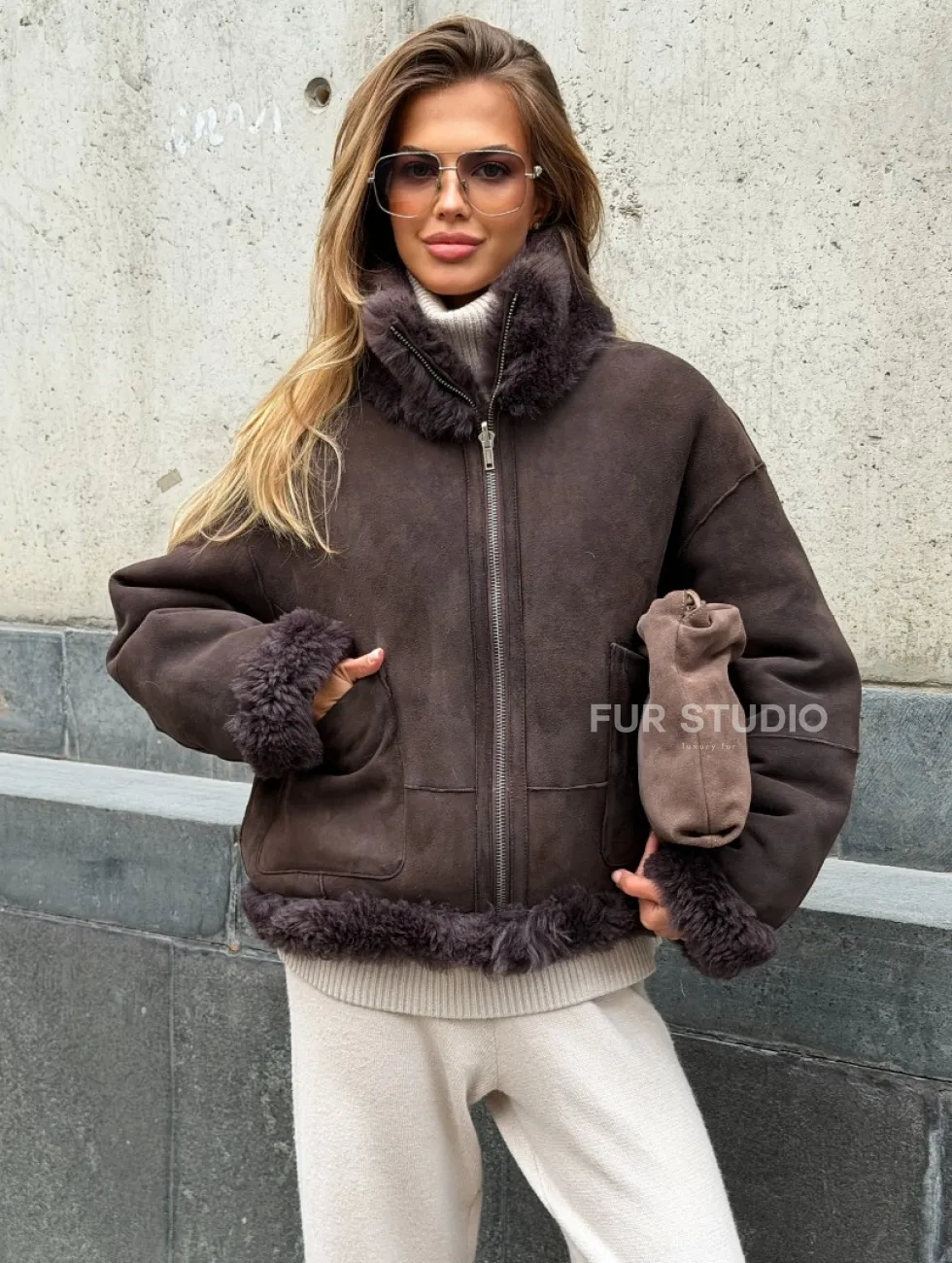 Натуральная двухсторонняя дубленка - бомбер доступна для покупки в нашем шоуруме Furs Studio в Чите, а также предлагается удобная доставка во все города России. Обогатите свой гардероб этой дубленкой, которая прослужит вам многие годы, добавив немного роскоши в ваш повседневный образ.