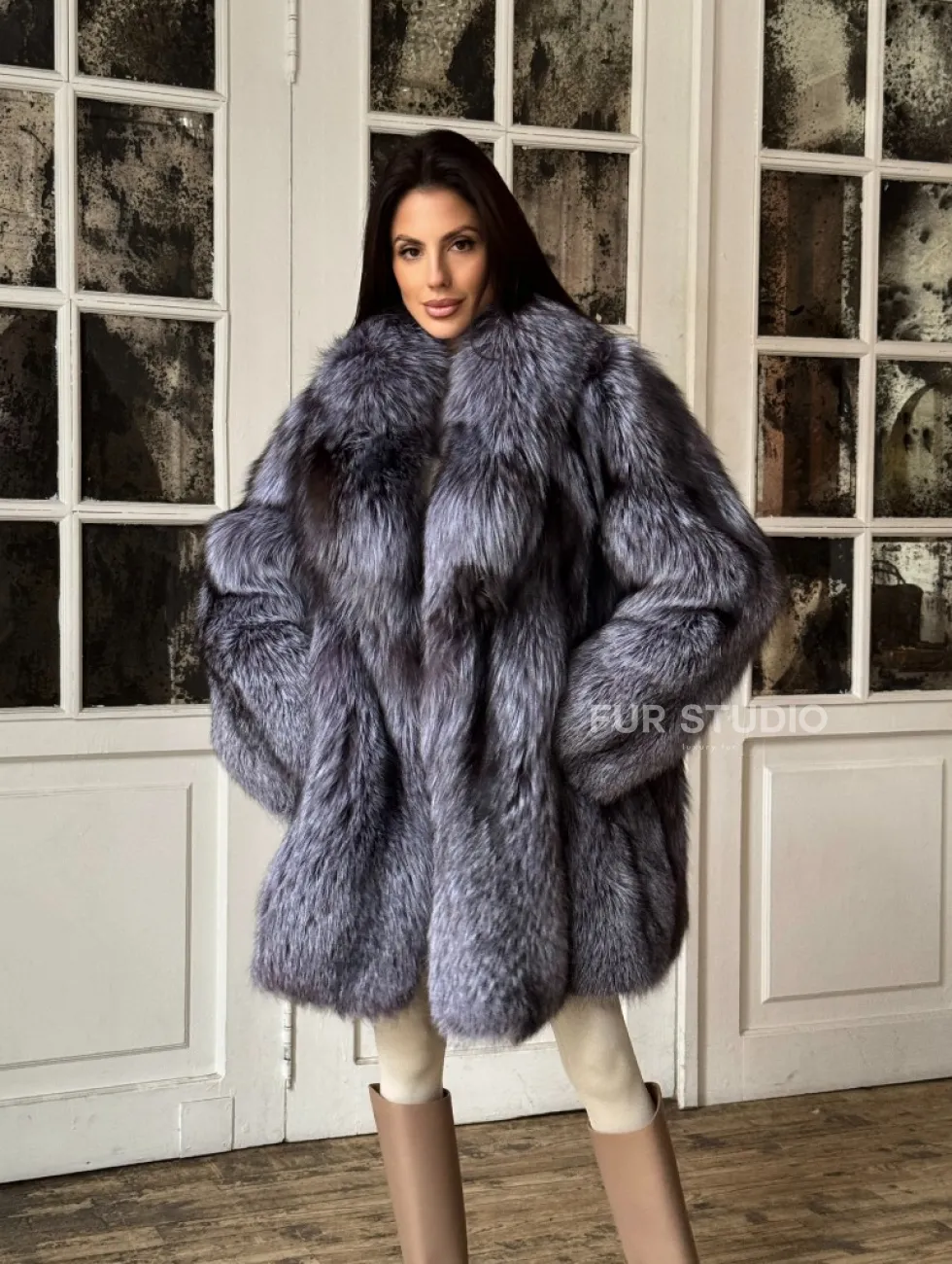 Натуральная шуба из меха чернобурки, воротник шаль доступна для покупки в нашем шоуруме Furs Studio в Чите. У нас так же есть доставка во все города России. Добавьте немного роскоши в свой гардероб с этой шубой, которая будет служить вам многие годы.